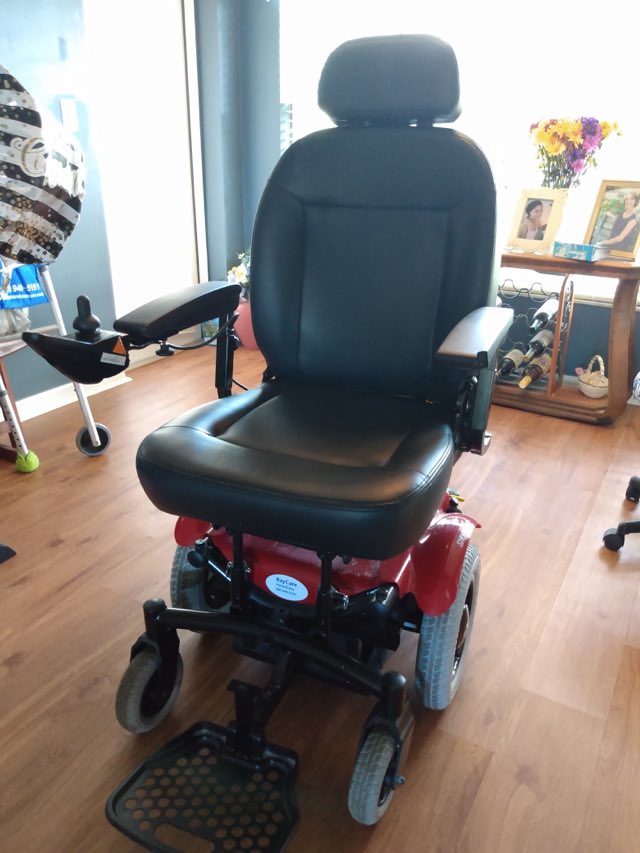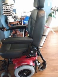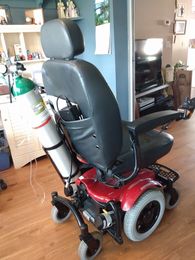 This power chair was used inside for 95% of it's life. It has a O2 tank carrier and front foot support. This was brand new aug. of 2019. There are no rips in seat or any problems with major mechanics. It sports a mid-wheel drive system and has the added stability of having six points of contact with the ground. Reclining Captain Seat.Turning Radius in 18” 14" inch drive wheels with 7" inch casters with a 4 post seat design. 22NF Batteries (50Ah) with 18 mile range per charge. This comes with the original Shoprider brand charger and plug in cord. We would really like to sell this to a family or someone who needs a very nice used power chair. We can negotiate on price but only a little. Please only serious calls. Thank you.