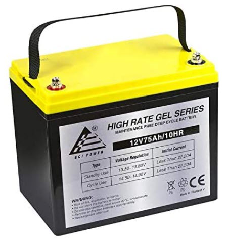 2 batteries included, 12 Volt, Rechargeable GEL batteries.