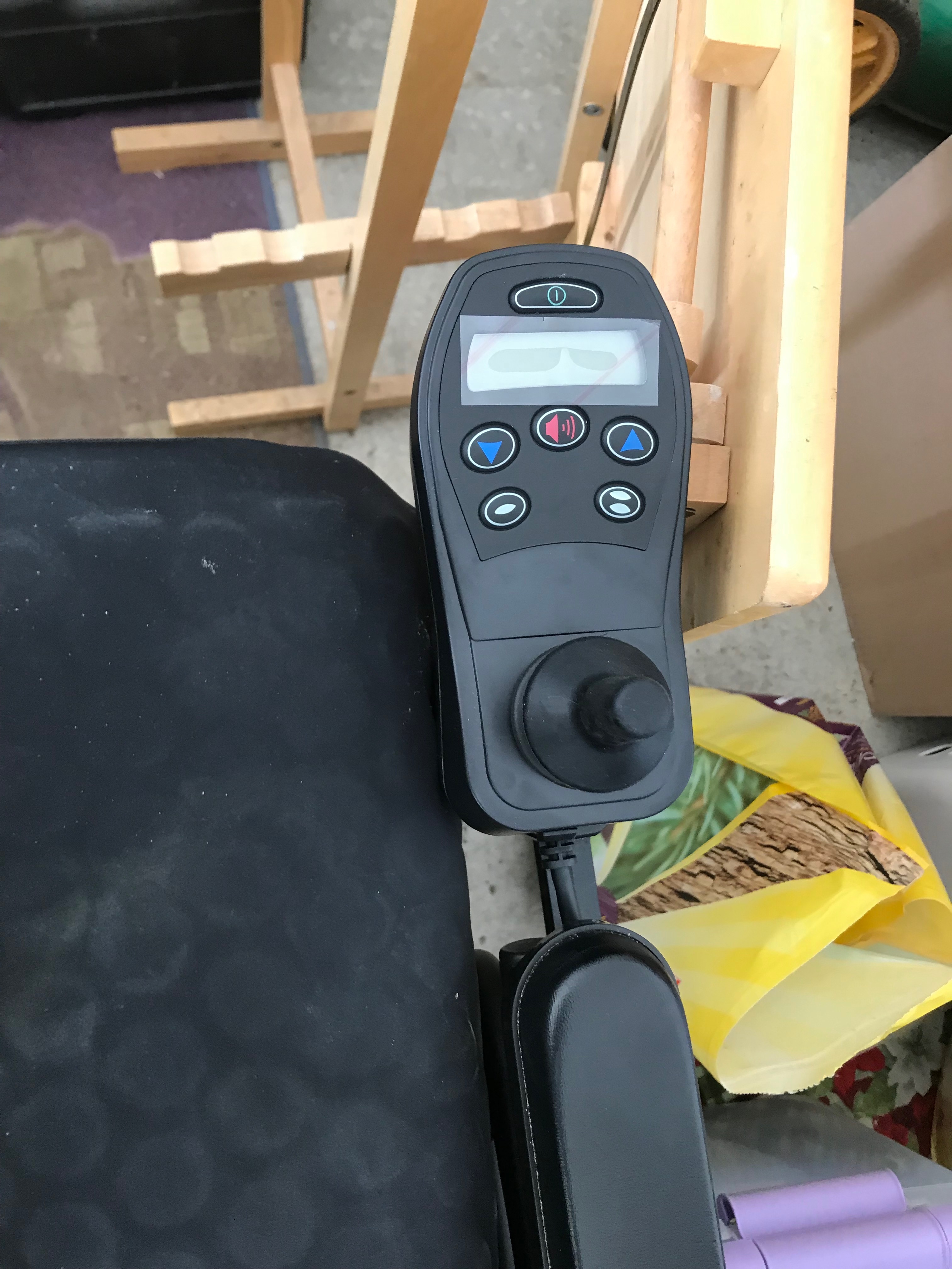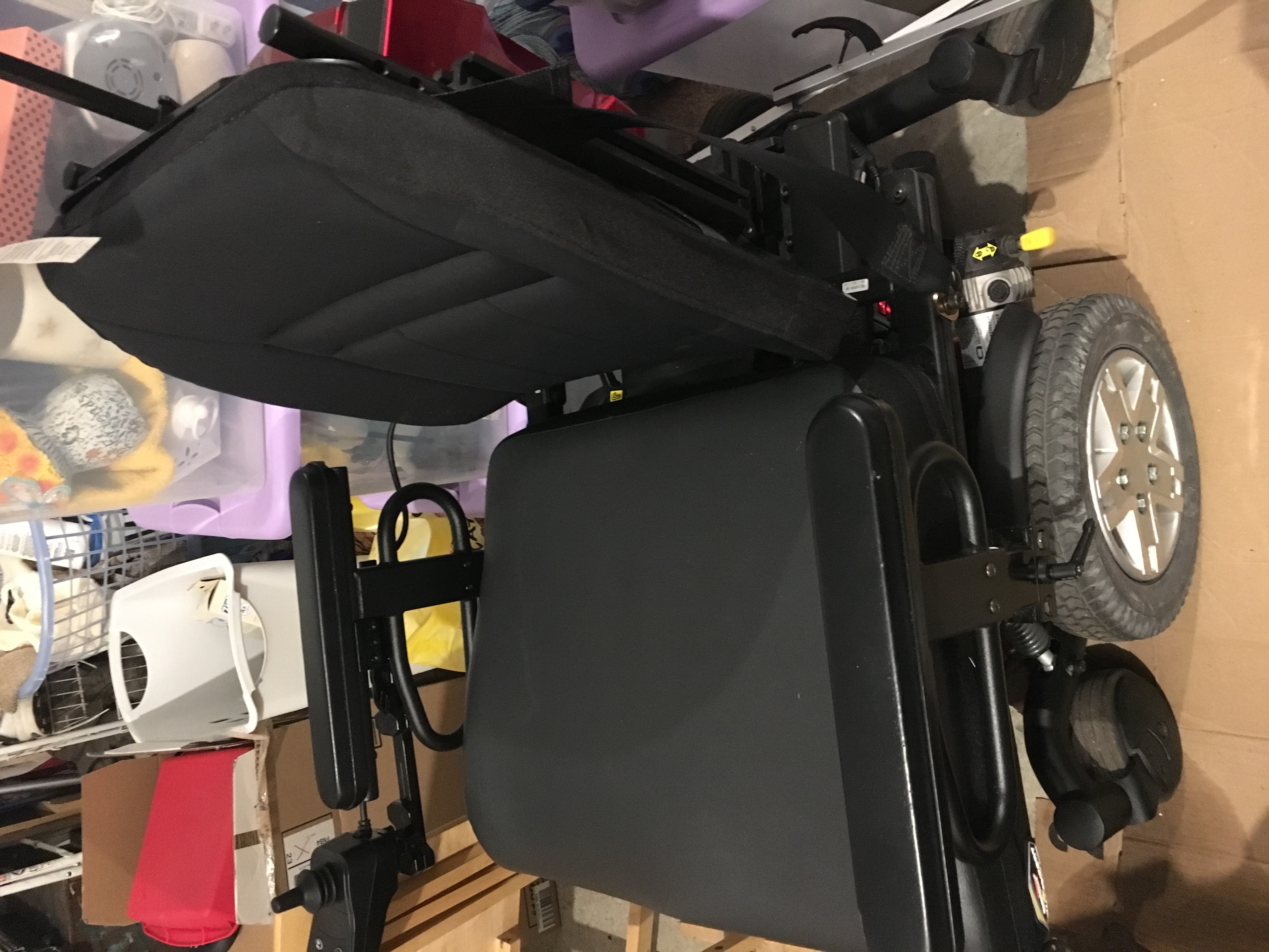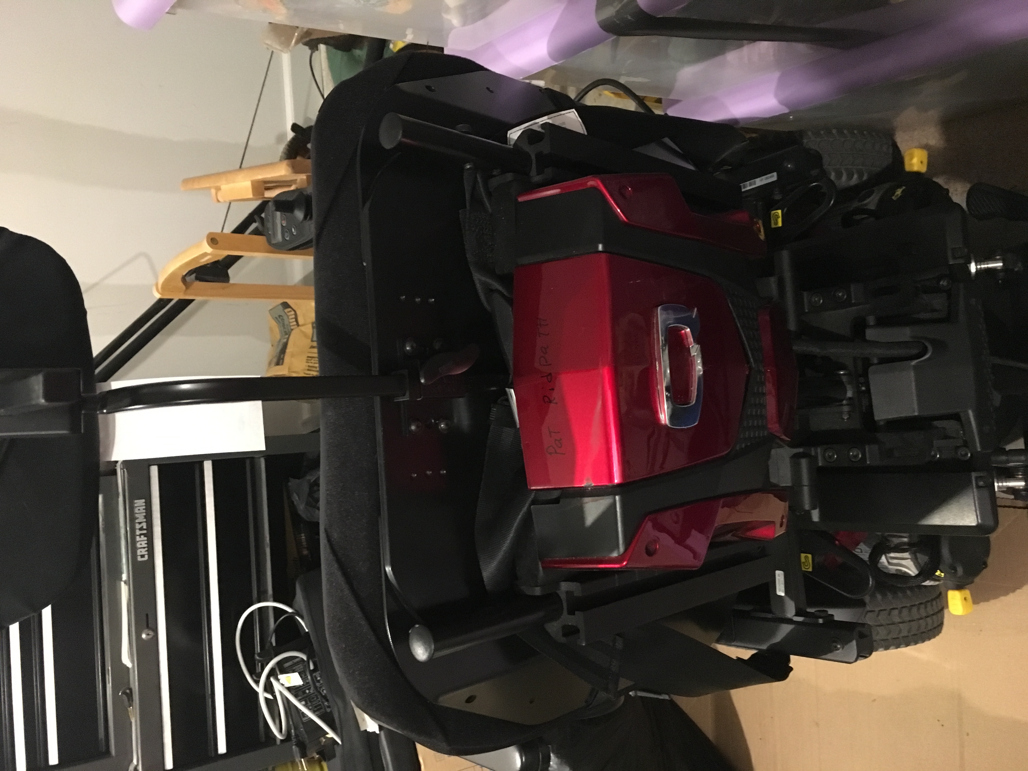 3 Cushions of various thicknesses included. Used mostly indoors, will travel 15 miles on a charge. Great condition, no damage or scratches. All original paperwork and service records included. This was my grandmothers wheelchair. The recent battery and joystick installs were done and she never got a chance to use the chair after they were installed. Purchased in St Joseph missouri new, where it is currently located. All cables and paperwork come with the chair. It is in like new condition. Tires are in great condition also. It is maroon in color with black cushions. I will assist with delivery arrangements.
