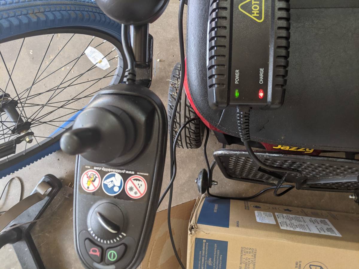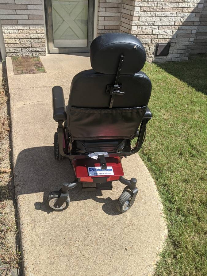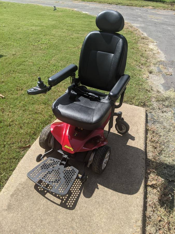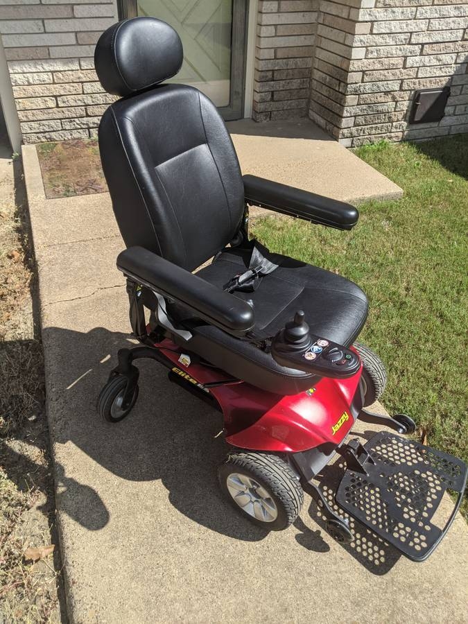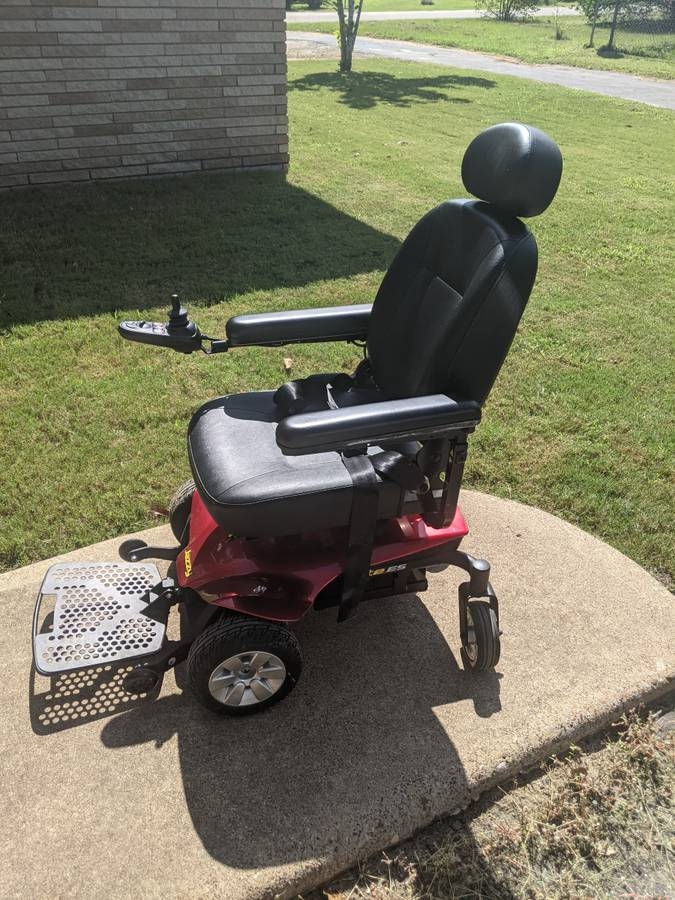 This power wheelchair is a 2018 Jazzy Elite ES. It is in great shape. There is some scratching of the wheels (all cosmetic) but nothing structural and the seat is in great shape also. There are no tears, burns or any other damage to the seat. The plastic components at the base are all intact with no chips, dents or missing pieces. It has a 300lb weight limit and is able to accomodate me sitting in it. I am 6'2" tall and weigh just under the weight limit. We just purchased new batteries and the original charger is included.