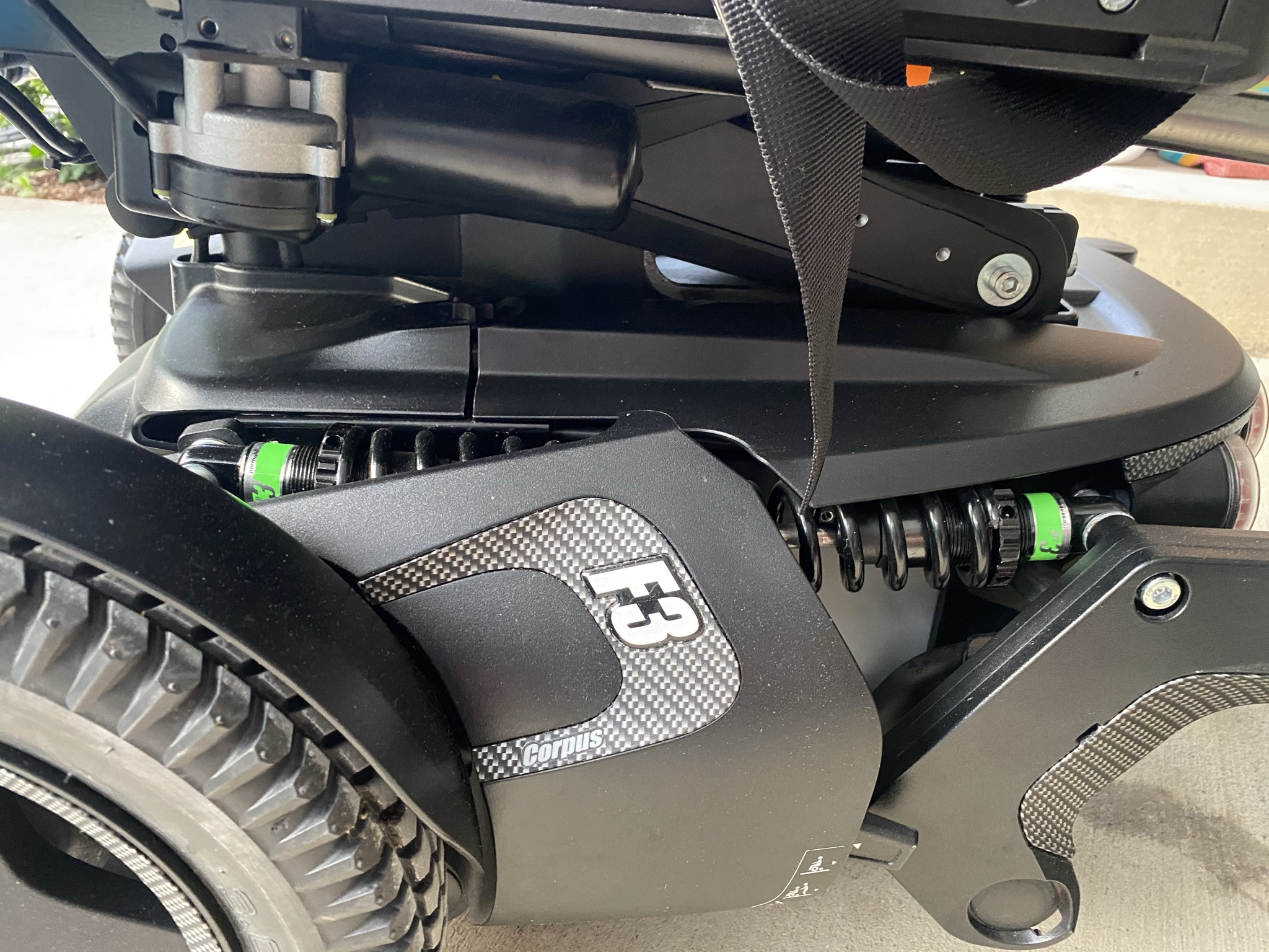 Very clean, tires in excellent shape. Comes with charger and accessory pads. You are welcome to come and test the wheelchair. I will be available to help with any loading. You will not be disappointed with this quality wheel chair that is in excellent condition. It has been lightly used the odometer reads 390miles. Please email, text or call with any questions. Thank you.