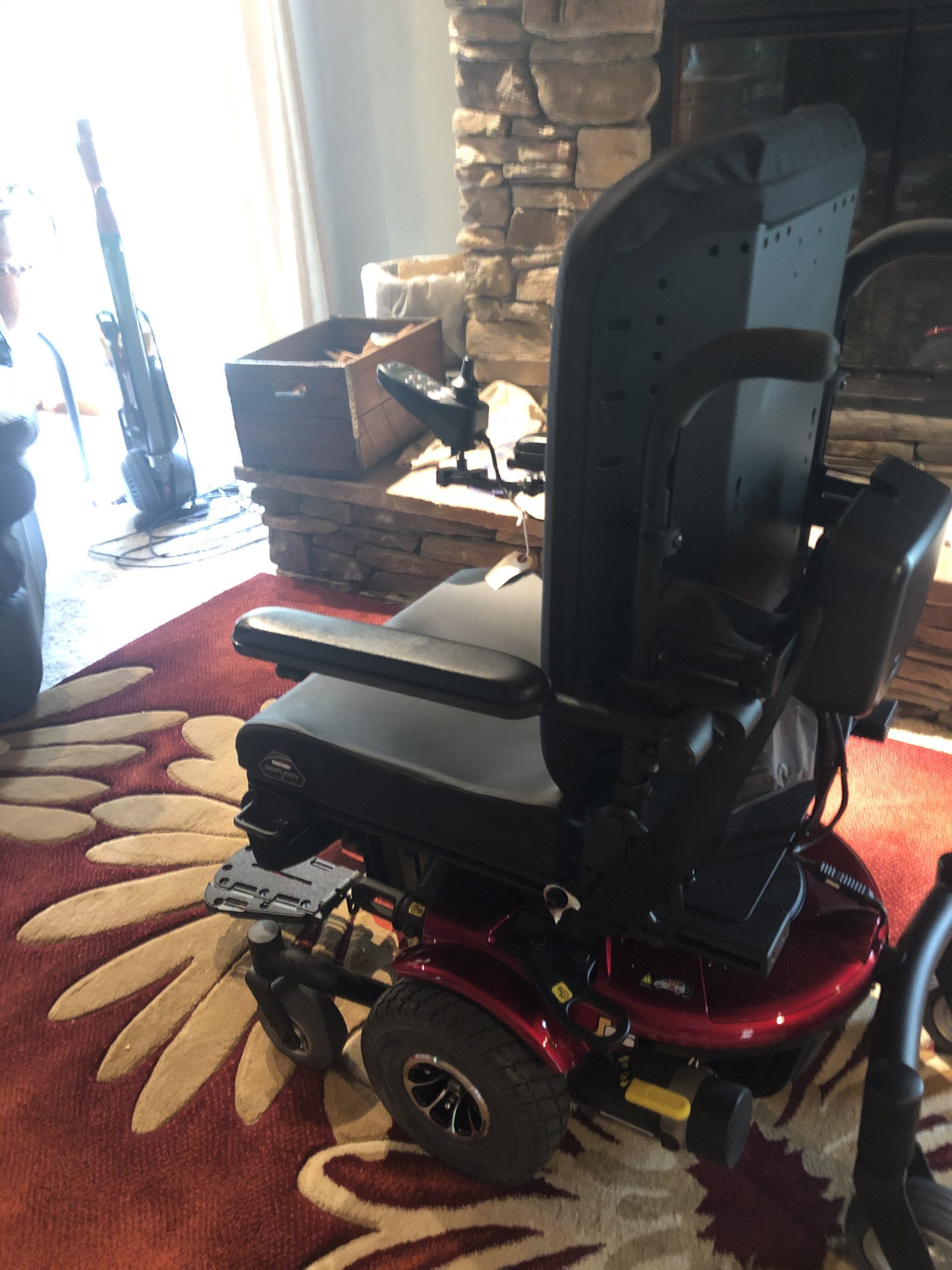 Who’s that features a like new Quantum J6 powered scooter in like new condition. 2019 model originally delivered in January 2020. It was used very little inside only for approximately three months. Due to condition change the chair is no longer needed and it’s listed at reasonable price to assist another to achieveIndependent mobility. The scooter includes all original accessories charger and owners manual. Through through the neighborhood on the stylish red metallic machine. So easy to operate. Currently controls are set up on the right side but it Can easily be modified by moving cable and joystick shown in fixtures to attachment located on left armrest. The scooter is prepared for indoor and outdoor use. It fits easily through a 30 inch door frame inside and drives outside on sidewalks ramps and curb cuts easily.