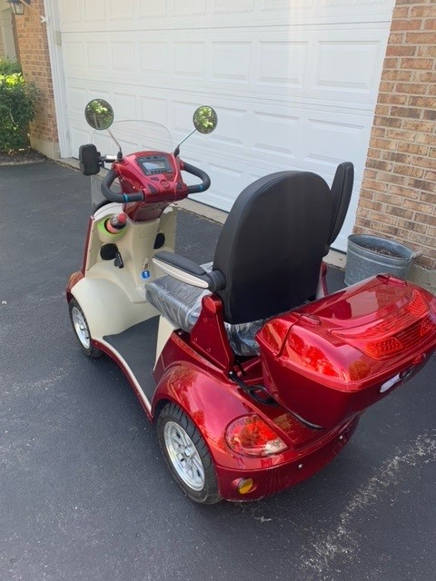 EW-52 4 Wheel Mobility Scooter, less than 10 months old (only driven 33 miles / driven approx. 20 hours, garage kept). 500 lb weight capacity, 15 to 20 mph speed with a 45 mile range. Moving out of state, so this scooter is ready for immediate possession. This is the most powerful four (4) wheel scooter in the USA, and is accessible to most stores, very stable so good for driving on side streets, sidewalks, walking / bike paths, etc. Features include: windshield, digital dash, 3 speaker stereo system, cruise control, locking cargo box and under-seat storage, alarm system, cup holder, rear vie mirrors, phone holder, and 2 remote key fobs - like new condition!!! New List price is $3,949 - visit this site for detailed information: https://www.ewheelsdealers.com/product-page/ew-52. Contact me for additional details, questions, video, etc. Price does not include shipping, ideally you will arrange pick-up and transportation of the scooter. Prefer cash, but will take a Cashiers Check for the exact amount of agreed upon purchase price.