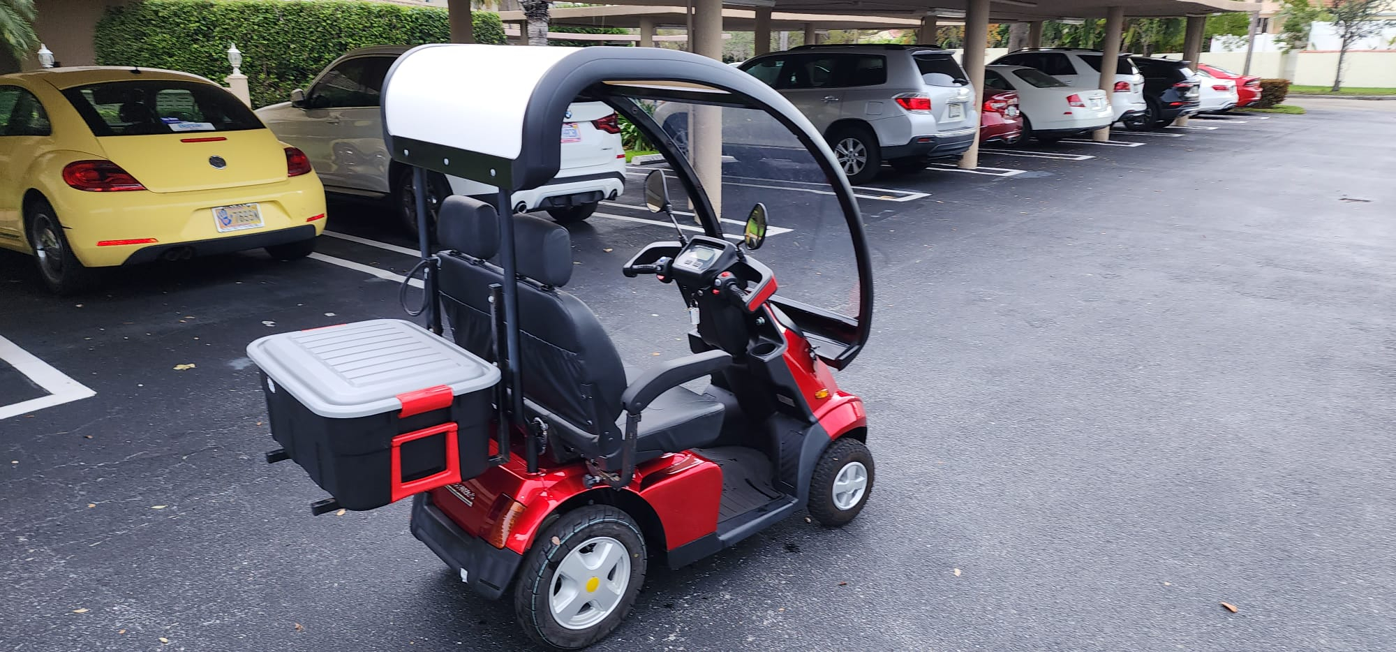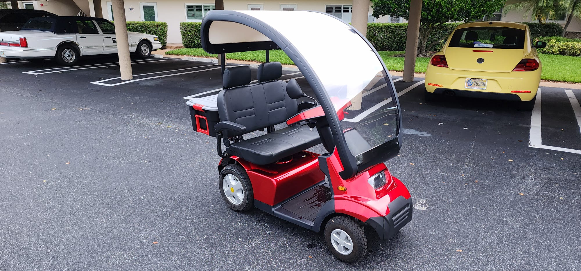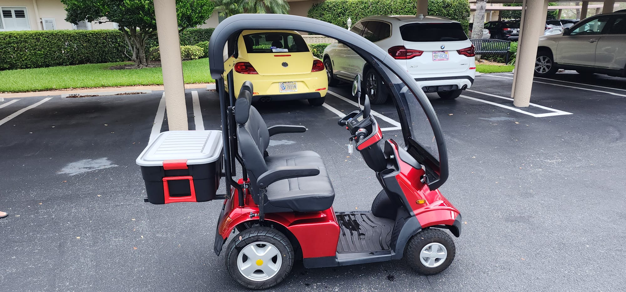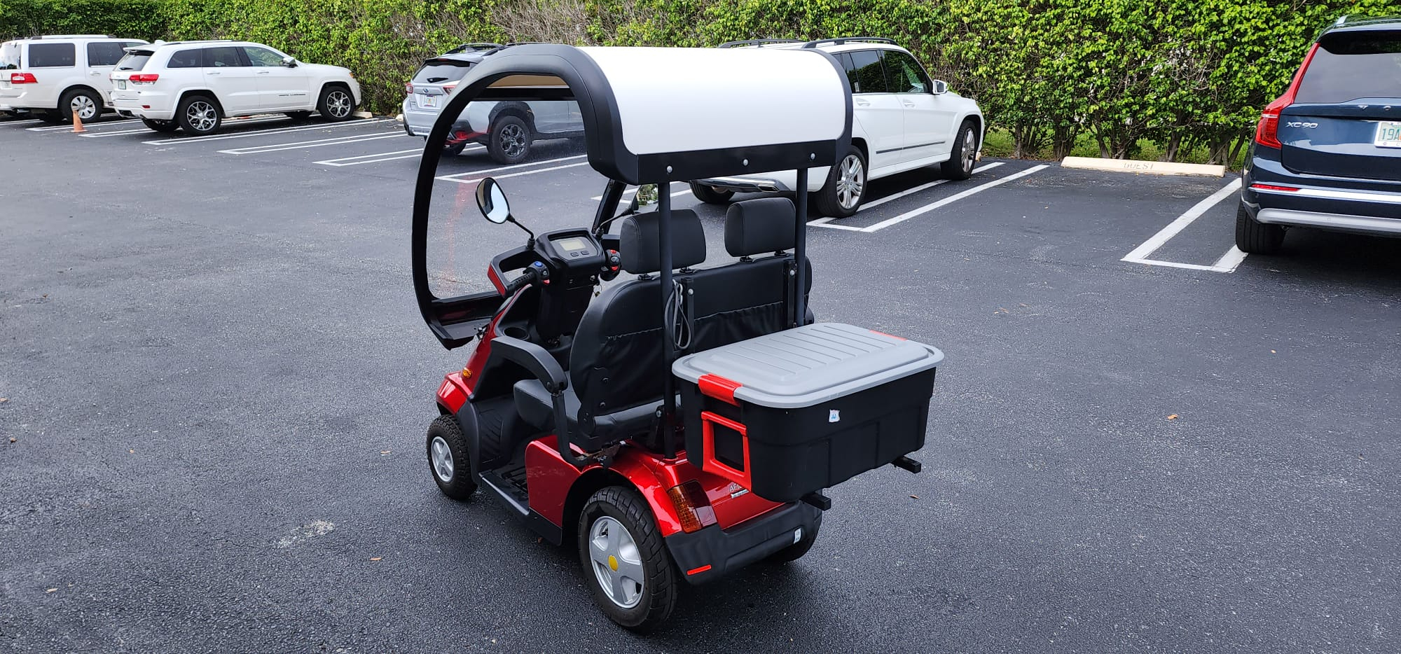 Barely used scooter - elderly father can no longer use the scooter. May 2022. 54 miles. Very durable outdoor scooter with two seats. 30 mile range on one charge! Spacious scooter with four wheel comfort ride. Afikim brand has a proven record of high quality / long lasting reliability. Hard canopy and storage box upgrades are included. Must pick up in Delray Beach, FL