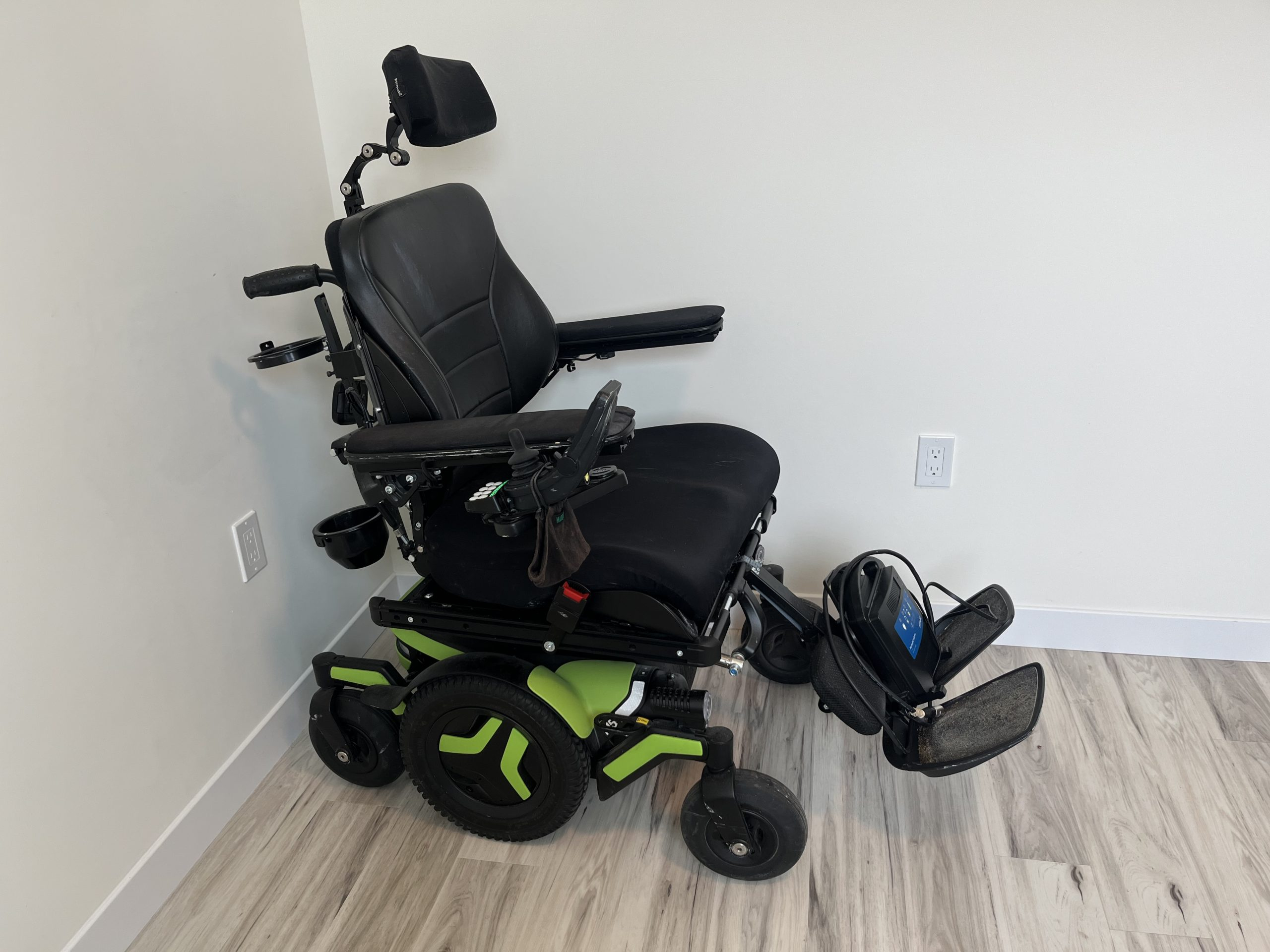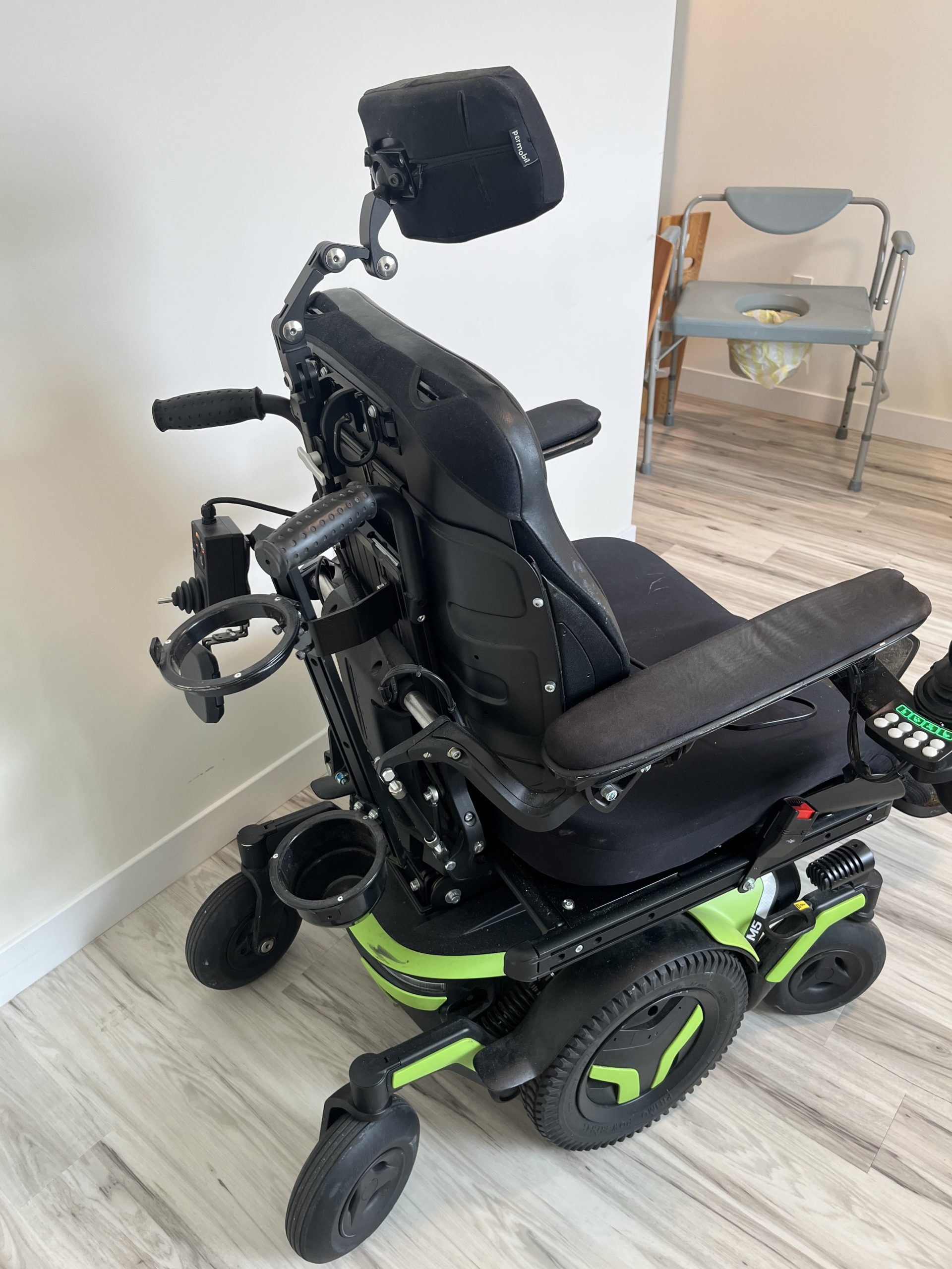 Hi! My dad used his Permobil M5 power wheelchair for less than a year. It raises up high to standing height and lays down flat for sleeping. And drives fast! Could use a good cleaning and maybe a tune-up but it’s in great shape with a ton of life left.