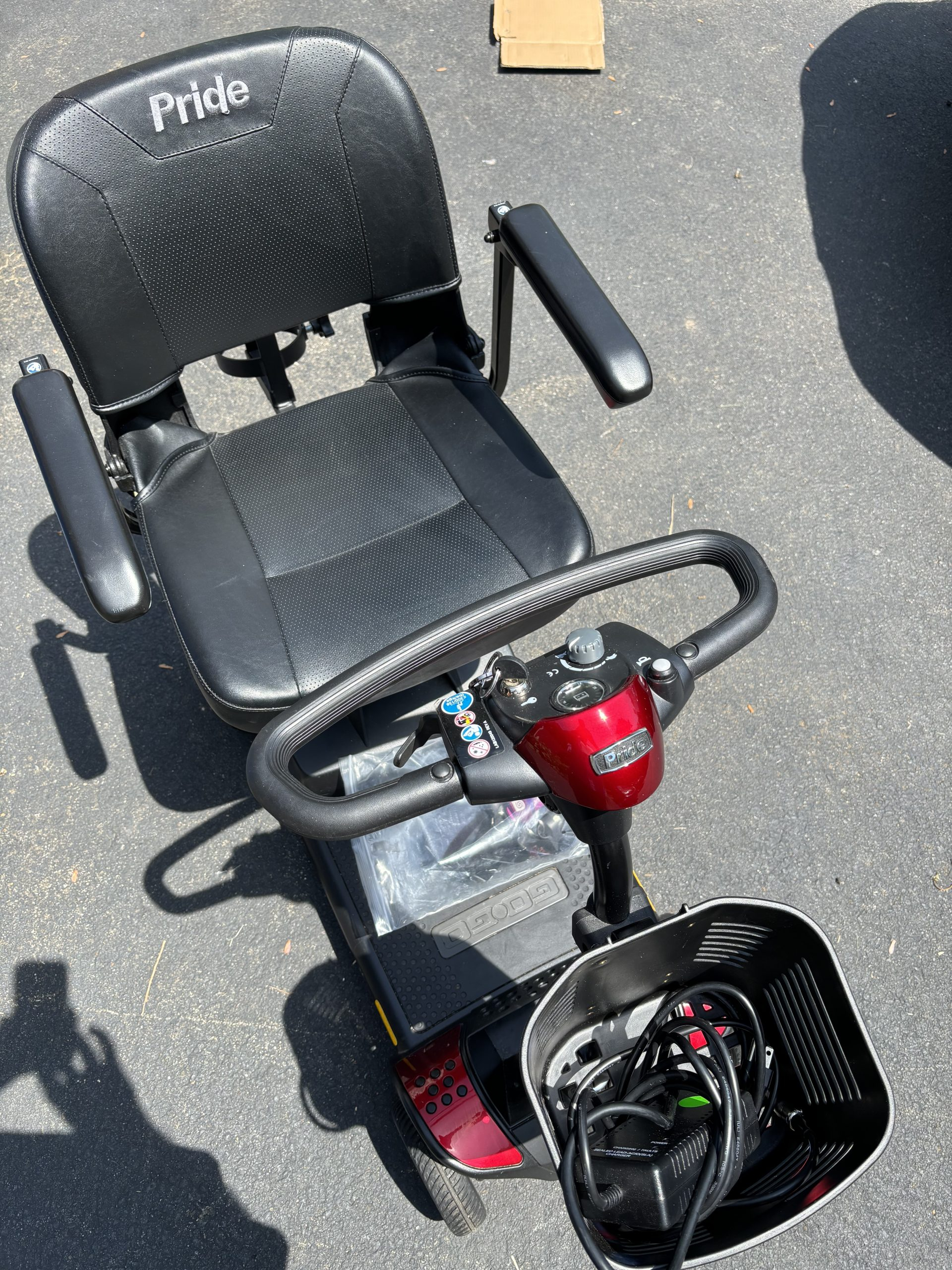 This scooter is in perfect running condition and has been fully maintained. The scooter comes with 2 keys and power charger and strong charged up batteries. There red or blue interchangeable trim. The scooter is charged up and ready for you to GO* GO* GO! Scooter retails for at least $1,300 + tax new.