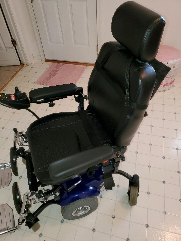 This is a activecare Catalina power wheelchair. It is in new condition. Everything on this chair works perfectly. We just purchased Brand new batteries and installed them. We Will provide proof of new battery purchases. It has a 300 lb weight capacity. This chair was purchased several years back but hardly used. It has been stored inside. It has never been exposed to heat, cold or rain. It is from a pet free and smoke free home. It is very clean. Maximum speed 4 miles per hour. Estimated range 20 miles. Can arrange a Local pickup or may be able to work out a local delivery for a small fee. It Comes with original user manual. Remote controls all work. Foot, arm and head rest. There is no damage or tears. Easy to use remote control. Can meet and allow it to be tried out if want to.