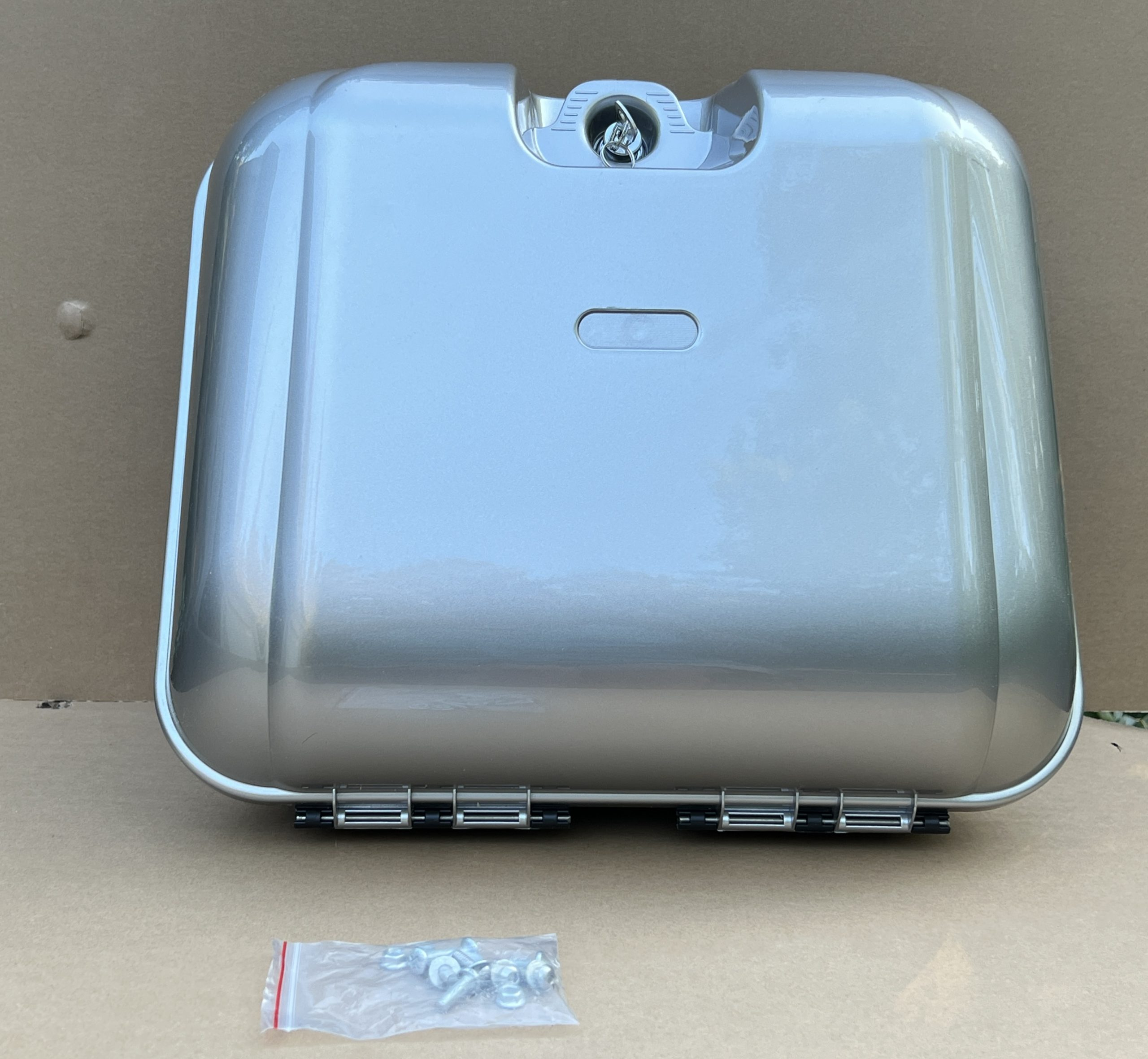 - Includes New Silver Rear Lockbox (unmounted with mounting frame and all hardware and preconfigured seat installation)