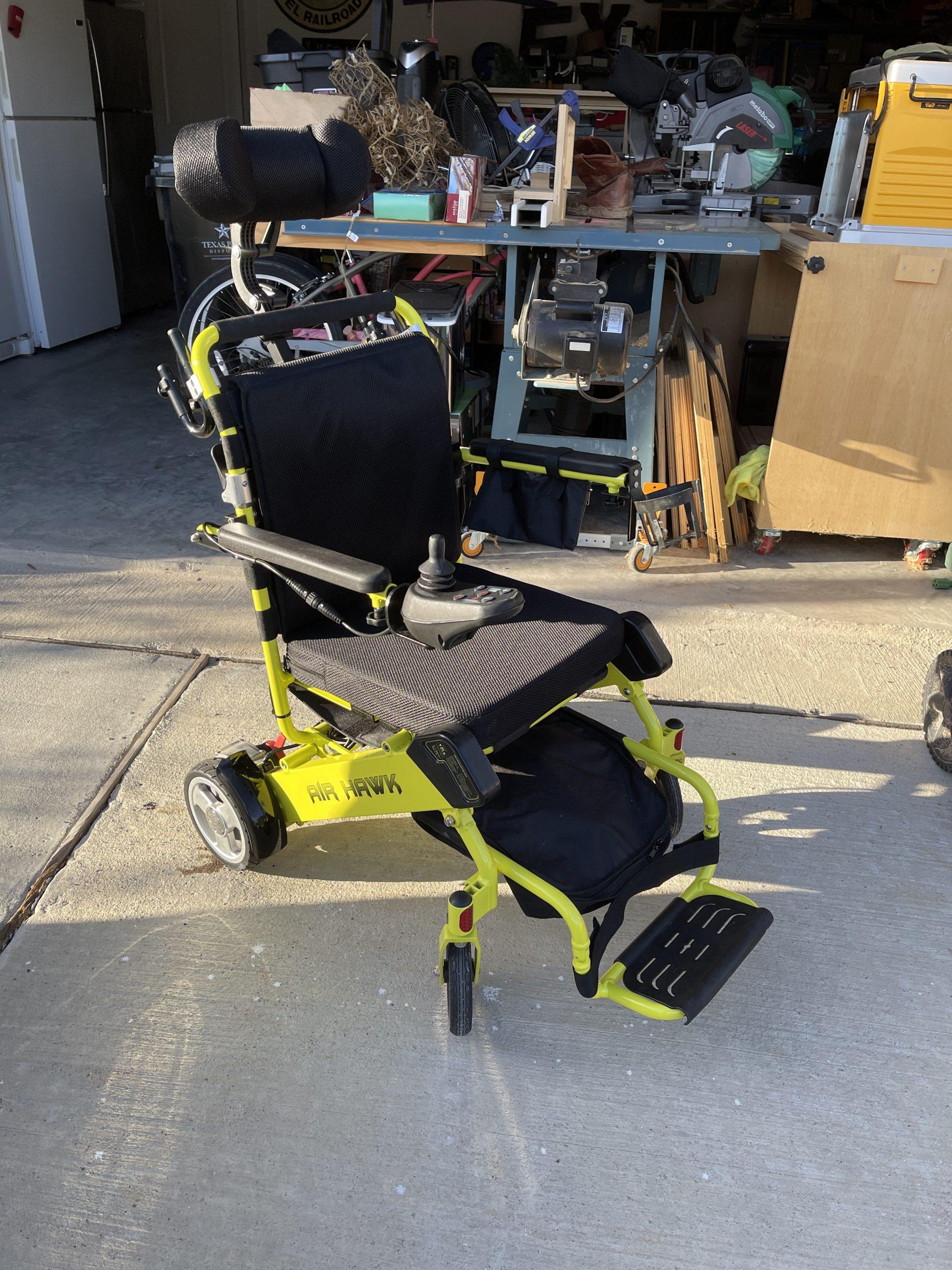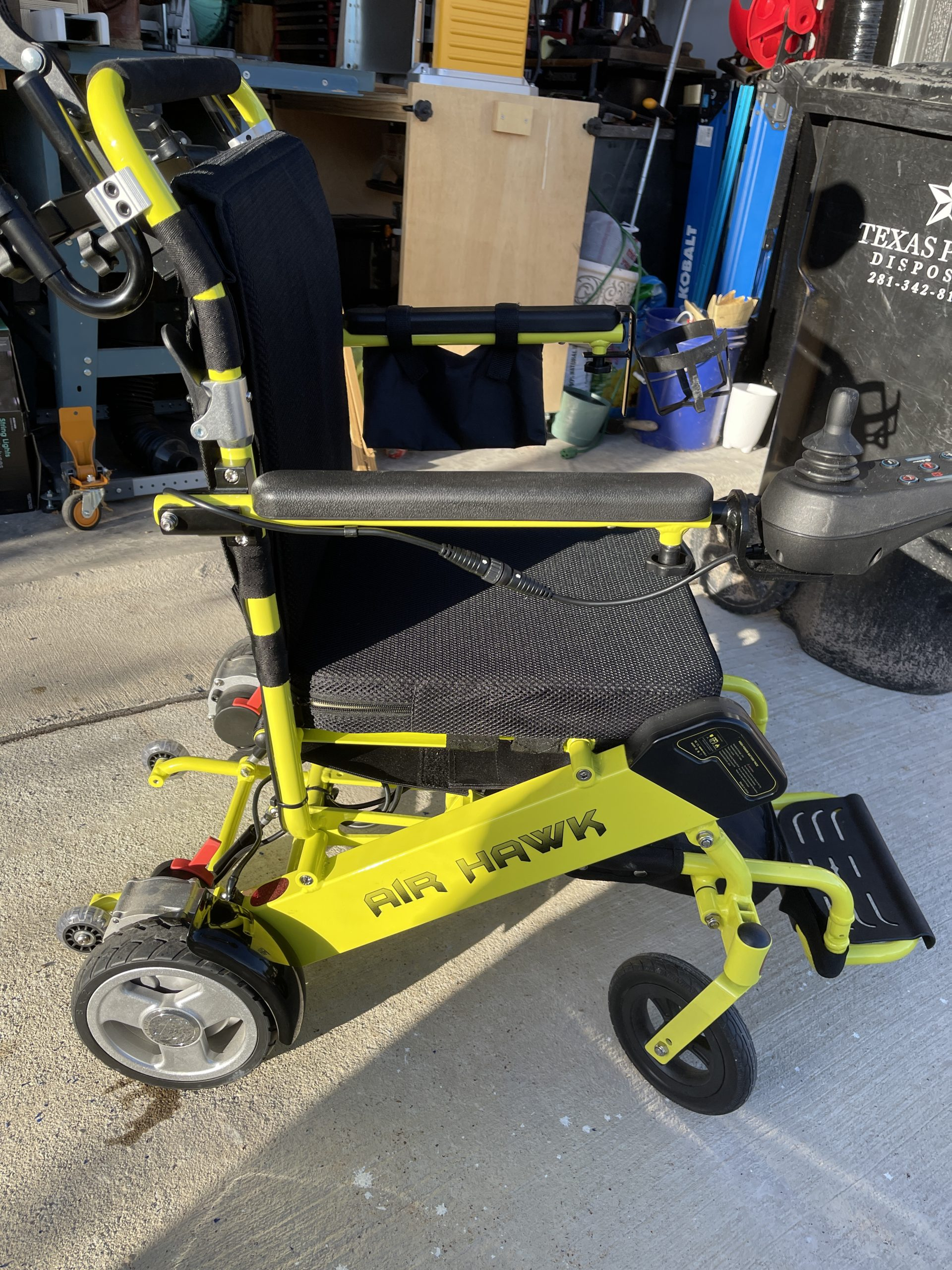 Embrace independence with the Air Hawk – your passport to limitless mobility. Whether indoors or outdoors, this electric wheelchair is the epitome of versatility. Don't just move; soar through life with the Air Hawk Electric Wheelchair. Elevate your mobility experience – because everyone deserves to travel in comfort and style. Prefer local pick-up in the Houston, TX area.