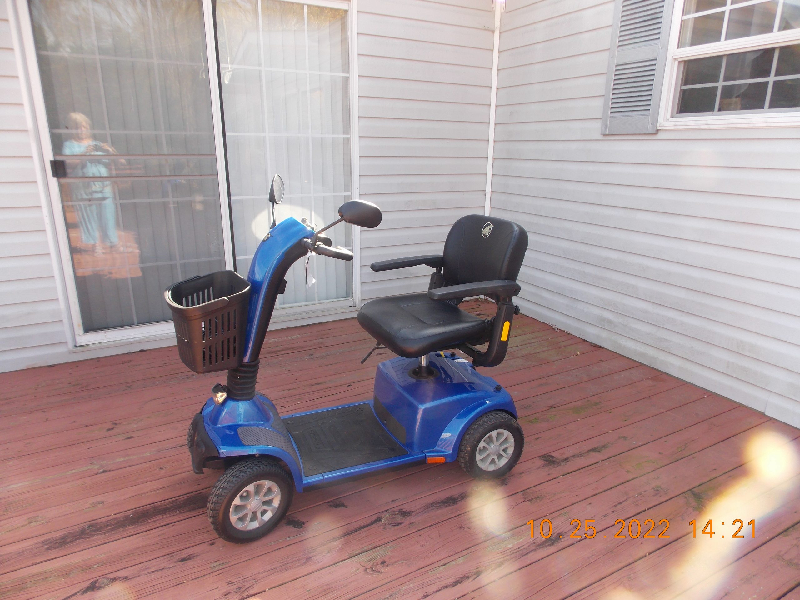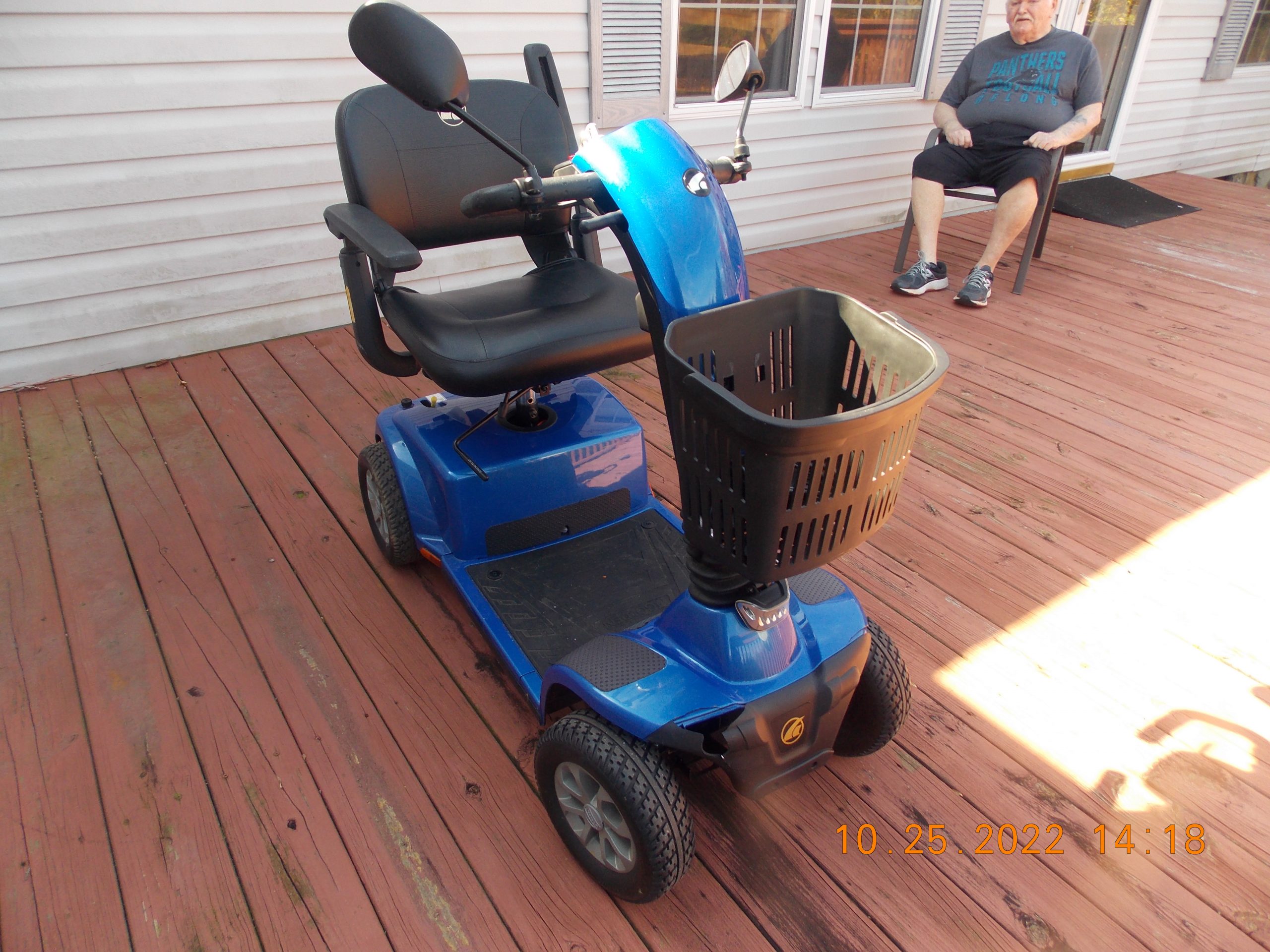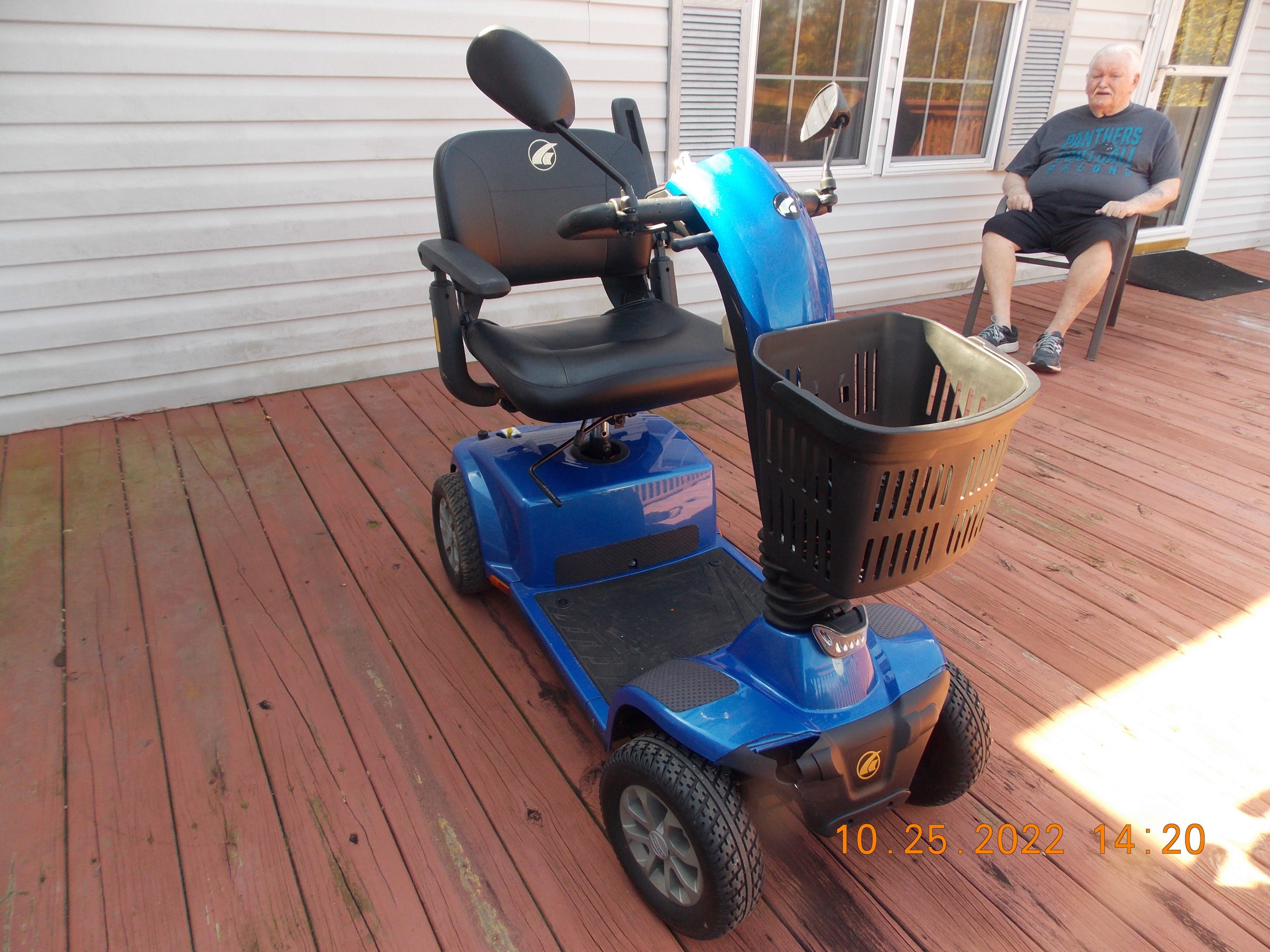 An almost new Golden Tech GC440 motorized scooter for sale. We have put less than 5 miles on it. It is well made and durable. The Companion GC440 four-wheel scooter offers the most legroom and foot room in its class with a modern, rugged design. With 10-inch tires on the front and rear, it cruises the outdoors and takes obstacles in stride. Features include easy disassembly; an adjustable LED headlight; an ergonomic control panel design with a backlit battery gauge display; and a wraparound Delta tiller for easy steering. With a weight capacity of 400 lbs., a maximum speed of 4.5 mph and a range of 18 miles, the Companion GC440 is rugged, dependable and an outstanding value for a full-time, four-wheel scooter. 40AH battery upgrade pack available for up to a 23-mile range!