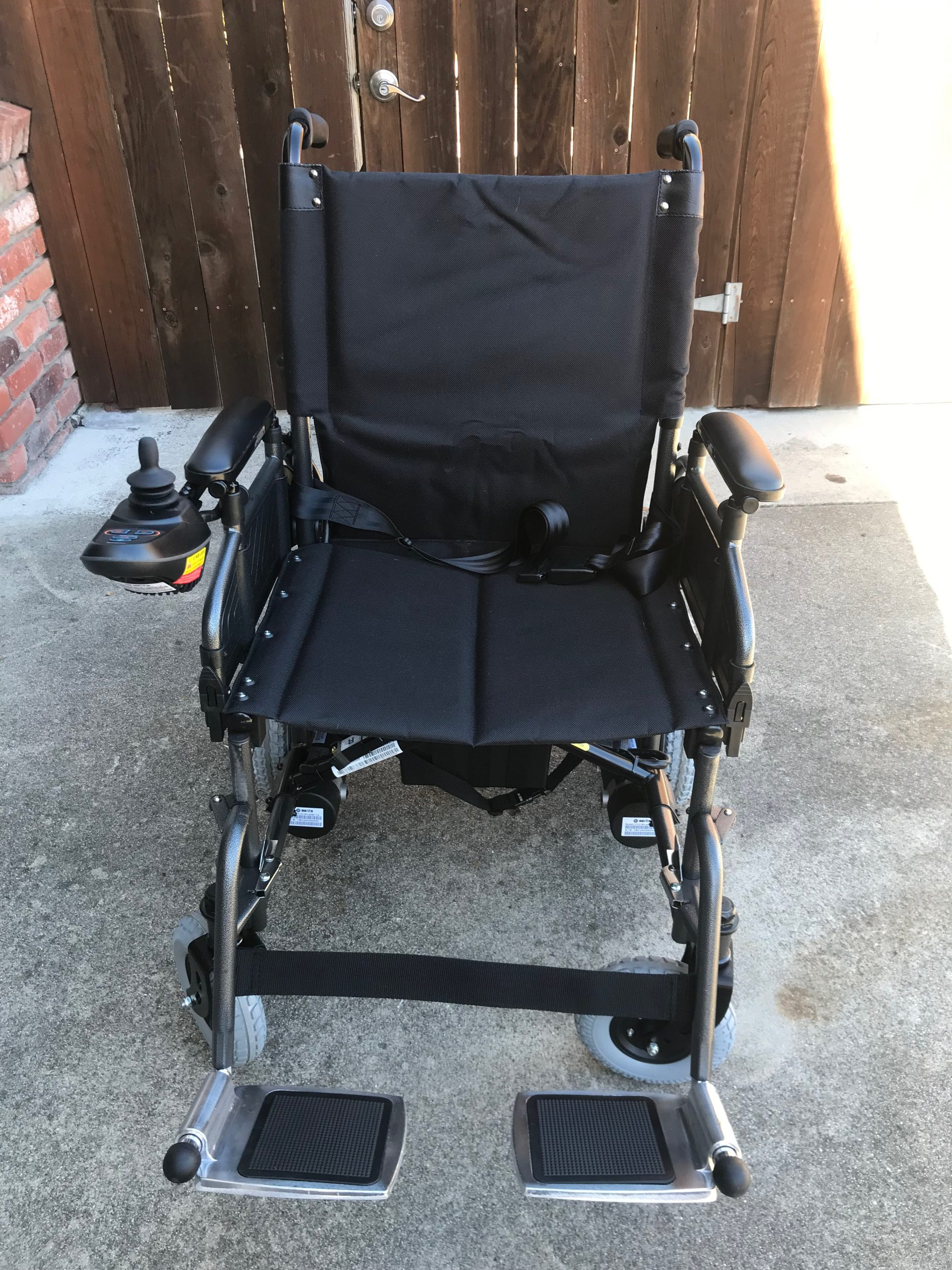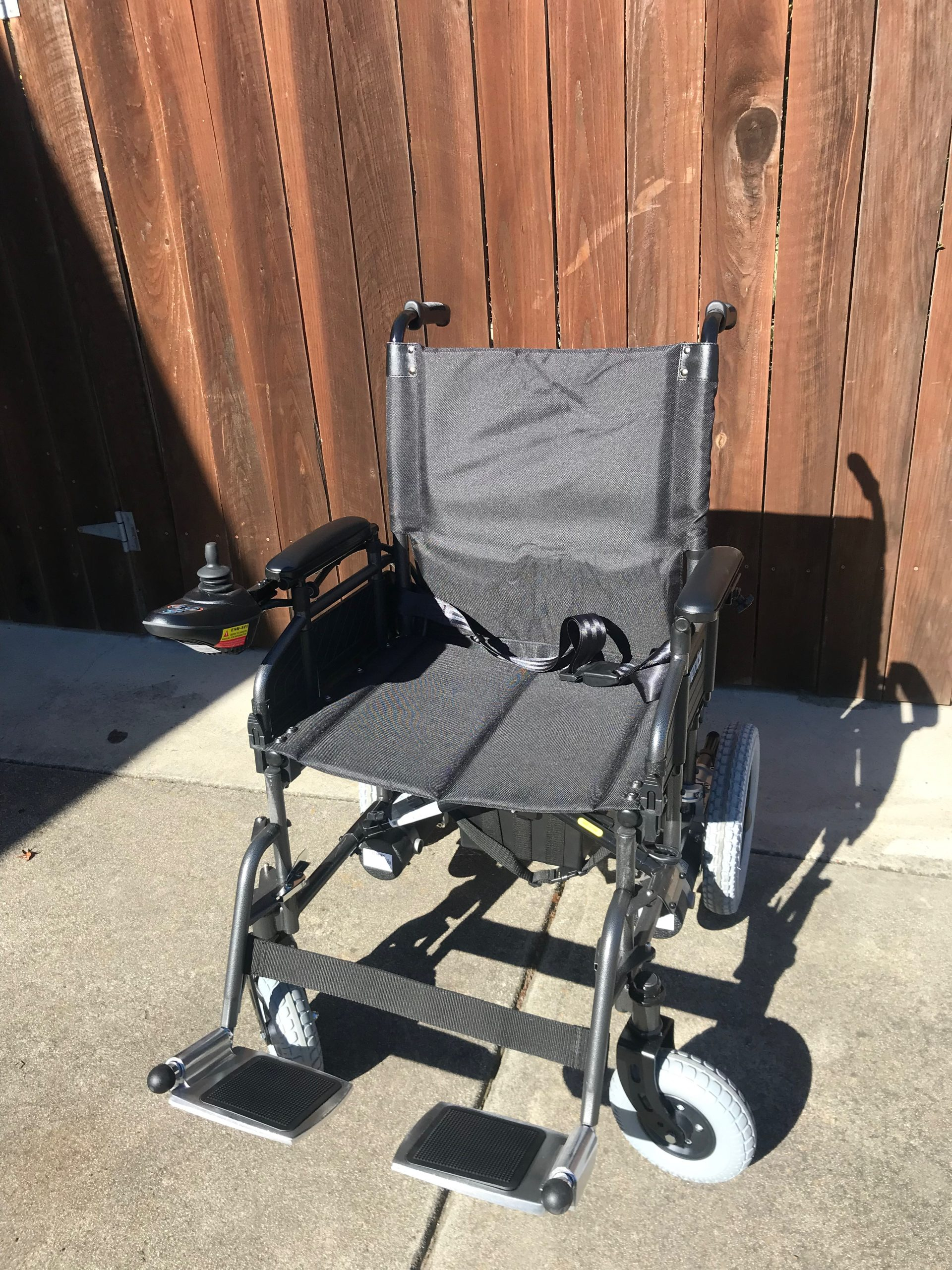 Never-used Merit's folding travel power wheelchair. In excellent condition, 19 inch seat. Purchased in July of 2022 but never used because I am super short and it was just a little too tall for me. This is a description of it: