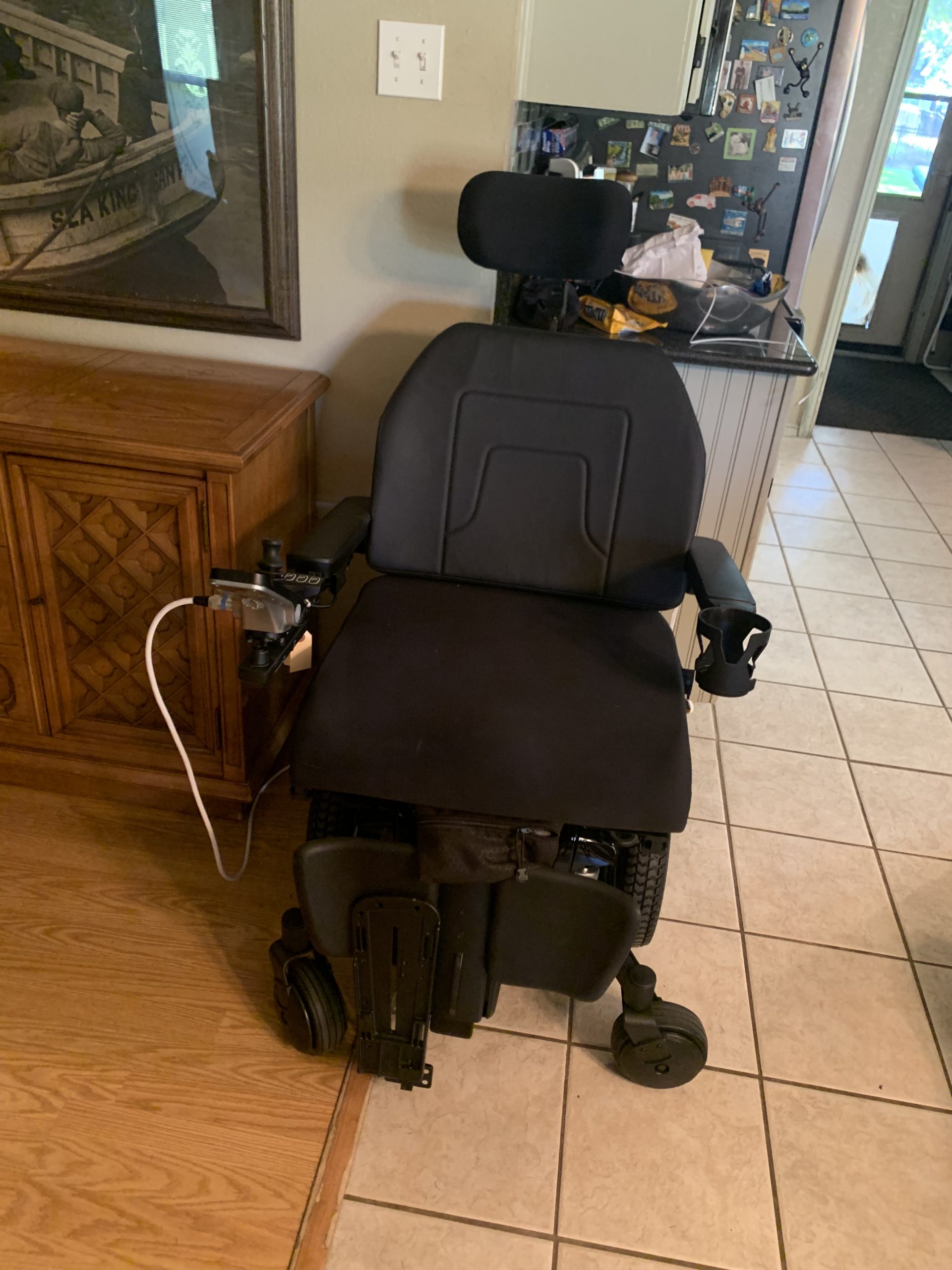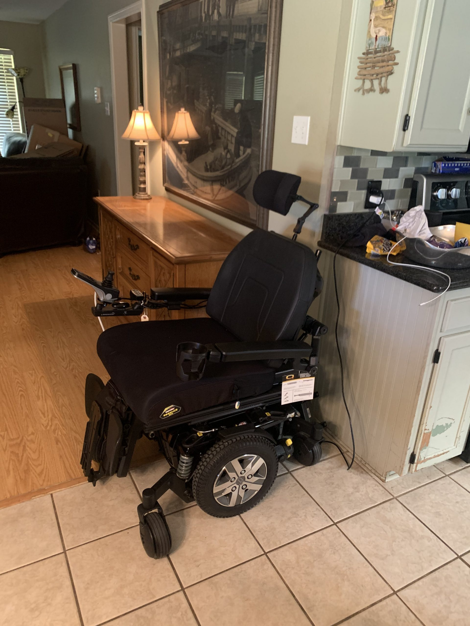 Brand new Quantum 6 Edge 2.0 with i-level technology. True Balance tilt and recline, 10” comfort plus, cool core 10” headrest pad, articulating foot platform and a Stealth Essence Cushion 21W x 20D, Controller Joystick Module with LED color display. The battery is brand new. The color is black. It tilts back. It still has all the tags and manual. The wheelchair was received in June 2021 and my husband passed away in June. There are no scratches. It is in perfect condition. I will be able to ship to you. I will be able to FaceTime anyone who is interested and demonstrate the capabilities. I can also send a video demonstrating the I-level technology. I am located near Dallas, Texas. If you are interested, please contact me and I can discuss further the capabilities. The list price was $59,650. I am asking $13,000.