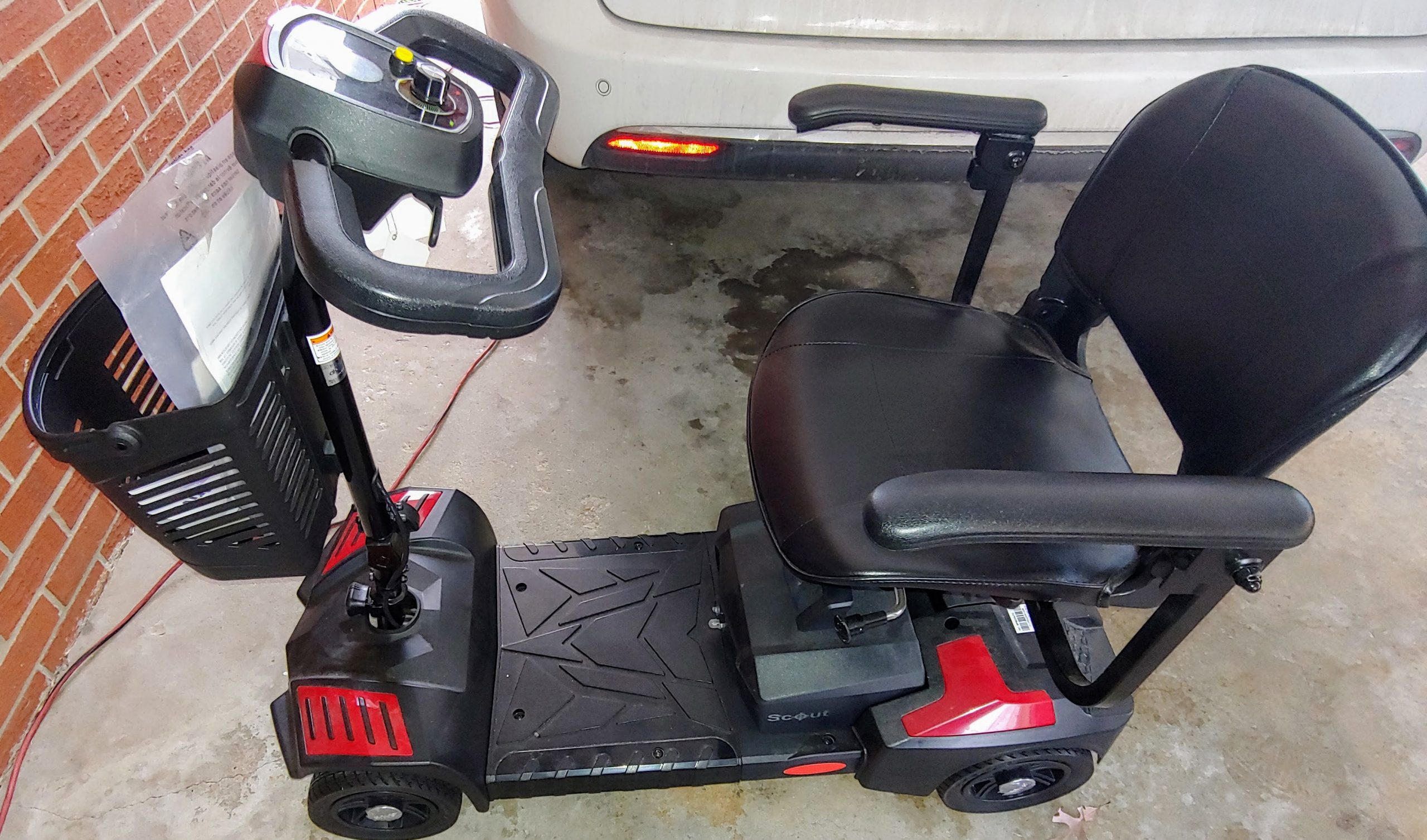 The Scout truly is the perfect scooter for your on-the-go lifestyle. The Scout can be quickly and easily disassembled; when fully disassembled, the heaviest piece is a mere 39 pounds so toting this unit around is a breeze. The seat back also folds down making storage and portability of this unit nice and simple.