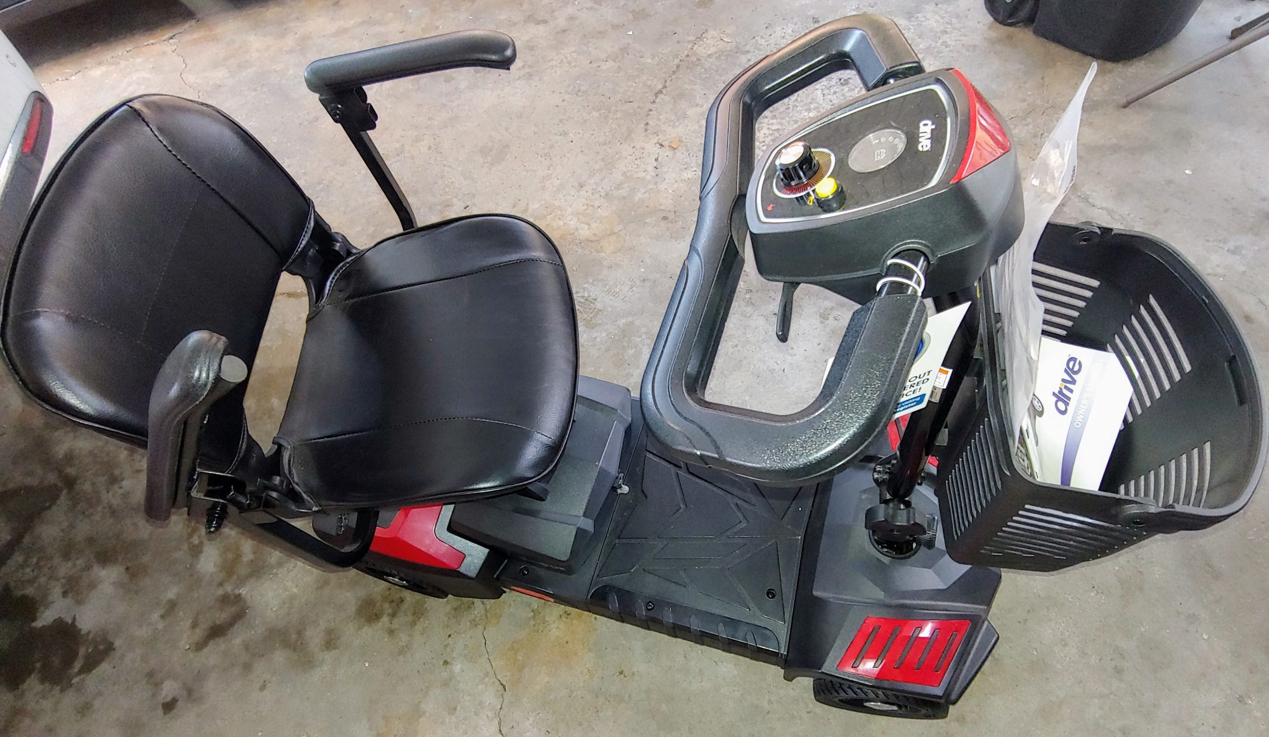 Weight Capacity: 300; Driving range: 9 miles; Padded and adjustable armrests for extra comfort; Height-adjustable swivel seat with fold-down backrest.
