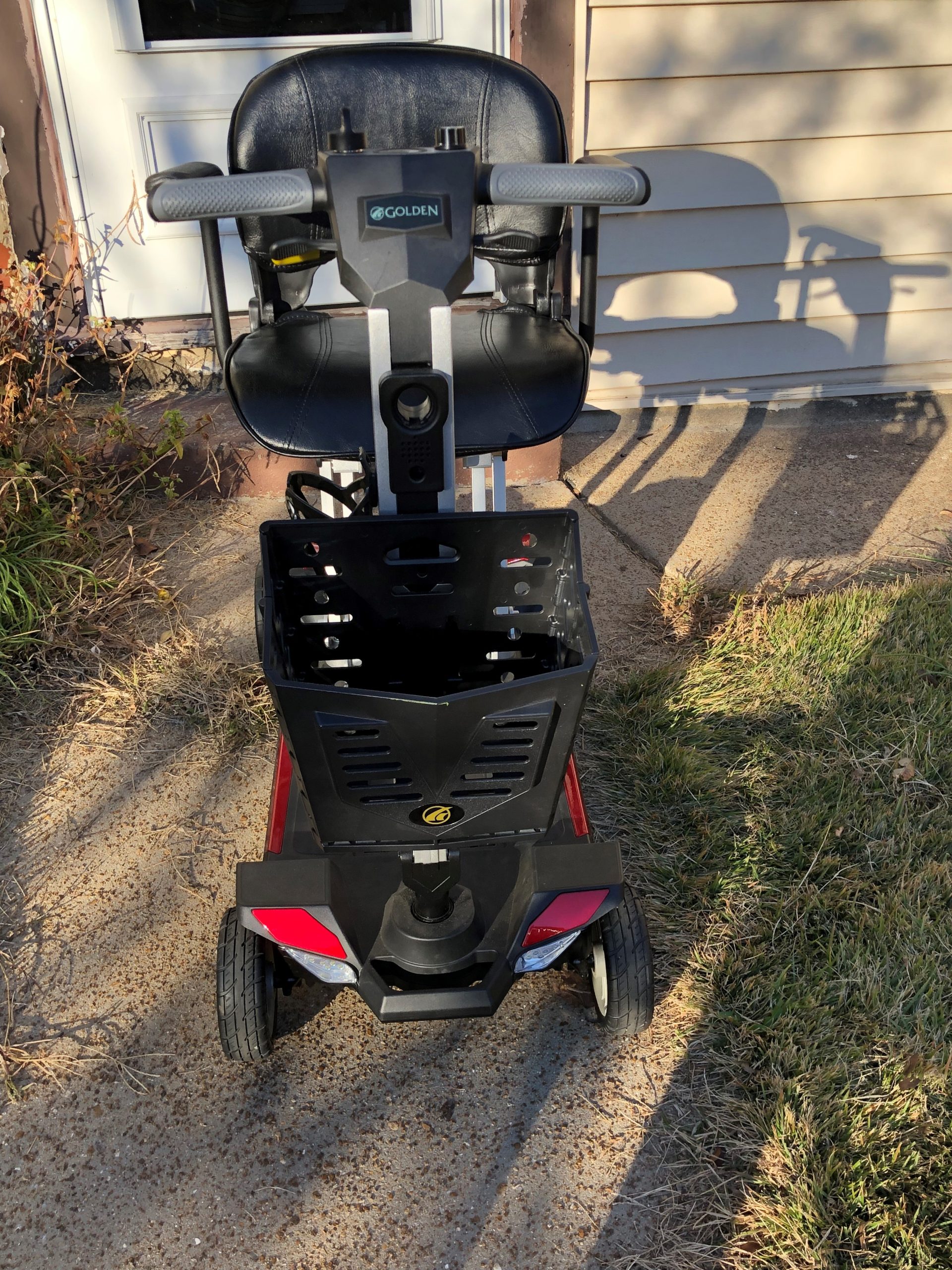 My mother purchased this scooter brand new from Medi Equip Inc. at 5845 South Lindbergh Blvd in St. Louis Mo on 4/1/23 for $2100. The bill of sale is pictured. She used it approximately 5 times before she passed in late November. The batteries are being kept charged as directed by owners manual. Nothing has been damaged and the equipment is being stored in a safe dry environment until sold. There has not been any recent need to have it worked on as it is essentially brand new. We are asking a fair value on this scooter as it is as stated like new.