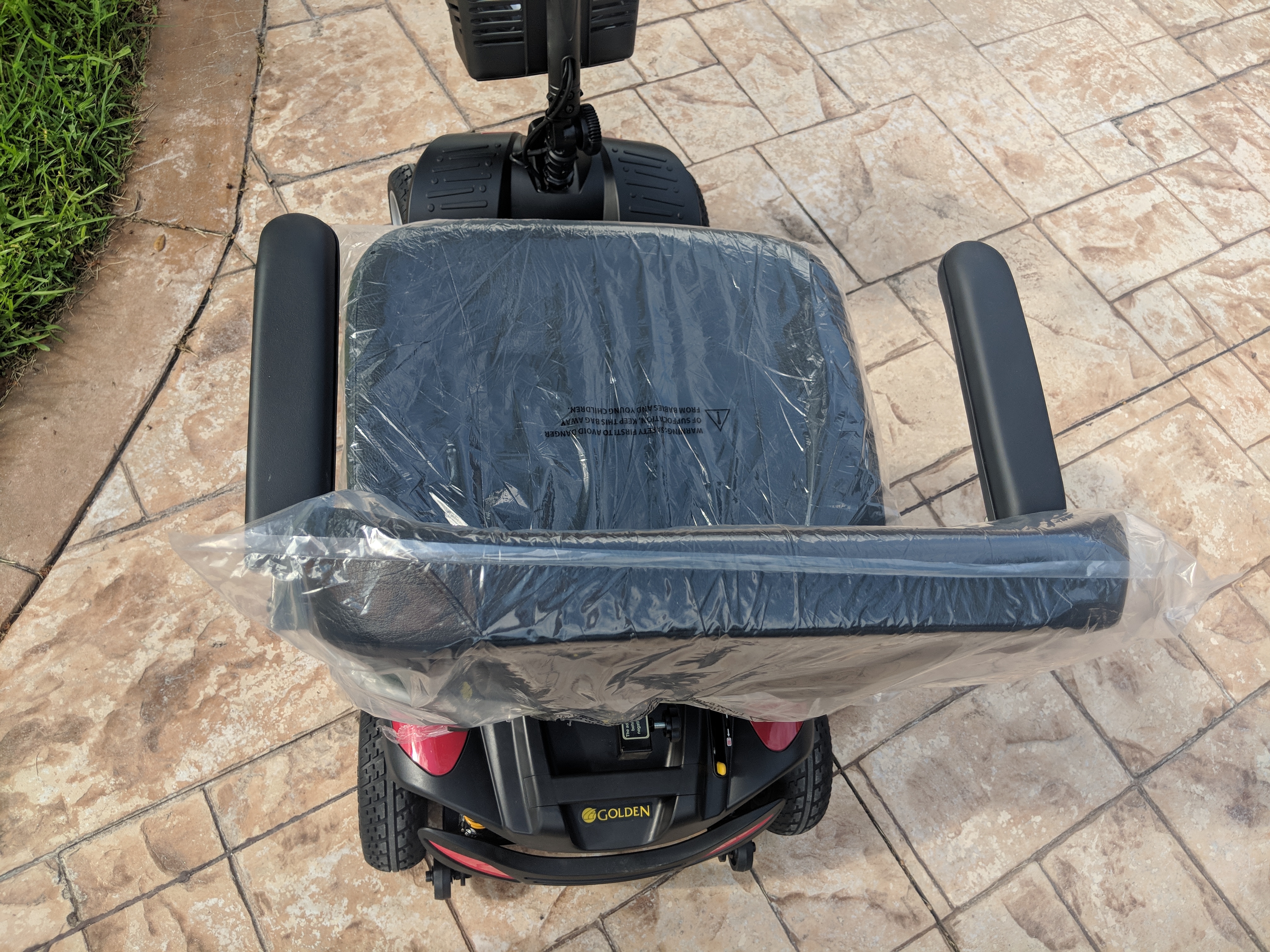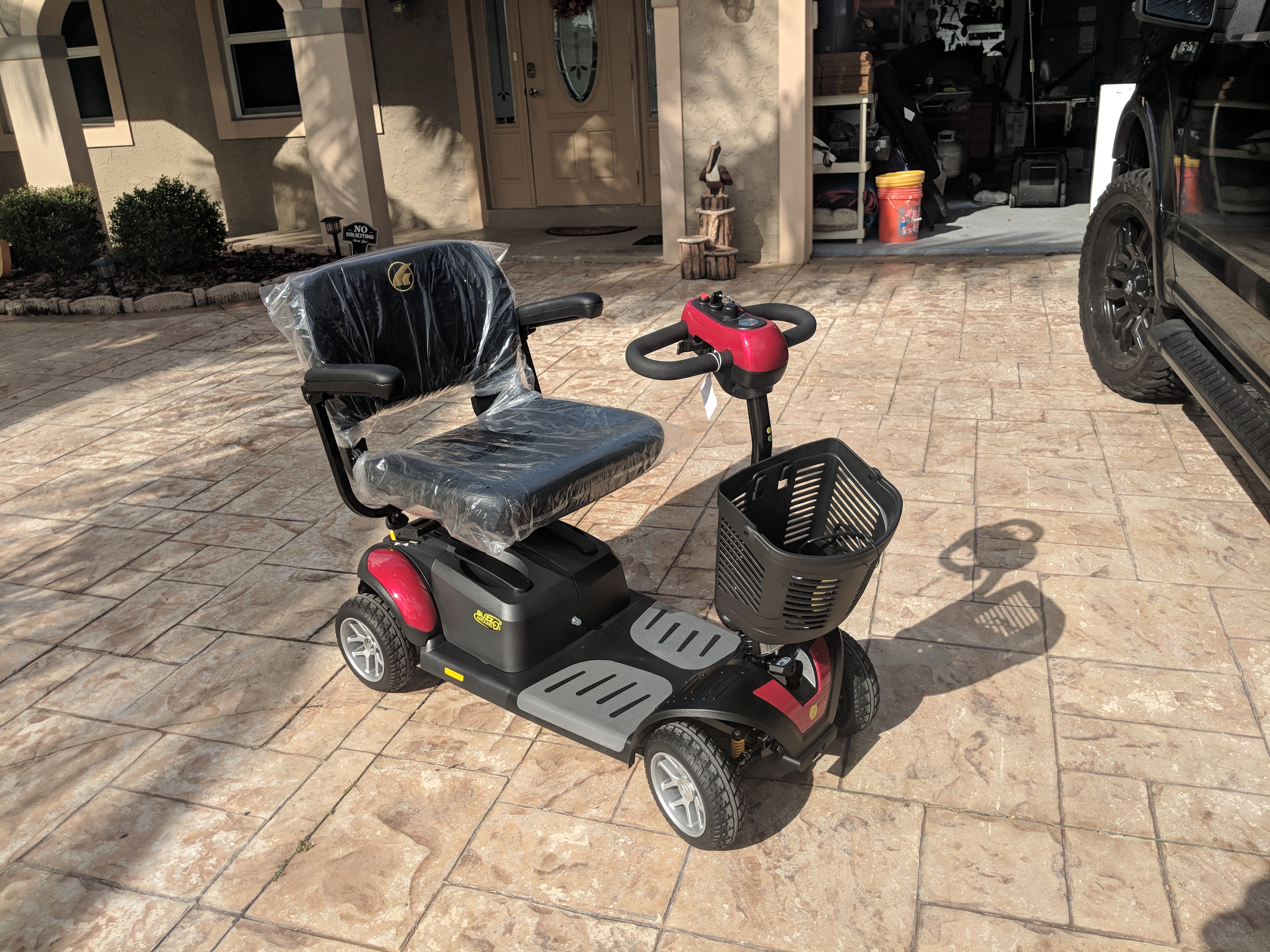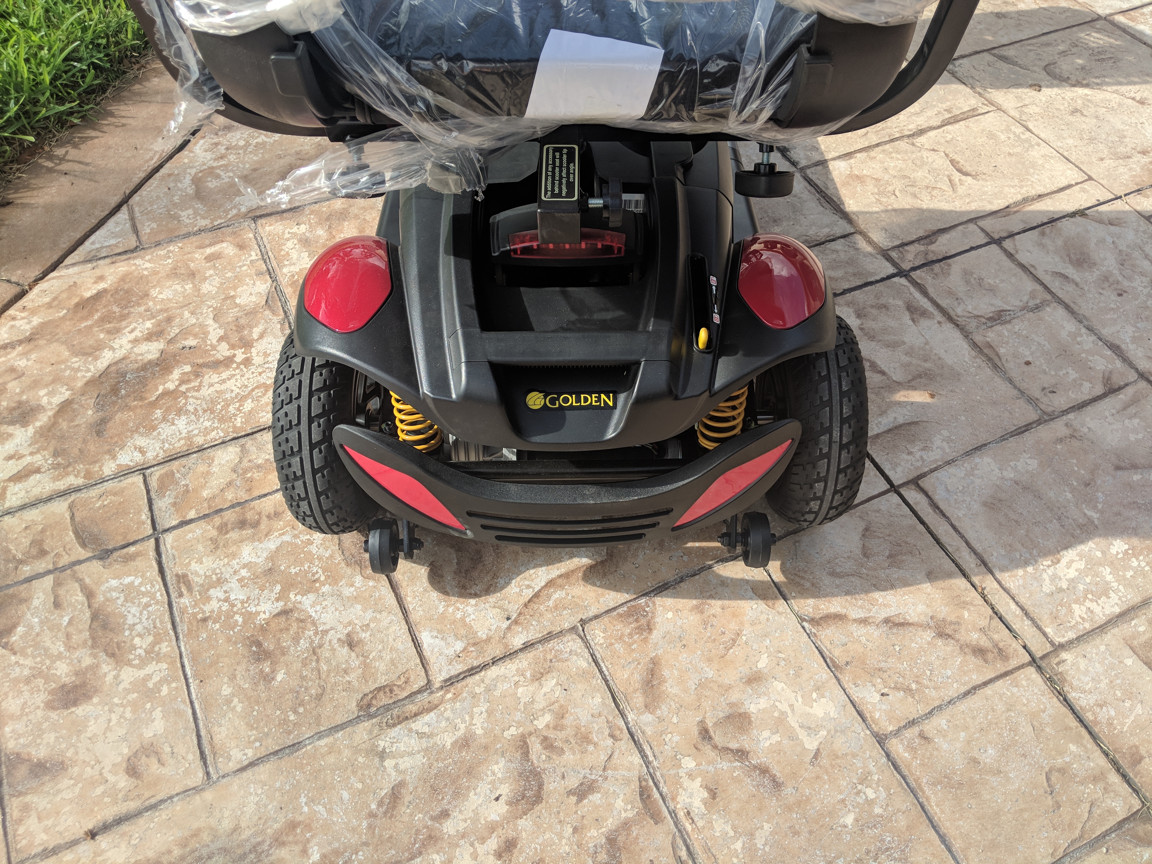 This is a mobility scooter made by Golden Technologies - one of the most reputable manufacturers of mobility products. This is the Buzzaround EX with an extra wide seat upgrade (20" wide).