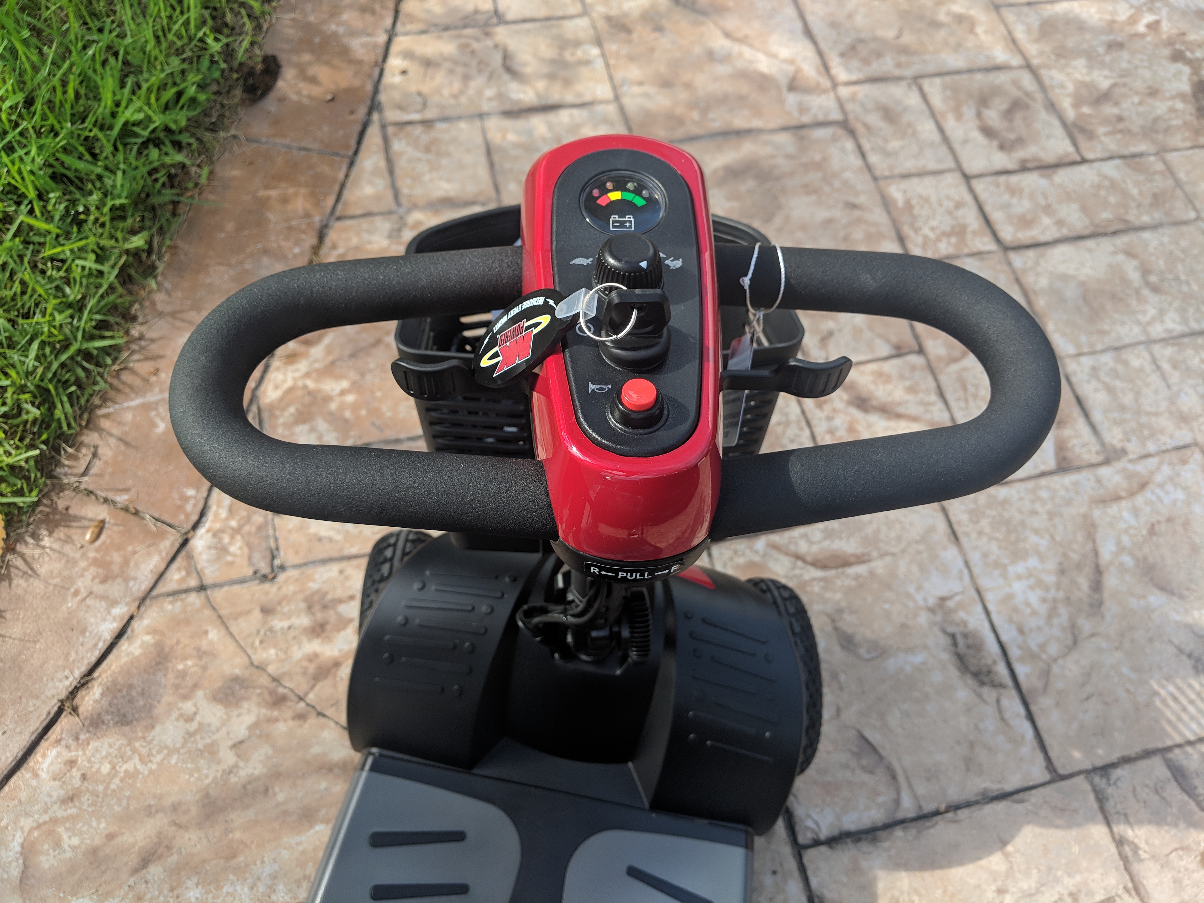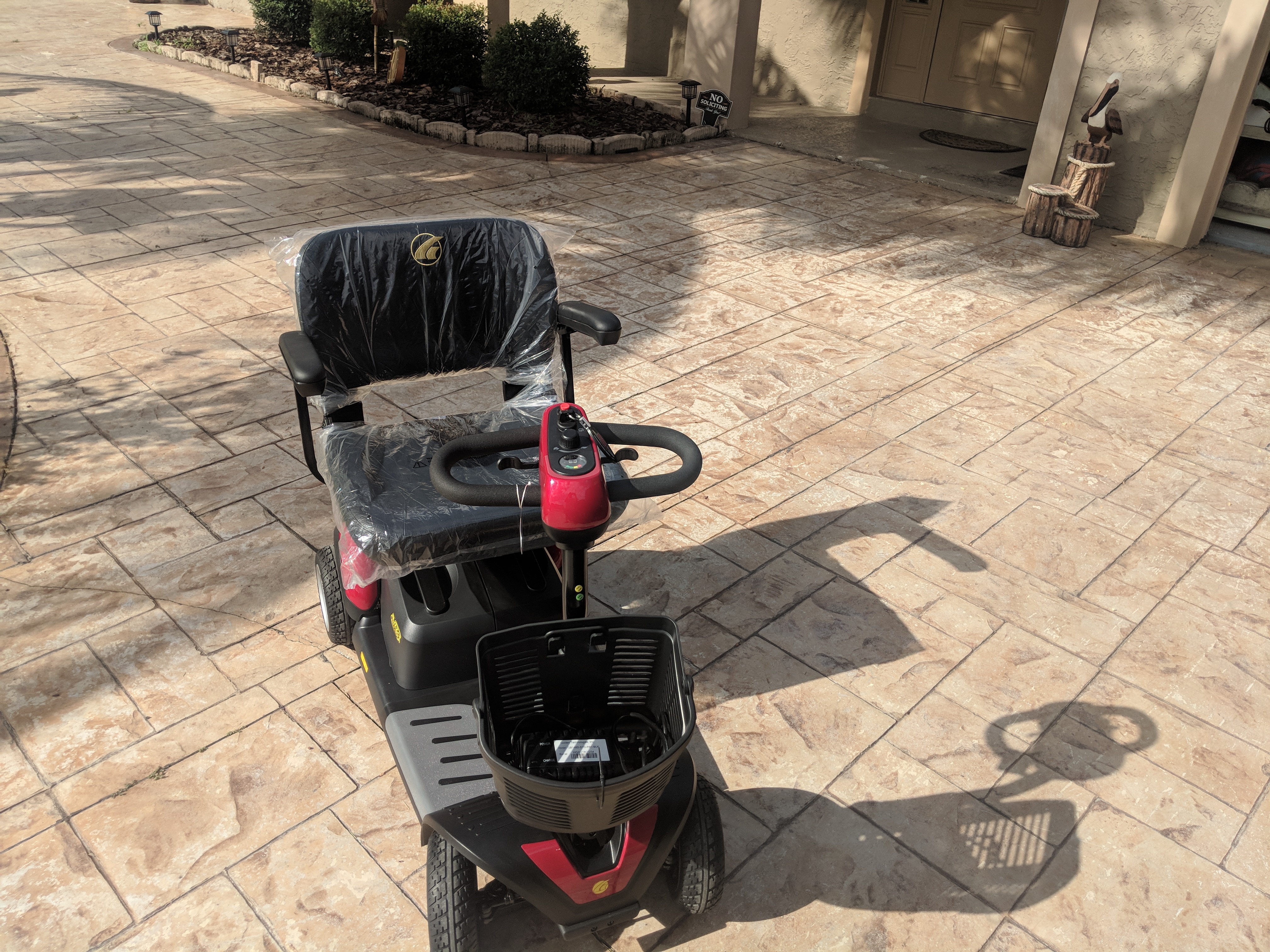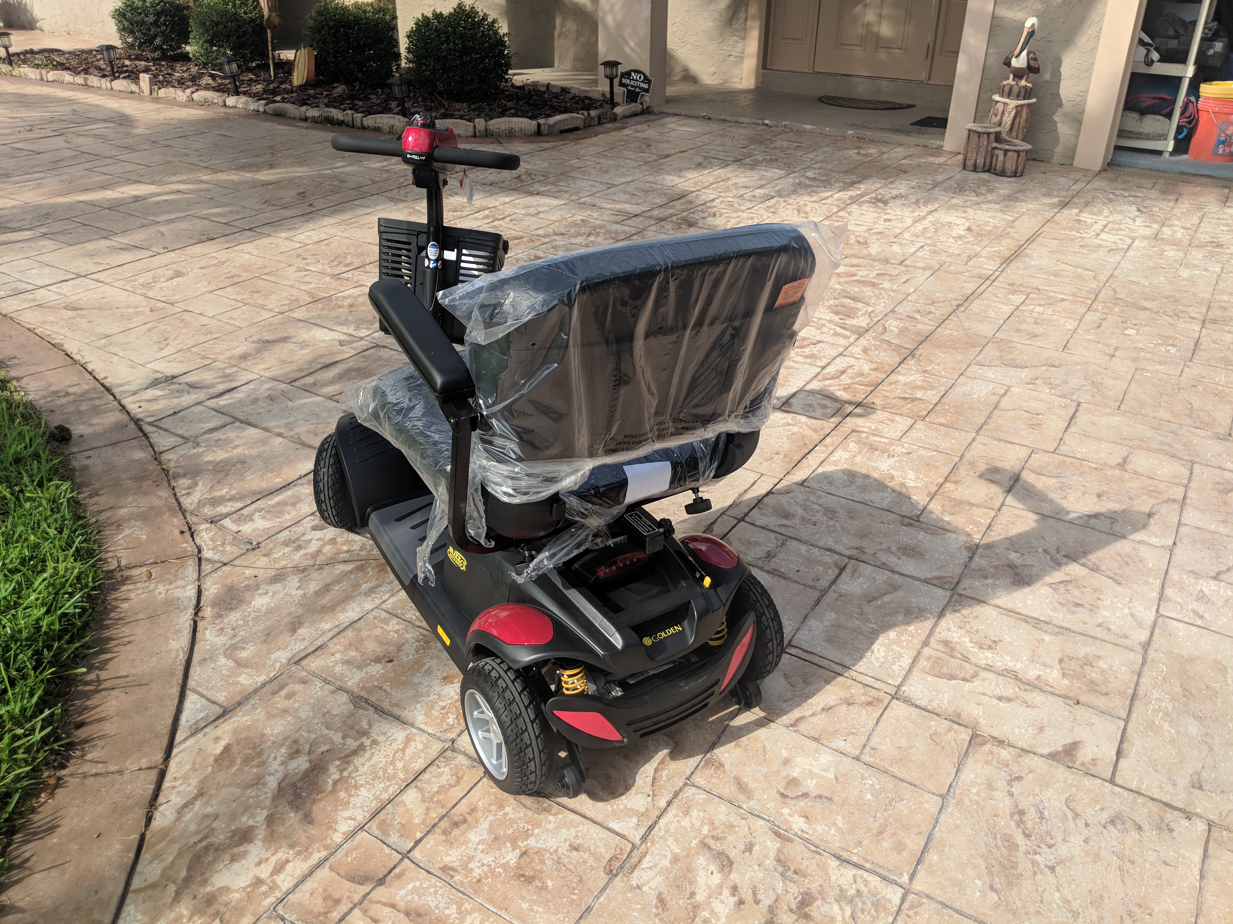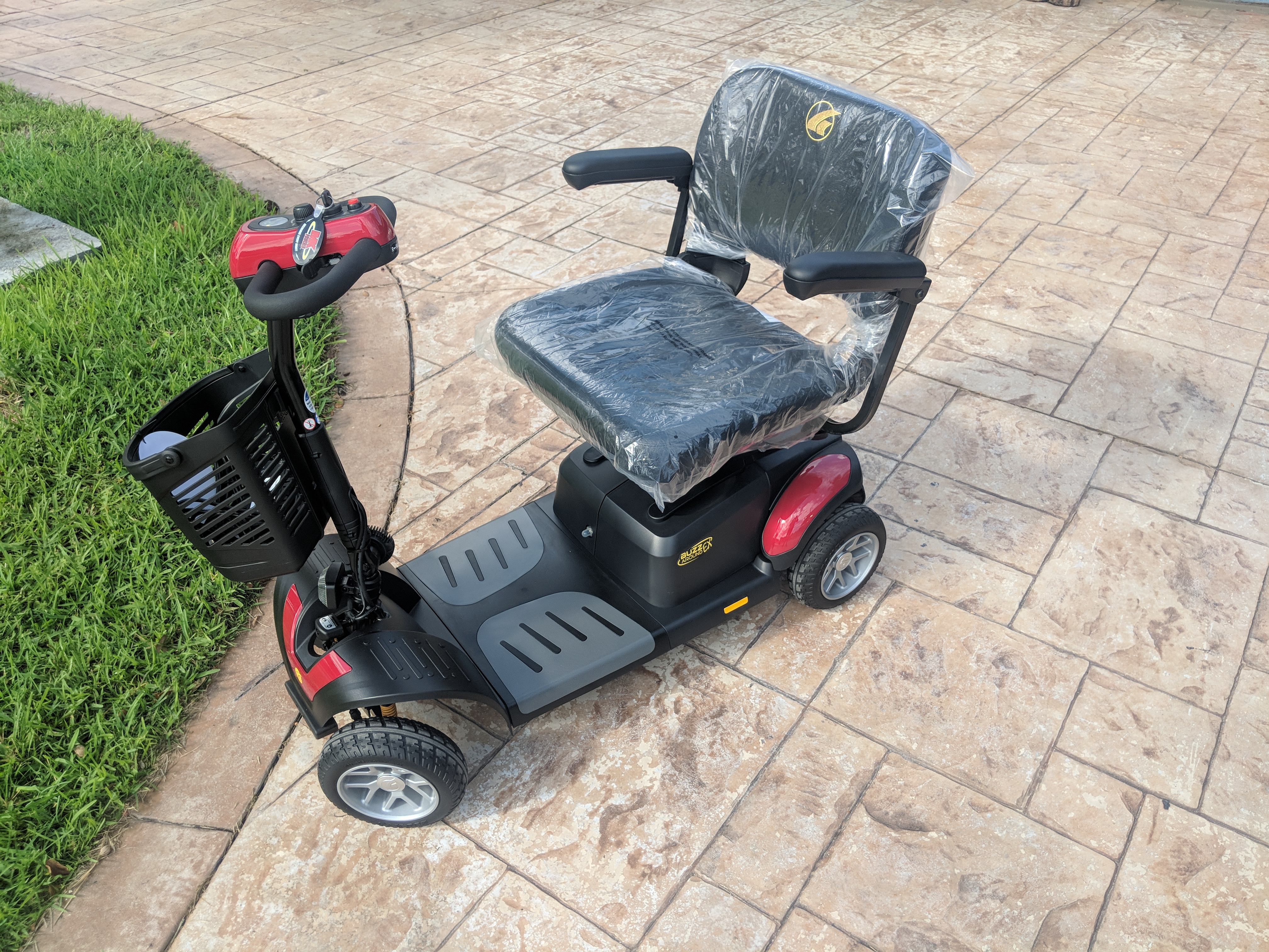 This is a mobility scooter made by Golden Technologies - one of the most reputable manufacturers of mobility products. This is the Buzzaround EX with an extra wide seat upgrade (20" wide).