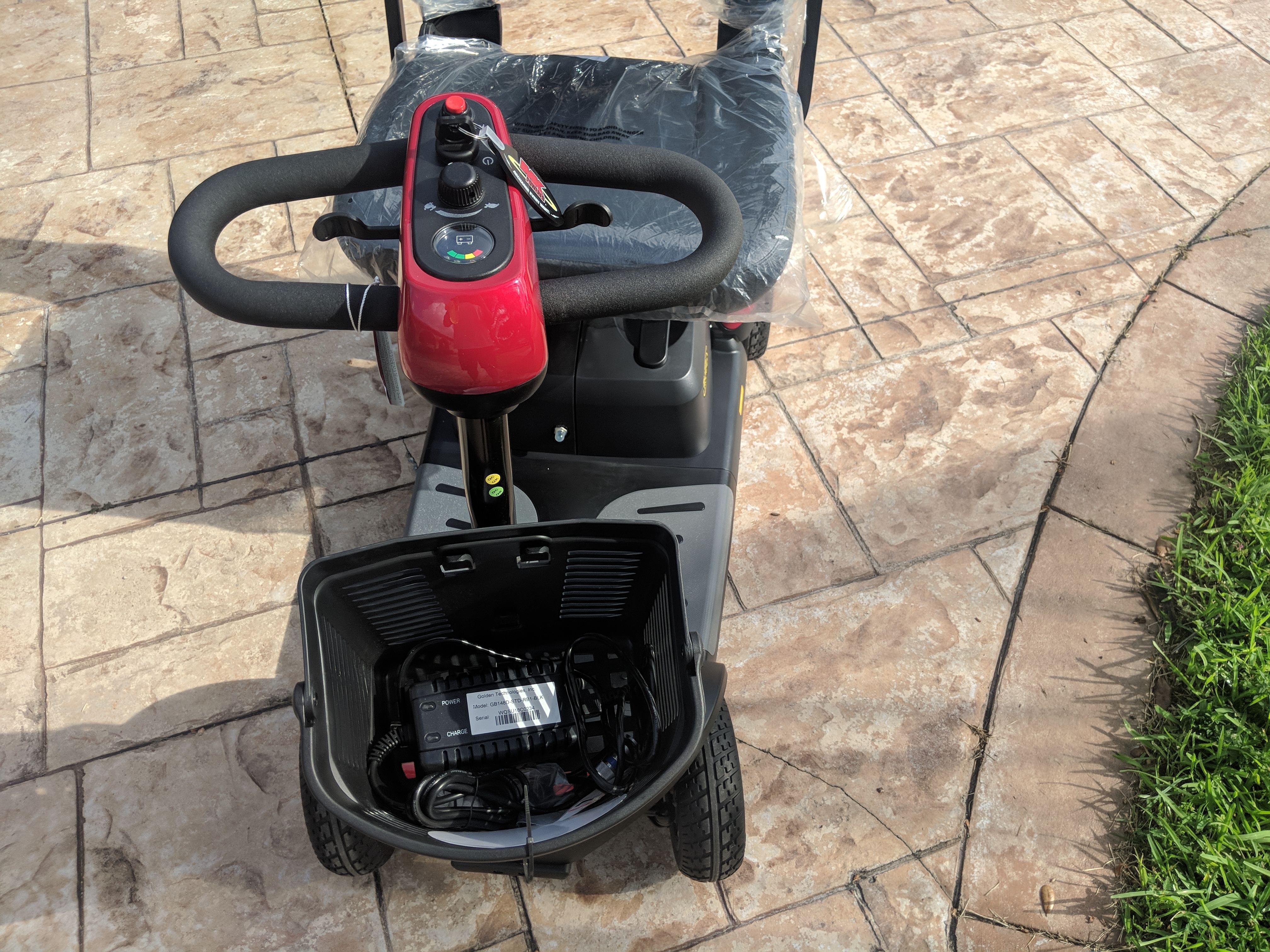 The scooter comes with everything, armrests, batteries, charger, manual and everything else it comes with when you buy it new.