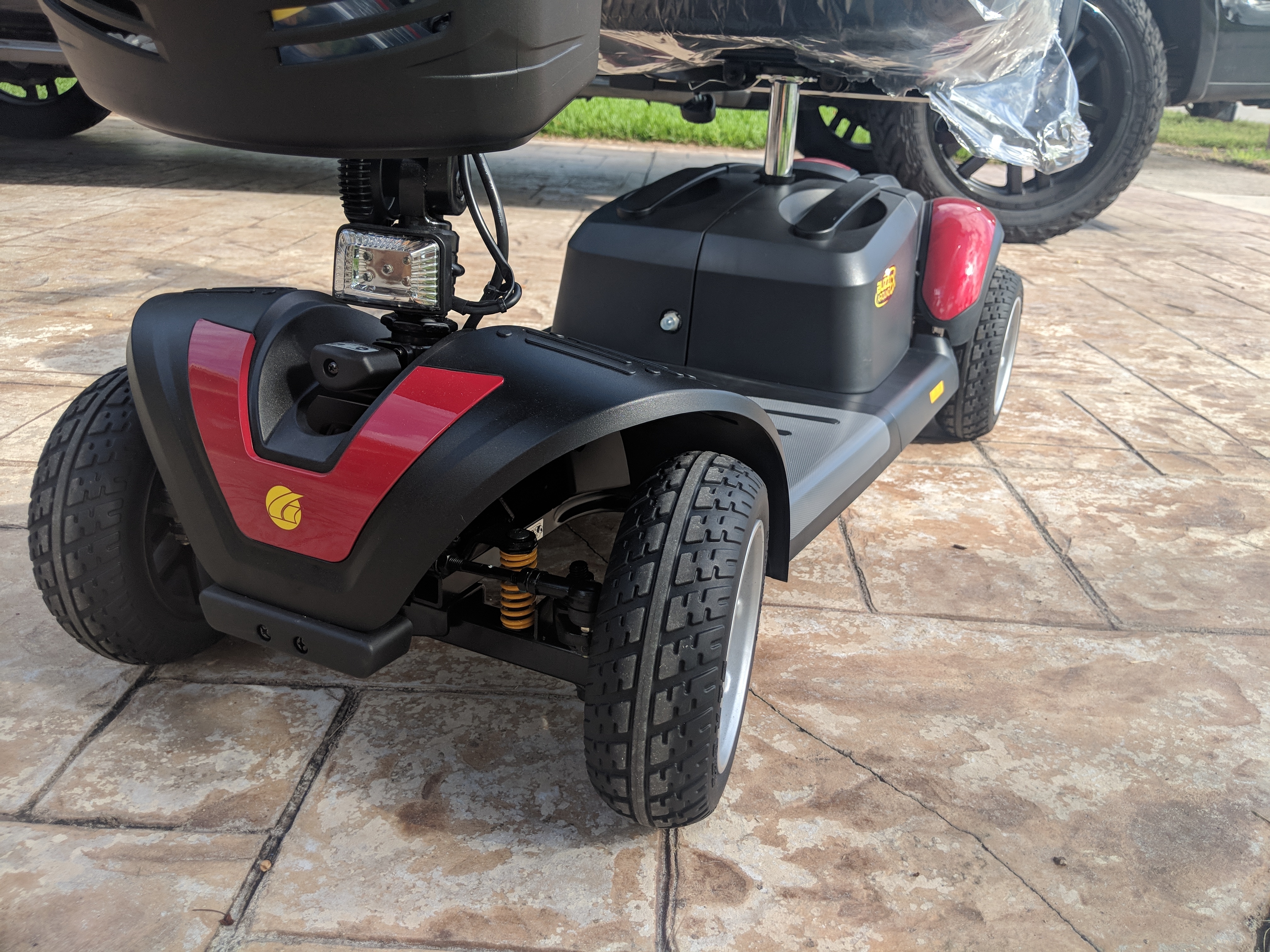 This scooter has front and rear suspension, led lighting package, speed controller and 360 degrees rotating seat. To learn more about this product, visit the link below where it can be purchased brand new: