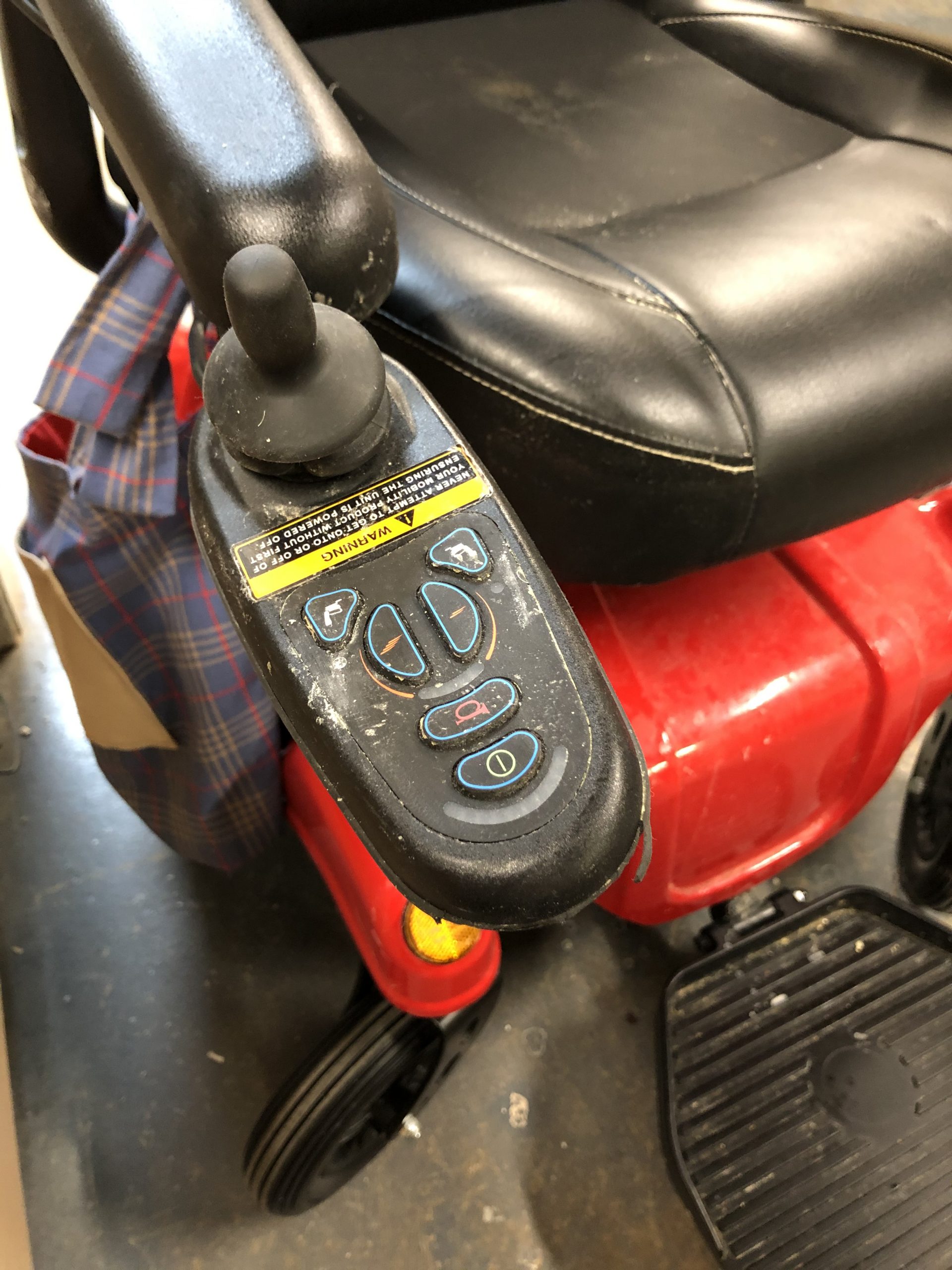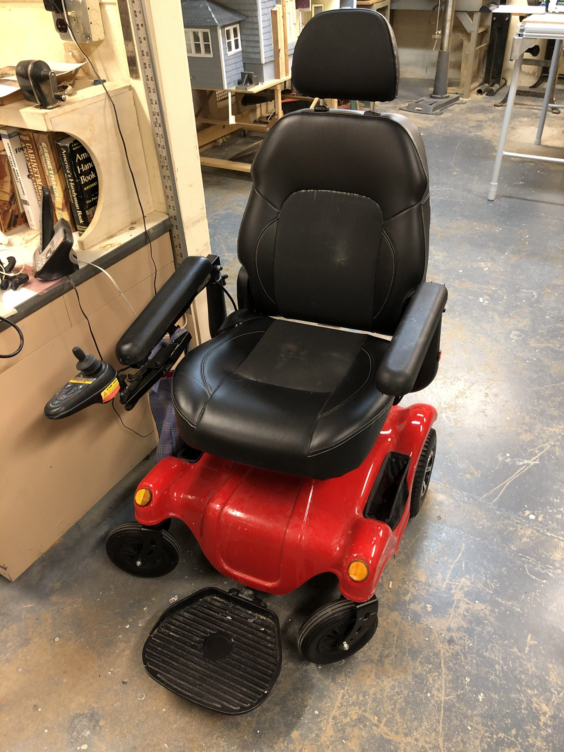 Cherry red and black power chair runs beautifully. Has joystick control on right arm. Comes with instruction manual and charger. My father loved this chair for about 6 months, but he is no longer healthy enough to use it and would like someone else to enjoy it.