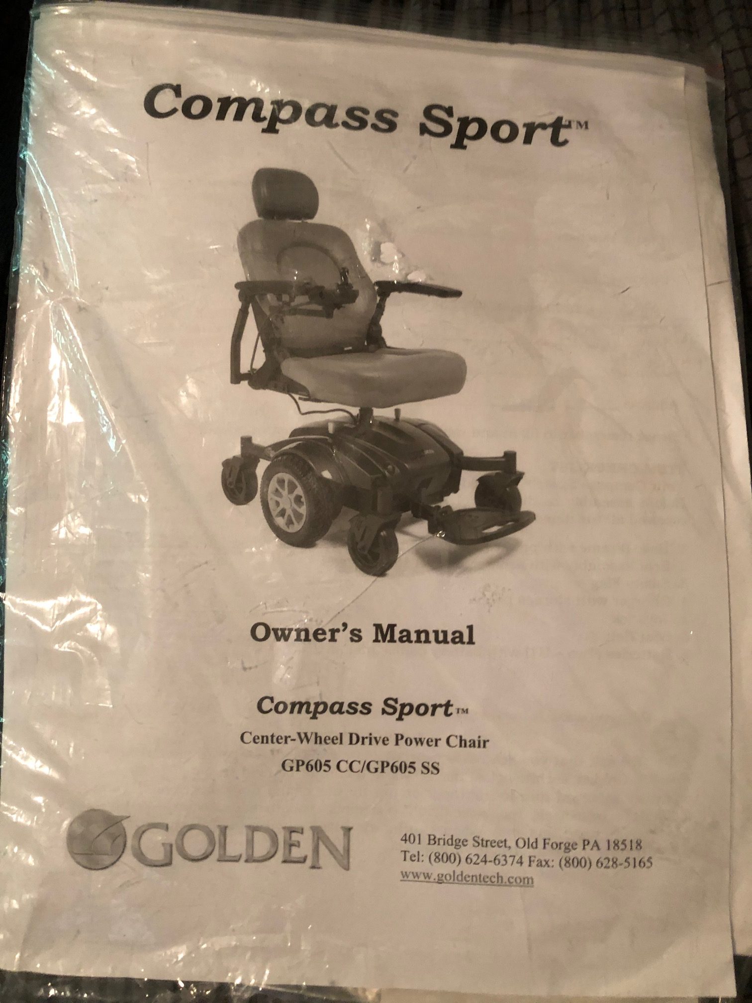 We are selling this for a friend whose husband died 3 months ago. This is a Golden Technologies Compass Sport GP605CC Center-Wheel Drive Power Chair bought in April, 2018 from Southern Mobility and Medical. ($8745 original price) He only used it inside and it is in excellent condition. Accessories include (2) UI batteries; (2) adjustable height armrests and amputee support; retractable joystick controller; suspension system; supplier standards packet included; We have the original delivery ticket and instruction manual. Maximum incline 6 degrees. Weight capacity 300 lbs. Maximum speed 4 mph. Operating range 24 miles. Ground clearance 3.25" Turning radius 19.5" Off Board charger . Weight of the assembled unit is 185 lbs. Flat free tires . Seats are gray vinyl . Footrest height is adjustable from 3 - 7". Frame has a lifetime warranty. We are near Raleigh, North Carolina. Please call to see or for more information. We would really like to sell this for our friend.