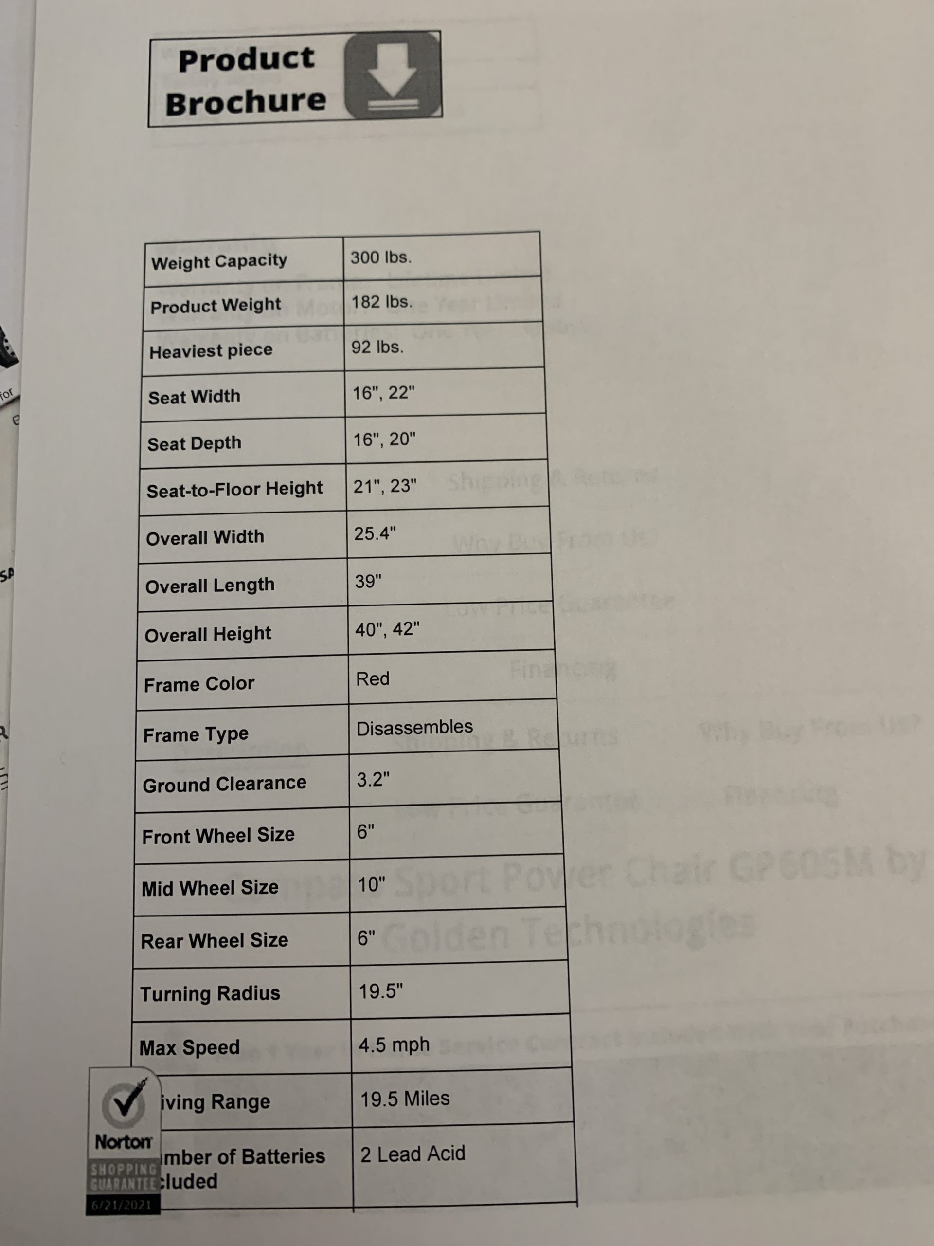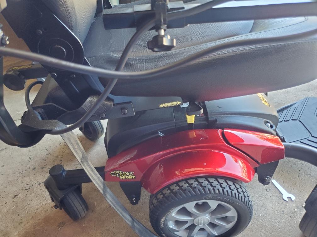 Golden Technologies Compass Sport Power Chair GP606M Electric Wheelchair. 300 lb weight capacity Improved battery range of 19.5 miles. Turning Radius 19.5”. Side mounted charging port. Adjustable headrest. Armrest height, width and angle adjustable. Unique suspension system. Being a center wheel drive power chair this unit has a super tight turning radius of 19.5 now you can basically turn around in one place to go in the opposite direction and maneuver around in the tightest spaces with a brand like golden technologies you know the products they produce are built the correct and the right way from the ground up the compass sport is no exception to this fact this power wheelchair comes with a unique suspension system that will keep all six wheels on the ground at all times which helps you the writer maintain control at all times as well This holds true when traveling through different types of Teranes going through threshold’s as well as mounting and dismounting the unit with six points on the ground you can feel safe you have the best stability