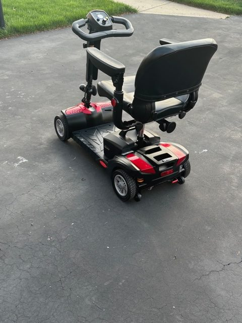 Although I think its several years old, my mom only used it a couple of times. Since she did not want to get trained during pandemic she almost hit another resident then was afraid to use it. It was in a storage locker and it is in my garage. Looks new, battery charge has held more than a year since charged. The DST in the scooter name means Dynamic Suspension Technology which means there are spring coils on every wheel for a more comfortable ride. Travel range 15 miles. Speed 4.25 mph. Weight capacity of 325 pounds. Seat dimensions are 17.5 wide by 16 inches deep and the back is 14 inches. Scooter is 42.5 inches long, 21.25 wide, and height of 36 inches. It weighs 123 pounds. I have the front basket, which I took off to protect. My neighborhood has sidewalks for a test ride. I will throw in 2 wheelchairs and 2 walkers. Please call and leave message.
