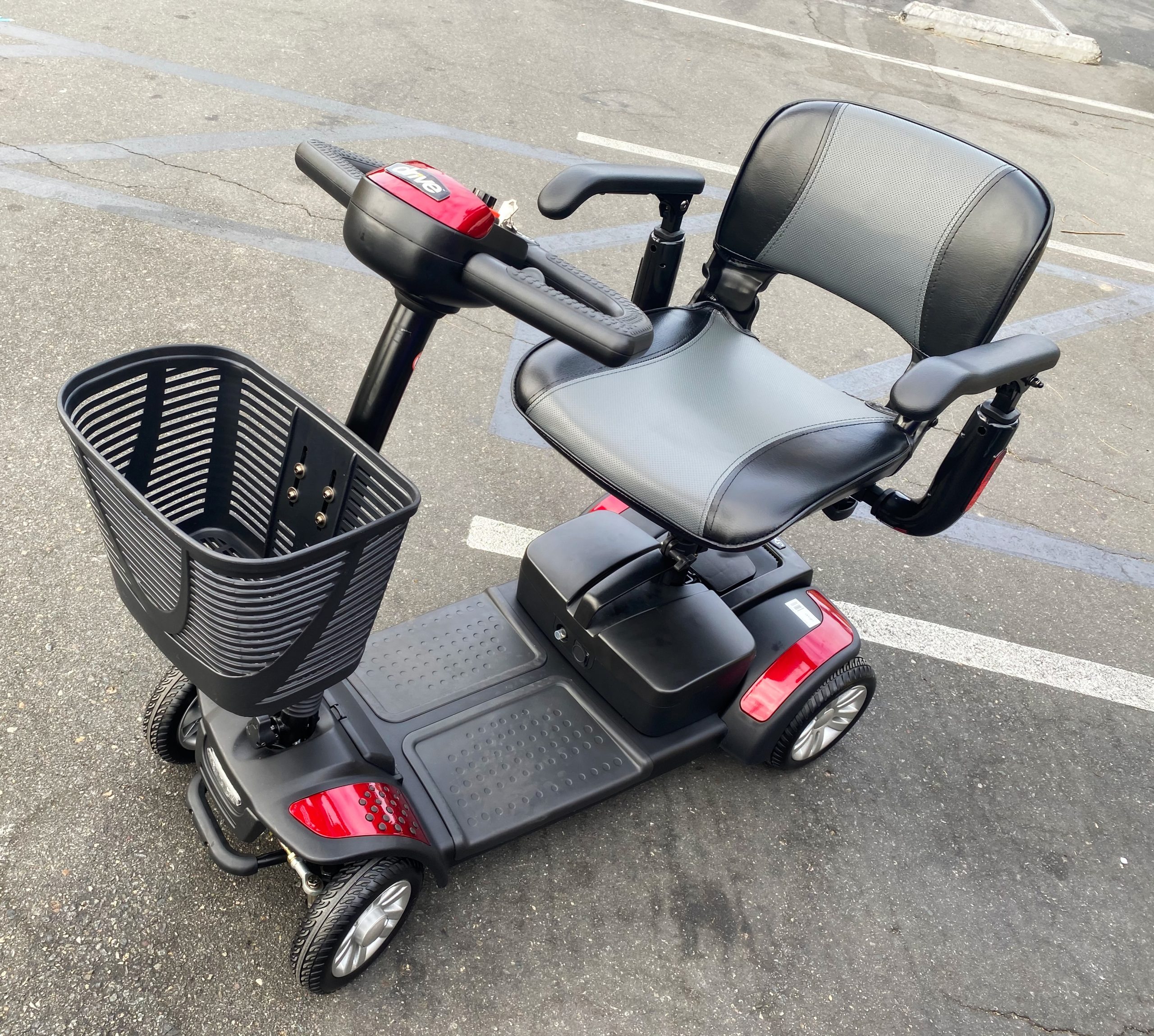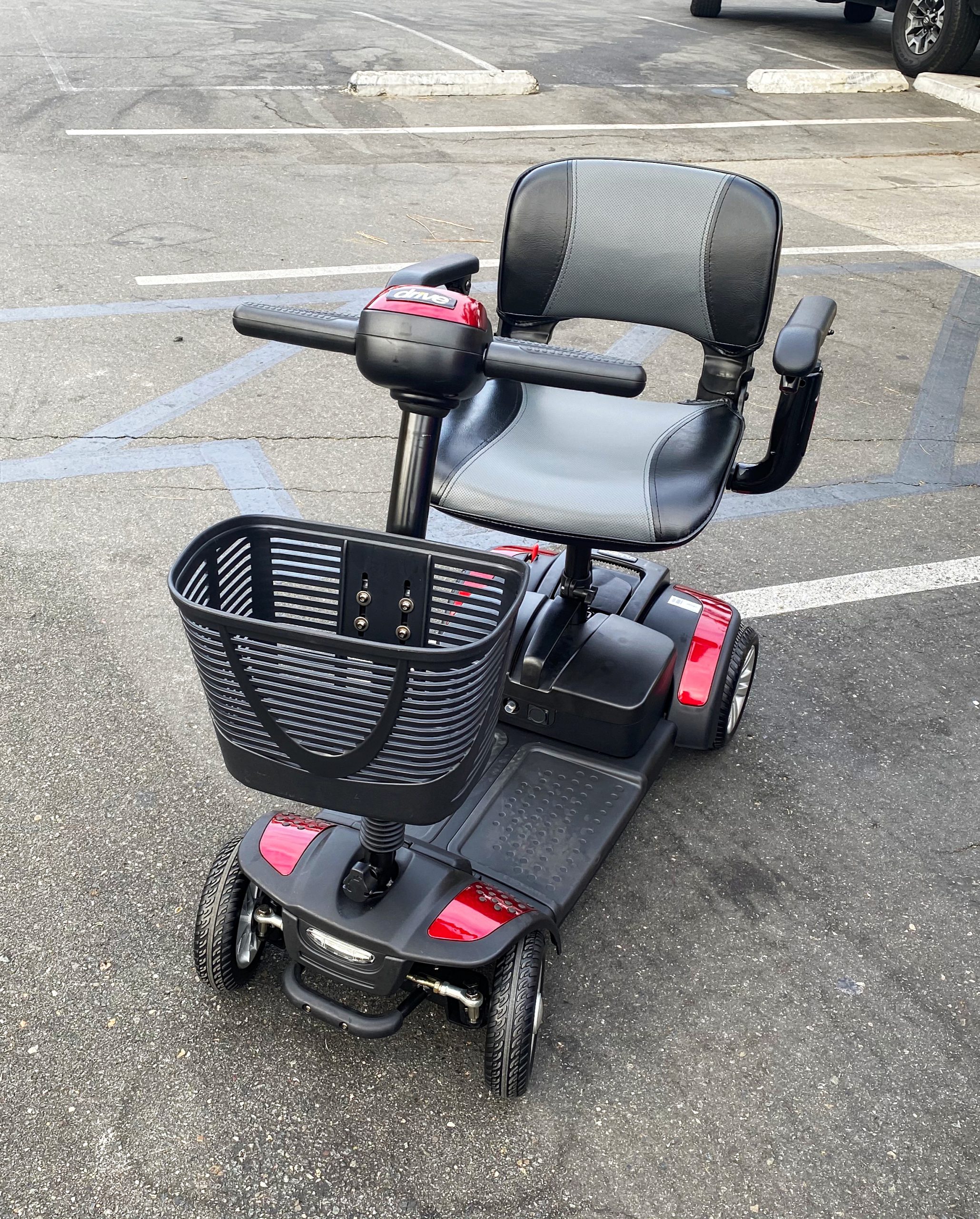 Hello! I have a brand new beautiful Drive: Spitfire Scout Scooter in red! It is a 4 wheel scooter. I originally paid 900 for it on 10/22/2020 at Anaheim mobility store. I’m selling for 650. Works perfectly, comes with Scooter, battery, and charger. The colors can be changed with buying the parts, I’ve seen pink, blue, green, and more! The weight of the scooter total is 94 pounds. Max weight of 300 pounds. The scooter is super easy to put together and comes apart into 5 pieces, it easily fits in any car trunk. The max speed of this scooter is 4.2 miles per hour. It’s the perfect scooter for indoor use or outdoor use! The wheels make it easy to go over bumps and unstable ground. If you have any questions or would like more pictures do not hesitate to ask! Thank you so much for looking and have a wonderful day!