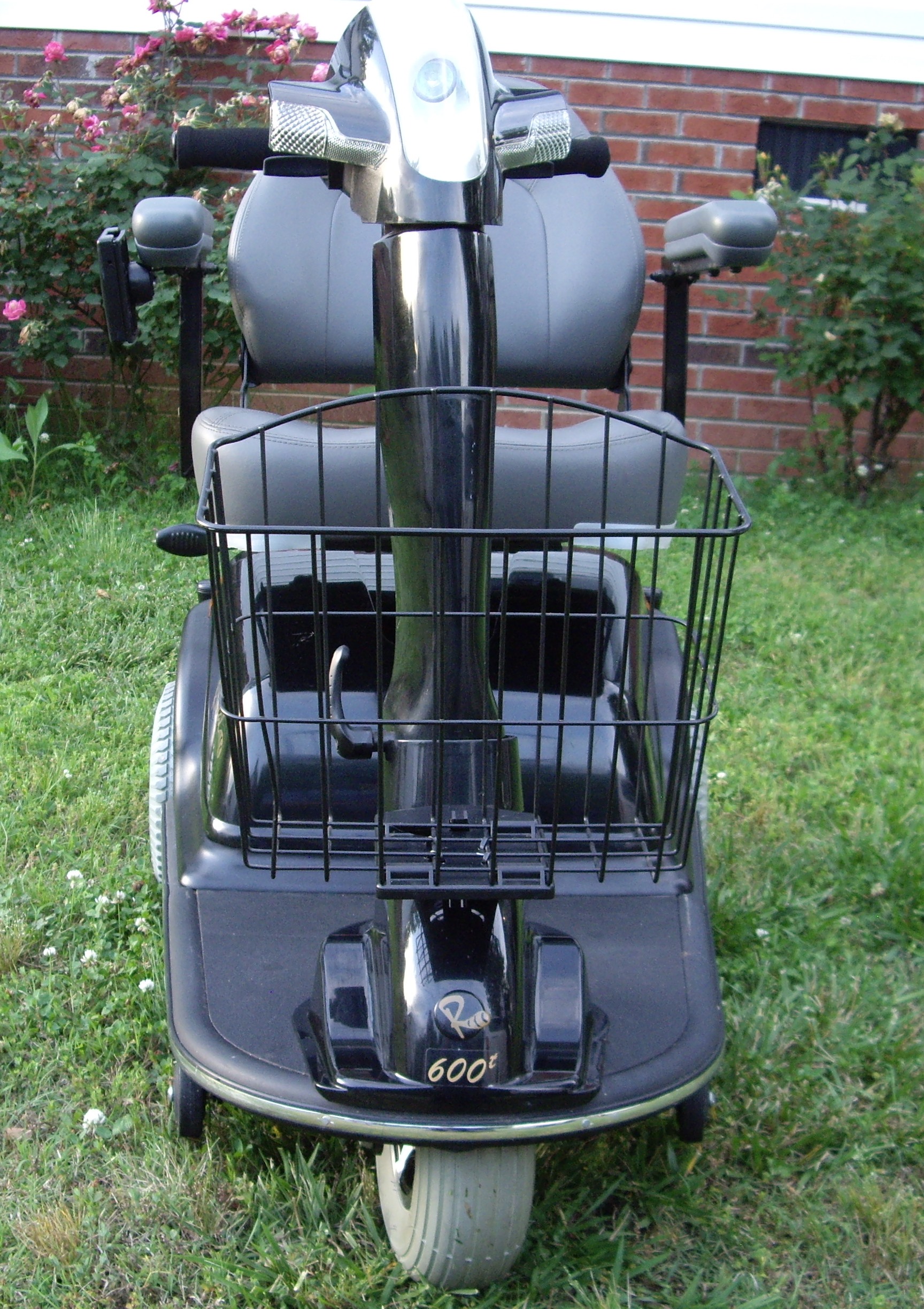 For sale is an Electric Mobility Rascal 600T three wheel scooter. It features; 18w x 16d contoured seat, flip up adjustable padded arm rests, removable quartz clock, adjustable tiller, removable front basket. The accessories receiver on the rear of the seat is designed to hold attachments for canes, crutches and oxygen tanks. It also has a convenient 5" electric seat lift for hard to reach places. It also allows you to sit up higher for better visibility. This scooter has had very little use as can be seen in the pictures. Rascal scooters are the most uniquely designed scooter in the world. First, the ride of the Rascal is second to none. It has double suspension system, coil and leaf springs, combined with pneumatic tires gives it an excellent ride. Secondly, it is a heavy duty scooter. It has a maximum user weight of 400 lbs and is to go up to 20 miles per charge. Lastly, not only are Rascal scooters are designed to easily take apart for transport with limited space but Rascal has three different front sections, three wheel, four wheel, and short wheel. These fronts are all interchangeable allowing you to have a three and four wheel scooter. The short wheel front is excellent for inside tight places. The scooter seen and test driven in Greensboro North Carolina.