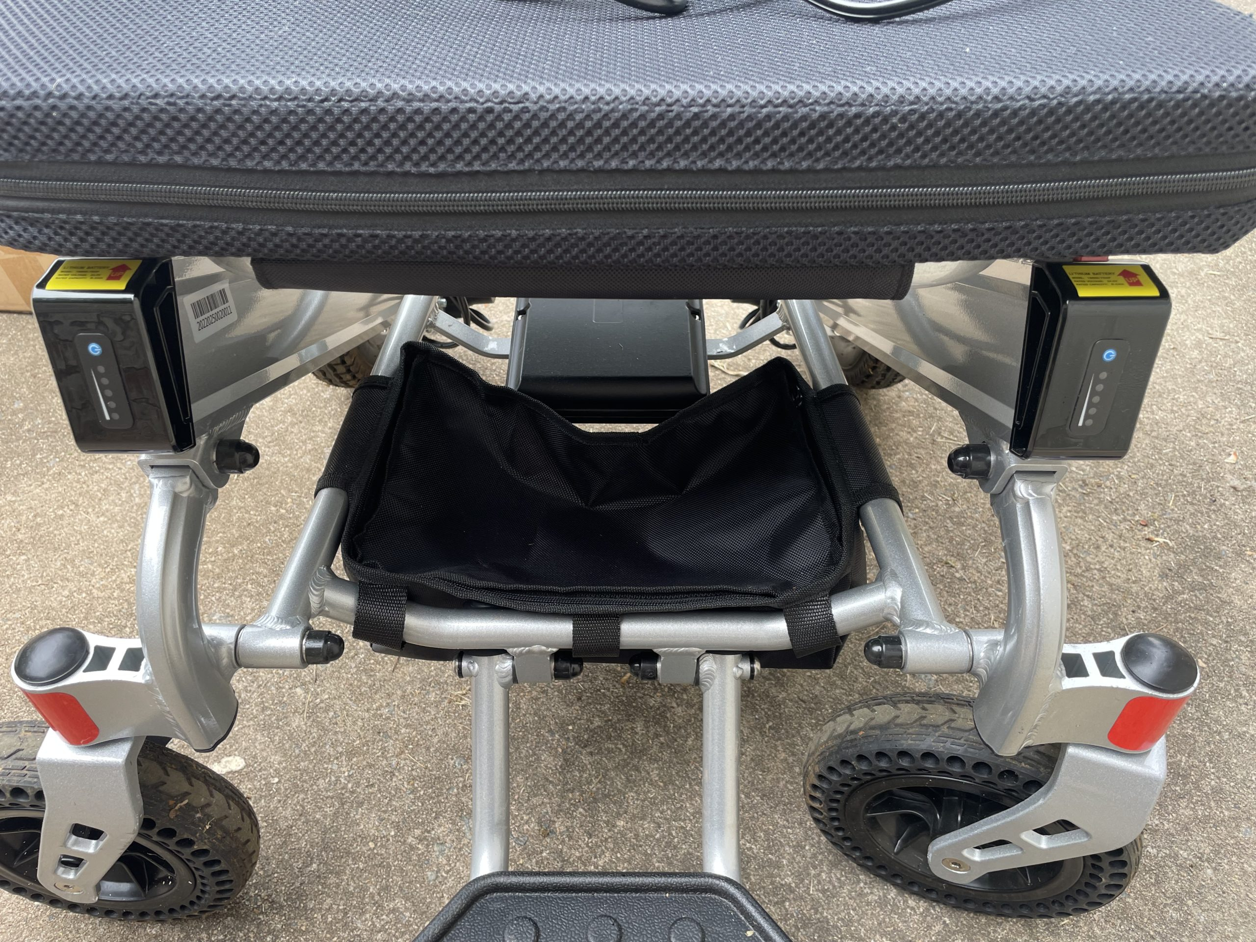 - SIDE BATTERIES: Slide in Dual Side Batteries you can pop out quickly if needed when transporting, makes the chair lighter because 8 lbs matter. Lithium -Ion, Safe, Dry, filled up with the highest quality cells. Provides extra distance up to 20 miles.You could go to Amusement Parks , drive all day long and still have much battery left to use.Of course Airline Approved. Off board charge cord is a bonus allowing you to charge the batteries without the chair.