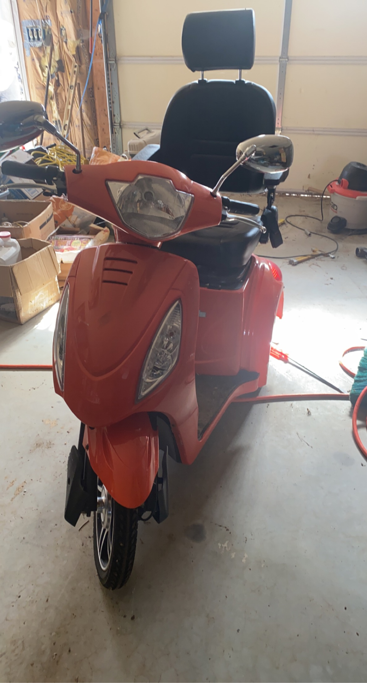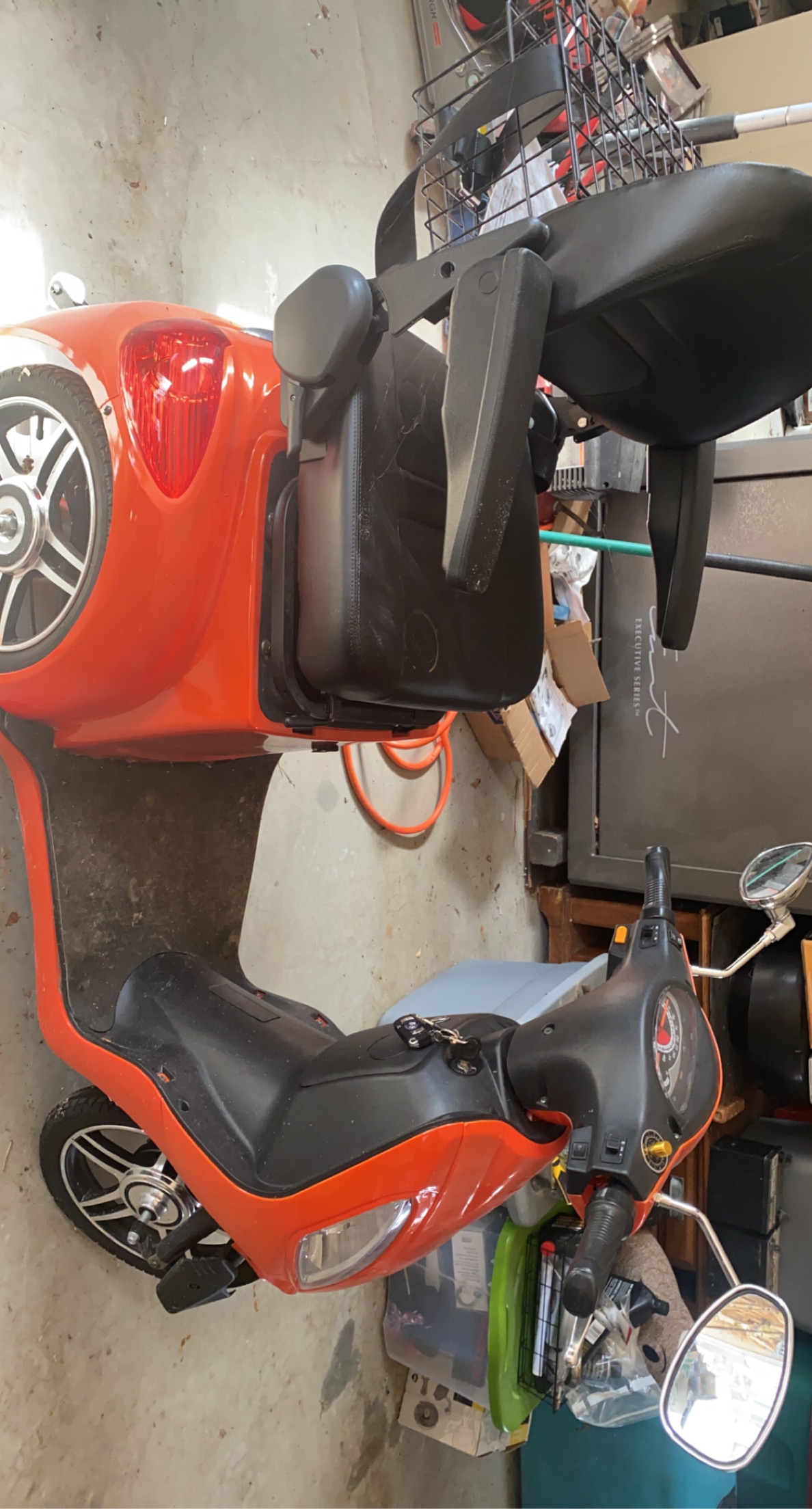This scooter has only been used 5 times for a very short period of time. It is orange in color. Located 30 miles from St Louis, Missouri. It runs great! Range up to 43 miles on a single charge with a top speed of 18 mph. Comfy seat with arm rests. Full suspension keeps the ride nice and smooth. Wire basket on the back for storage of your personal items. This scooter also comes equipped with a reverse switch and a digital anti-theft alarm. Great deal for this scooter! There is a 325 pound weight capacity and it includes a smart charger. There is a locking glove box with locking under seat storage. Come and see this fun scooter! Looks as cool as any scooter on the street but is built with mobility in mind. You would look cool driving to the local coffee shop or grocery market! Super sassy design iOS great for younger people with disabilities.