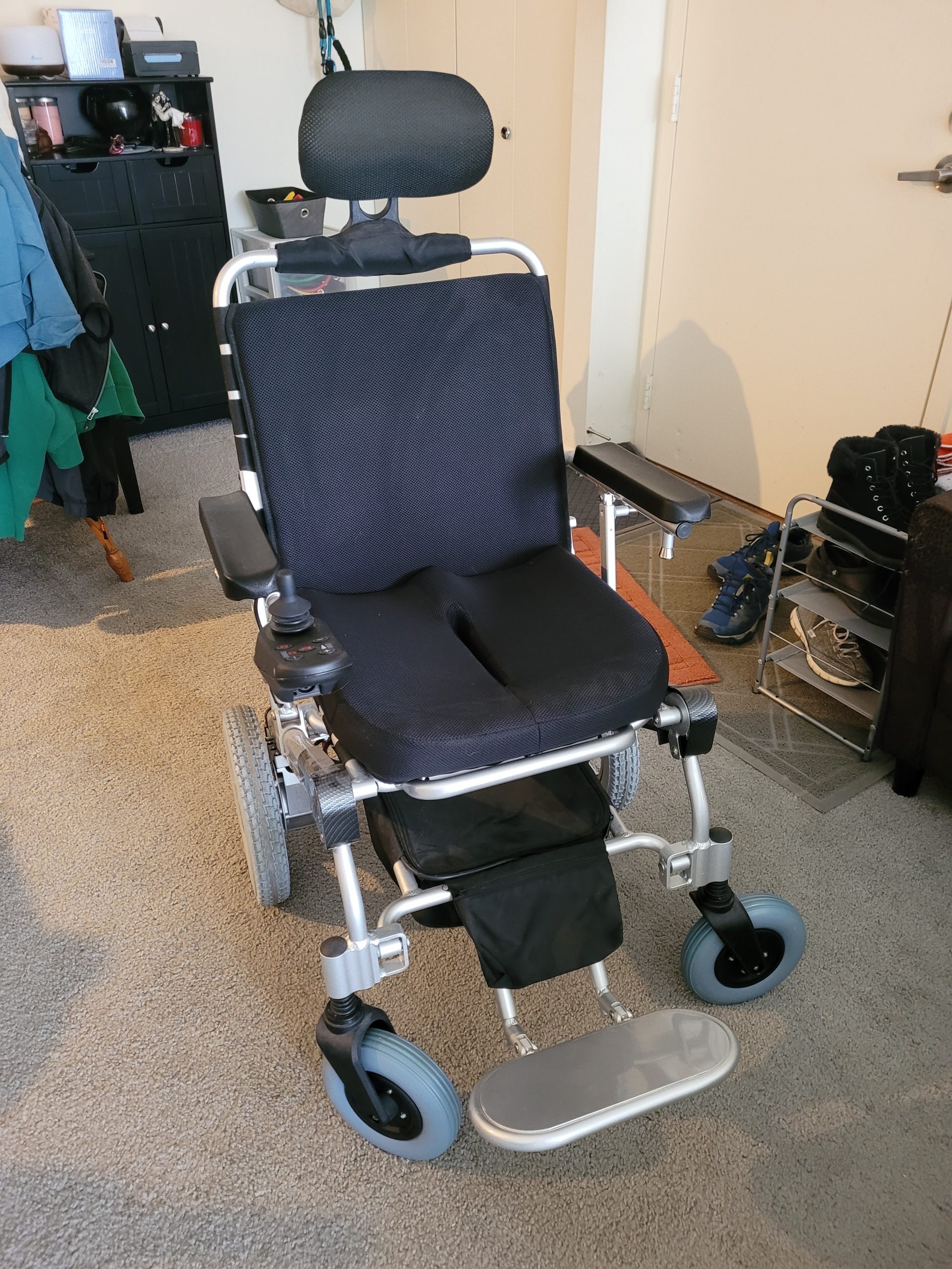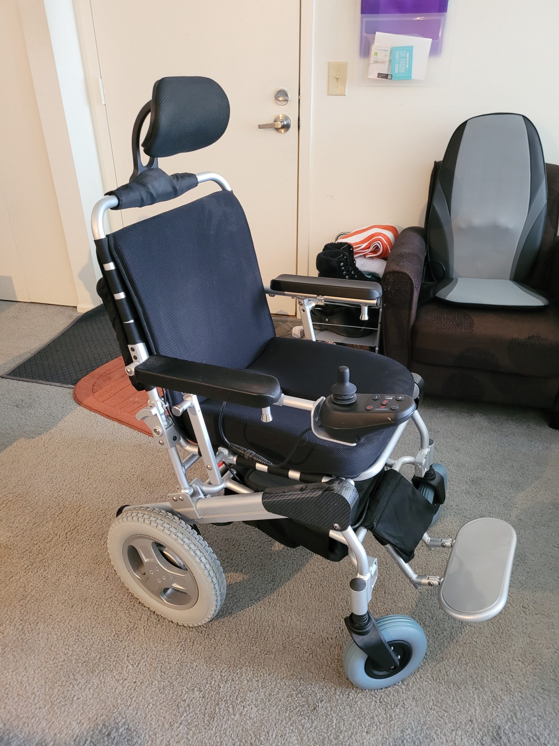 First purchased in late 2021. Used only a few times, like new. Weighs less than 70 pounds and folds easily to fit in most trunks. No need for a special wheelchair vehicle. Can also be taken apart into 3 pieces, frame and 2 motors with wheels, for even easier storage and lighter lifting.