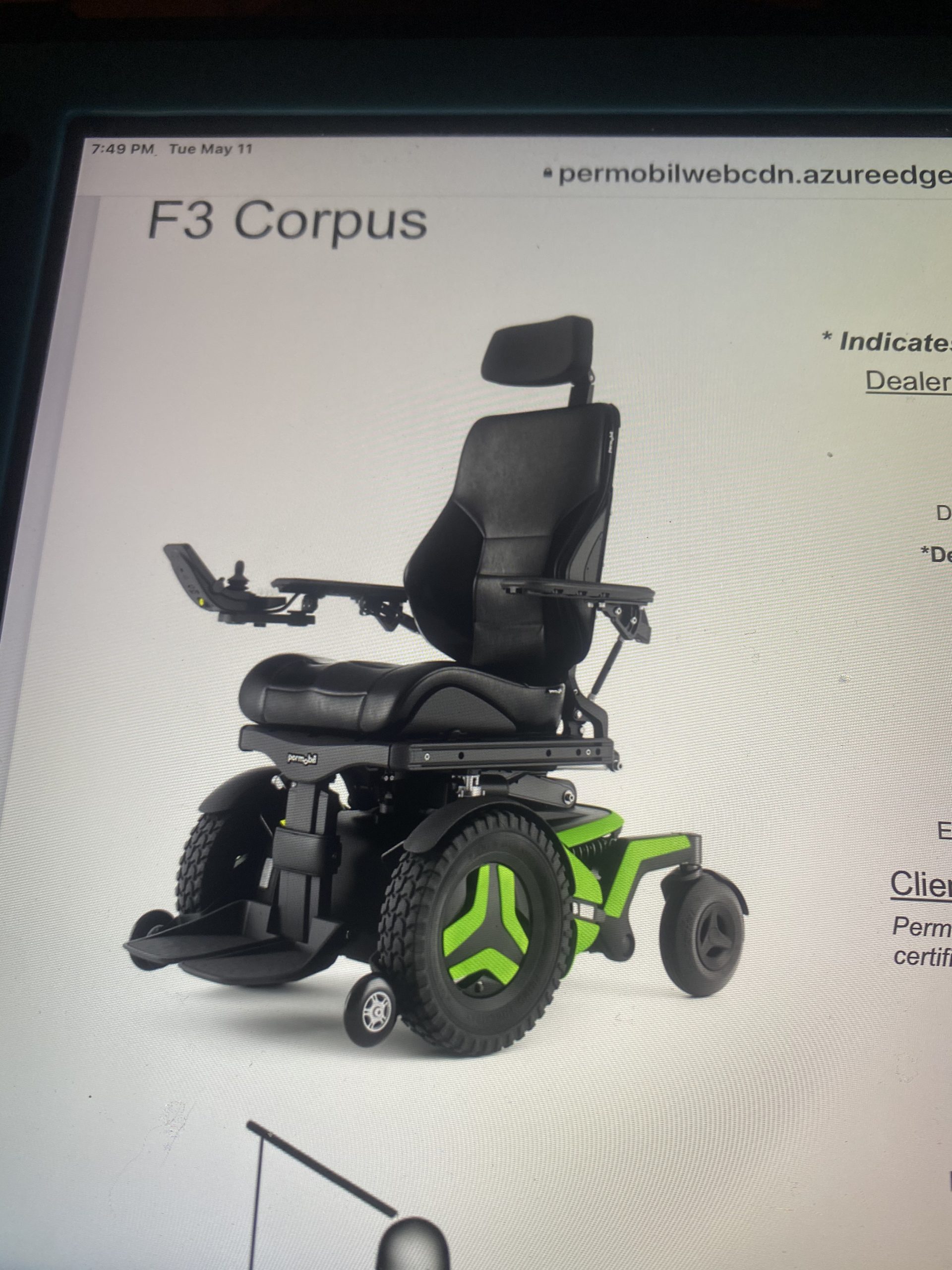 The F3 Corpus has the smallest footprint of the F-series front-wheel drive power wheelchairs. Its compact size and agility allow users to easily maneuver in and out of tight spaces. The optimized battery weight distribution, lower center of mass, and fully adjustable ComfortRide suspension improve stability while traversing inclines or declines. with Permobil’s industry-leading Corpus Seating System offering 12” of ActiveHeight and up to 30º of ActiveReach forward tilt technology.
