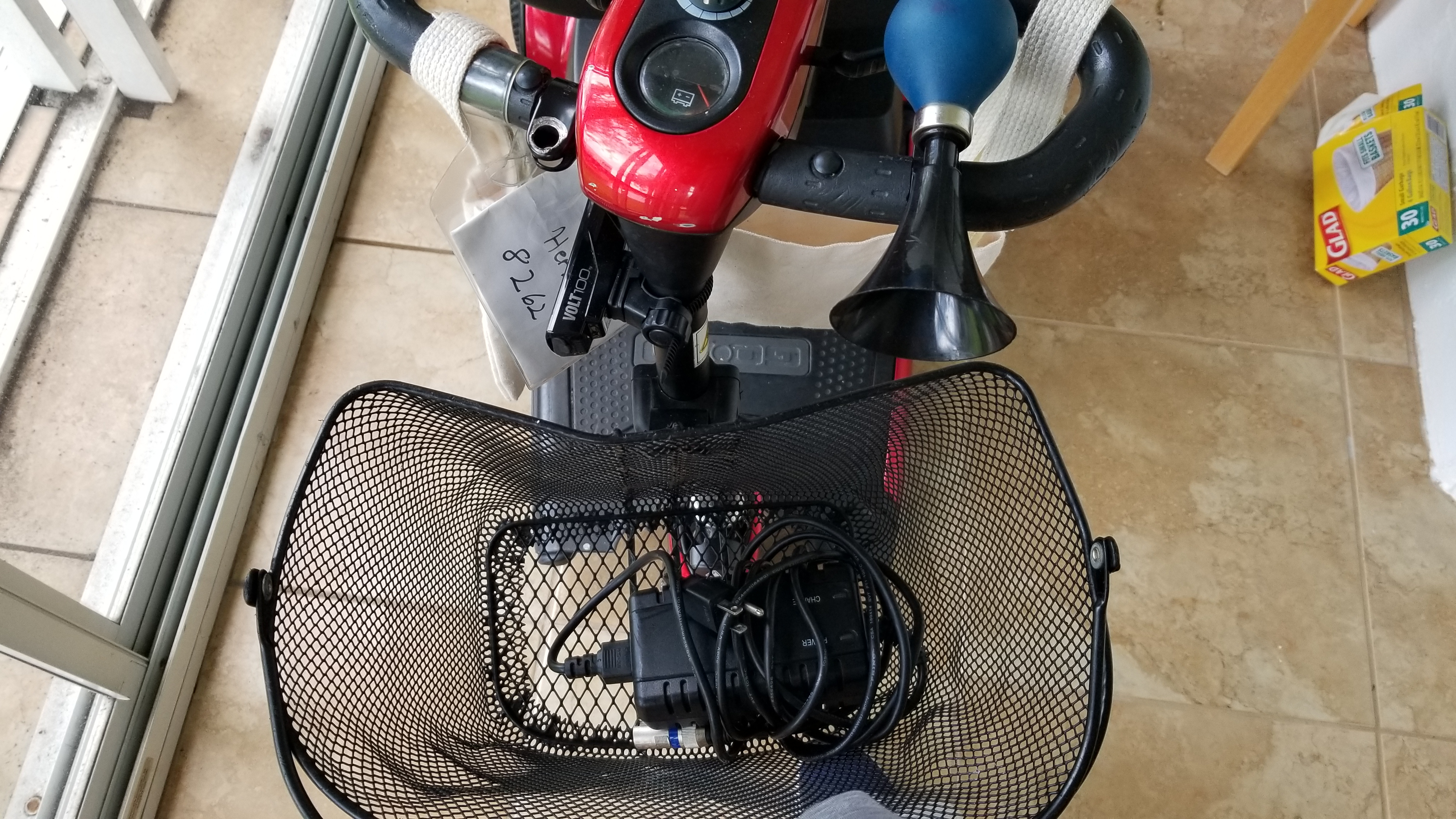 This is a mobility scooter used by my dad who recently moved into an independent living facility and no longer needs this scooter. This scooter has maximum weight capacity of 300 lbs., speed up to 4.5 mph. This is a three wheel scooter and has a turning radius of 34" at wheel and overall length of 40", overall width of 21.125". The battery charger is off-board , 2 amp and has a charge range of up to 13 miles. The go go elite has feather touch disassembly which makes this scooter one of the easiest travel scooters to take along anywhere.