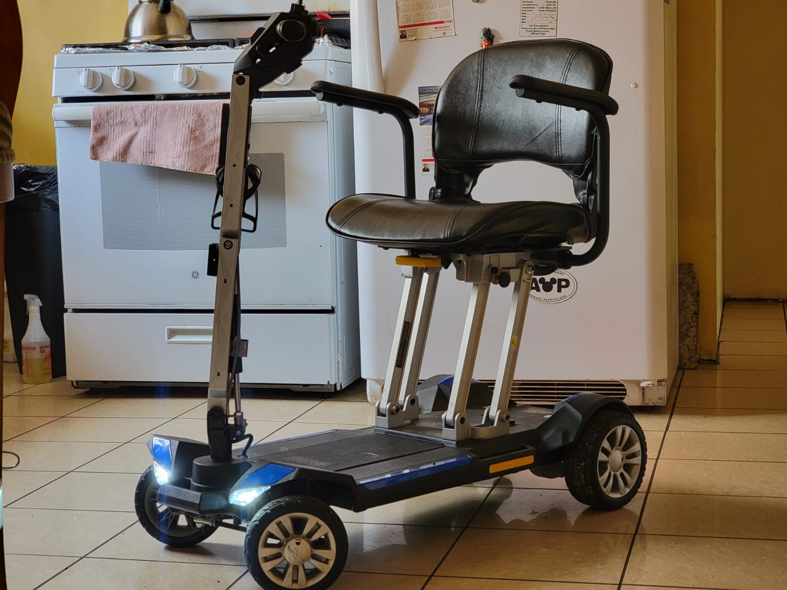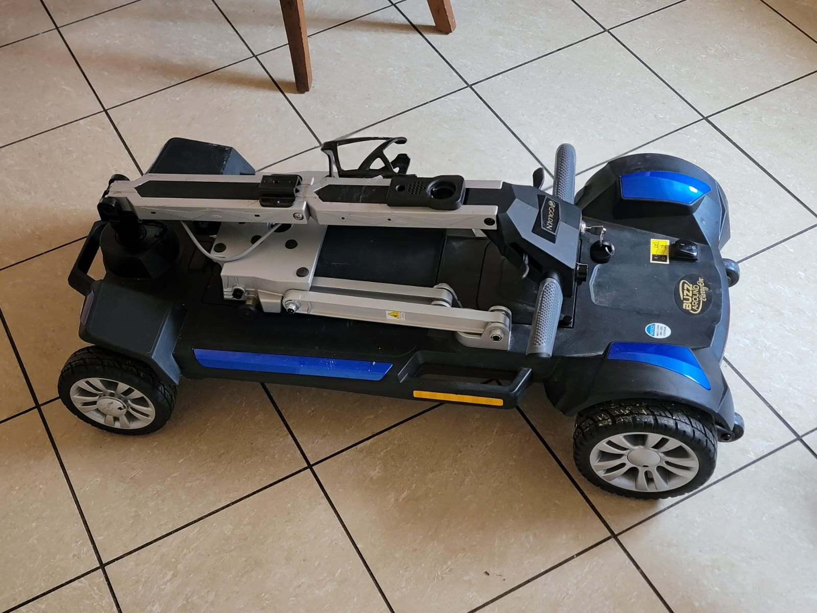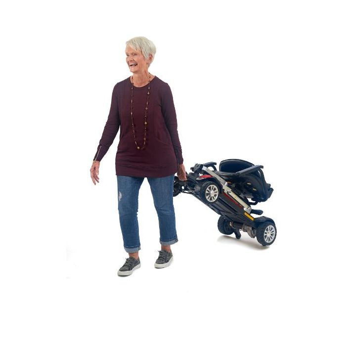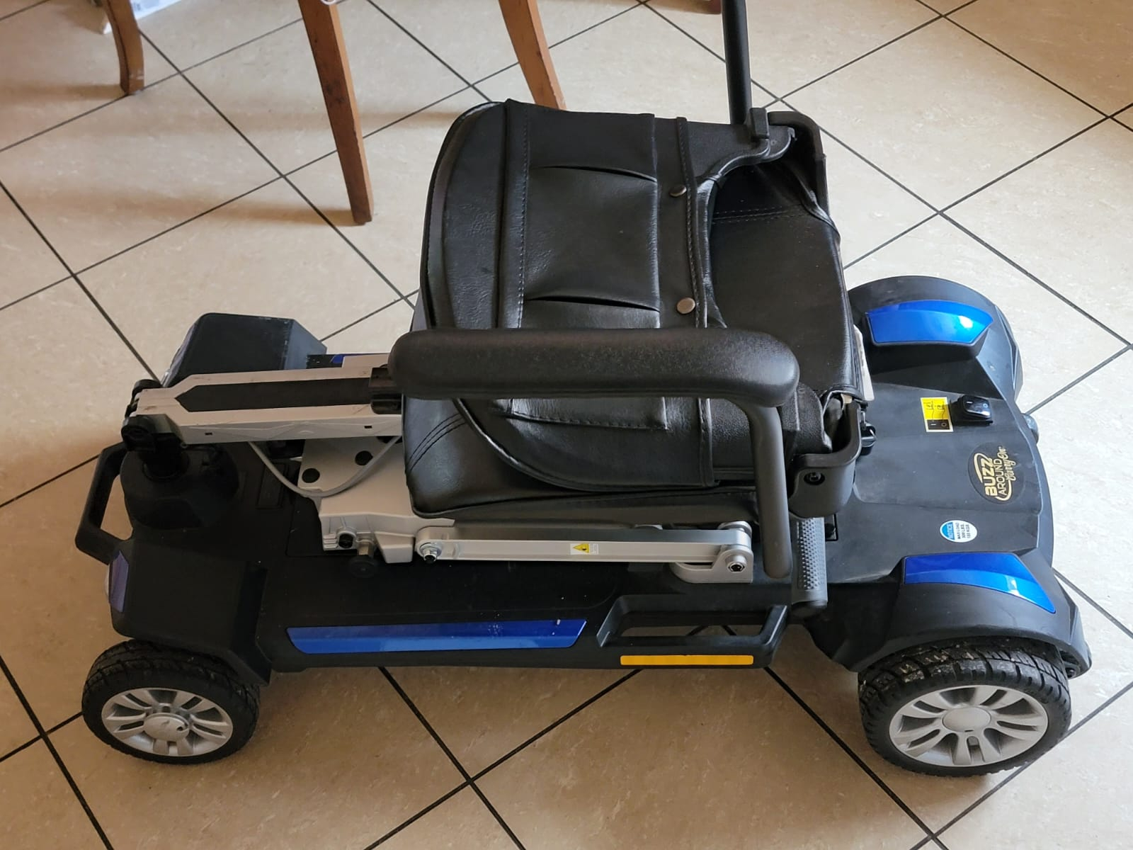 The Buzzaround CarryOn motorized scooter is small in stature and big on fun! This new sporty, super portable scooter will take you where you want to go in comfort and style! It features an infinitely adjustable tiller that can fold flat, heaviest piece is 47.5 lbs. (without seat and batteries) and the height when folded is only 12”. This lightweight, foldable mobility scooter disassembles easily into two pieces and is designed to store in the smallest compartments.