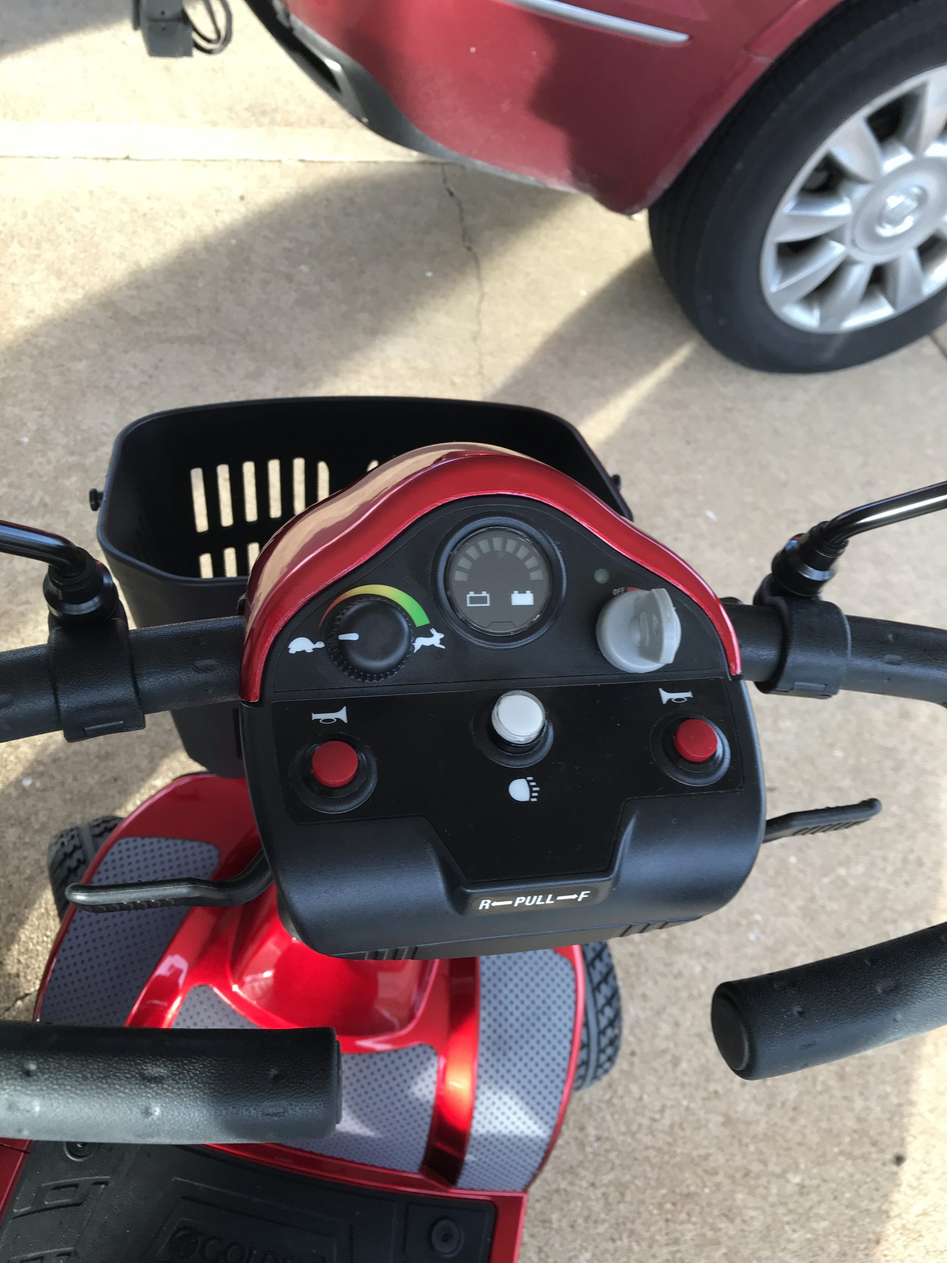 Golden Companion mobility scooter for sale in the south stl area. It has a 350 lb capacity. It is the metallic red body with black seat and other trim. It was originally purchased at provider plus inc. model GC 440 4 wheels. 2 rear are the drive wheels. Max speed 5.3 mph approx 20 miles range. 56.5” turning radius. Does have a neutral or free wheel mode. Does have electronic speed control and electro mechanical brakes. Charging is done off board. Controller is 90 amp. Dimensions are 47.5” long. 23.5 “ wide height to top of seat. 37 inches. Weight of unit assembled is appr 200