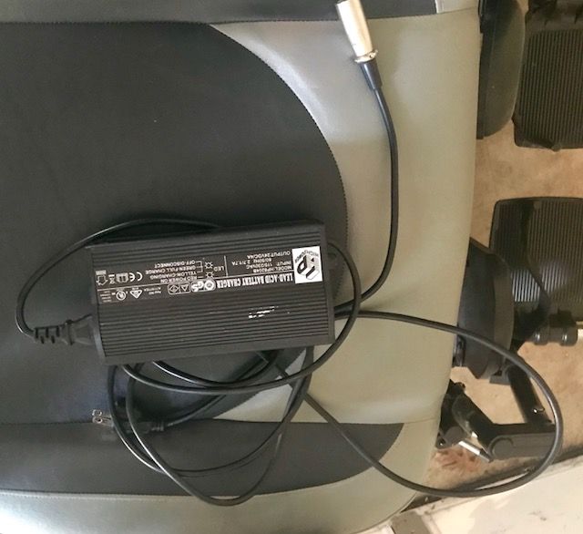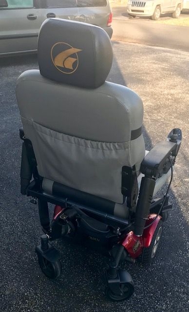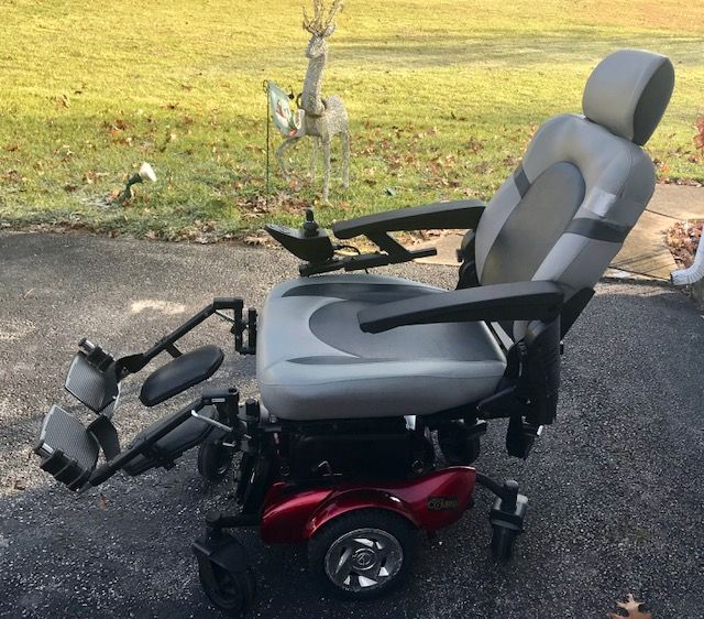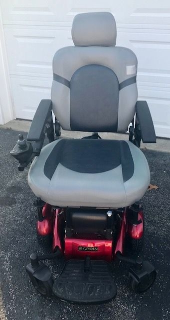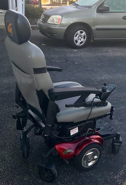 Golden Compass HD Bariatric Power Chair - can hold up to 450 lbs. Purchased new for 4300.00 November 2012. The same model is still being sold new for 4600.00. Excellent condition minus a small rip in the upper back of seat which is covered with Gorilla Tape. Was used for outings. Up to 4 mph. Charge is good for 12 miles. Has fold down foot rest and also regular wheelchair legs that are adjustable that can be attached. Can be switched to manual mode to push if needed or desired. Easily operated with the right-handed joystick. Can be used indoors or outdoors. Back of seat folds down to allow loading into a van via wheelchair lift. No service or mechanical issues. A new battery was installed last year. AC adapter powercord, owners manual and tool bag included. Selling because owner lost a lot of weight and wanted a smaller chair.