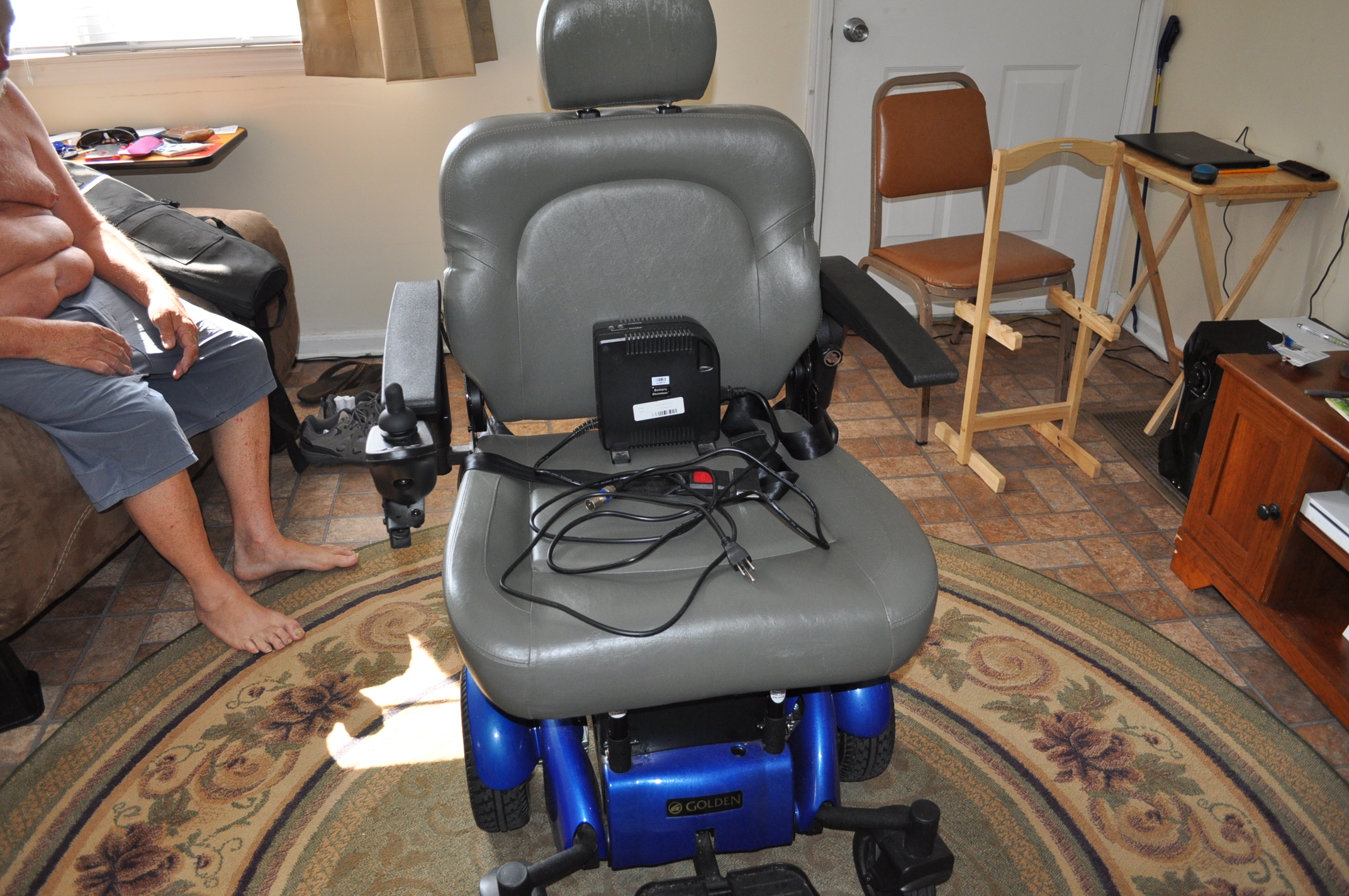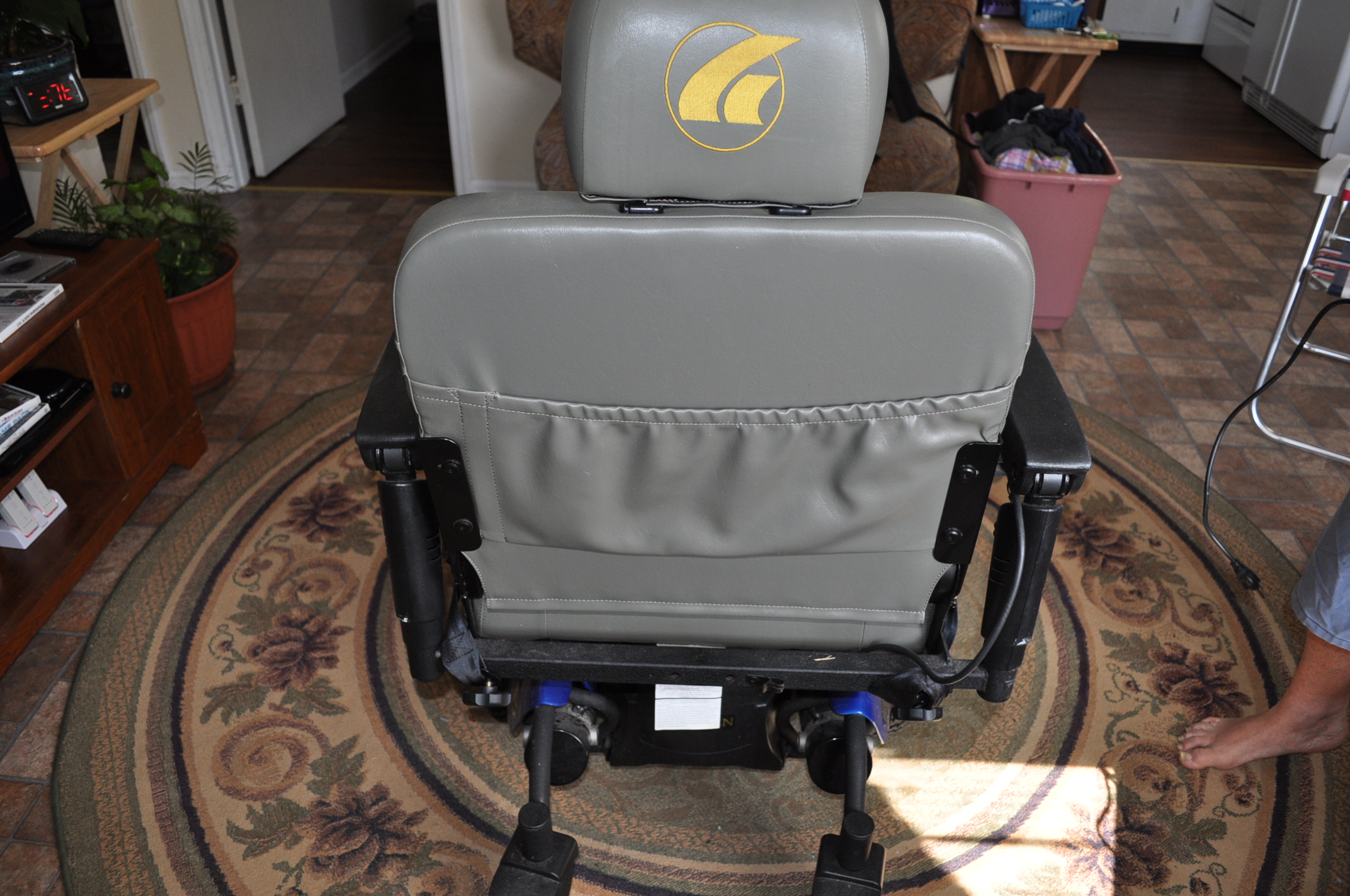 Like new has not been used very much. Recently been serviced with new batteries. Can be seen in person or can send video.Chair has a custom made seat. Has a foot rest that is extended out for more comfort. Has blue metal flake paint. The tires are like new. The joy stick was replaced as part of the recent service. I think the top speed is something like 7 or 8 miles per hour. Has an accessory bag that can be strapped to the back to carry a e-tank of oxygen. The original purchase date is I think April of 2017. But the chair has not been used very much my wife used it manly to go back and forth to the Doctor. The weight of the wheelchair is about 300 pounds it is heavy duty and has the four wheel design. It is very well built and drives very good. It is made to be used inside or outside. The reason that I am trying to sell it is my wife recently passed away