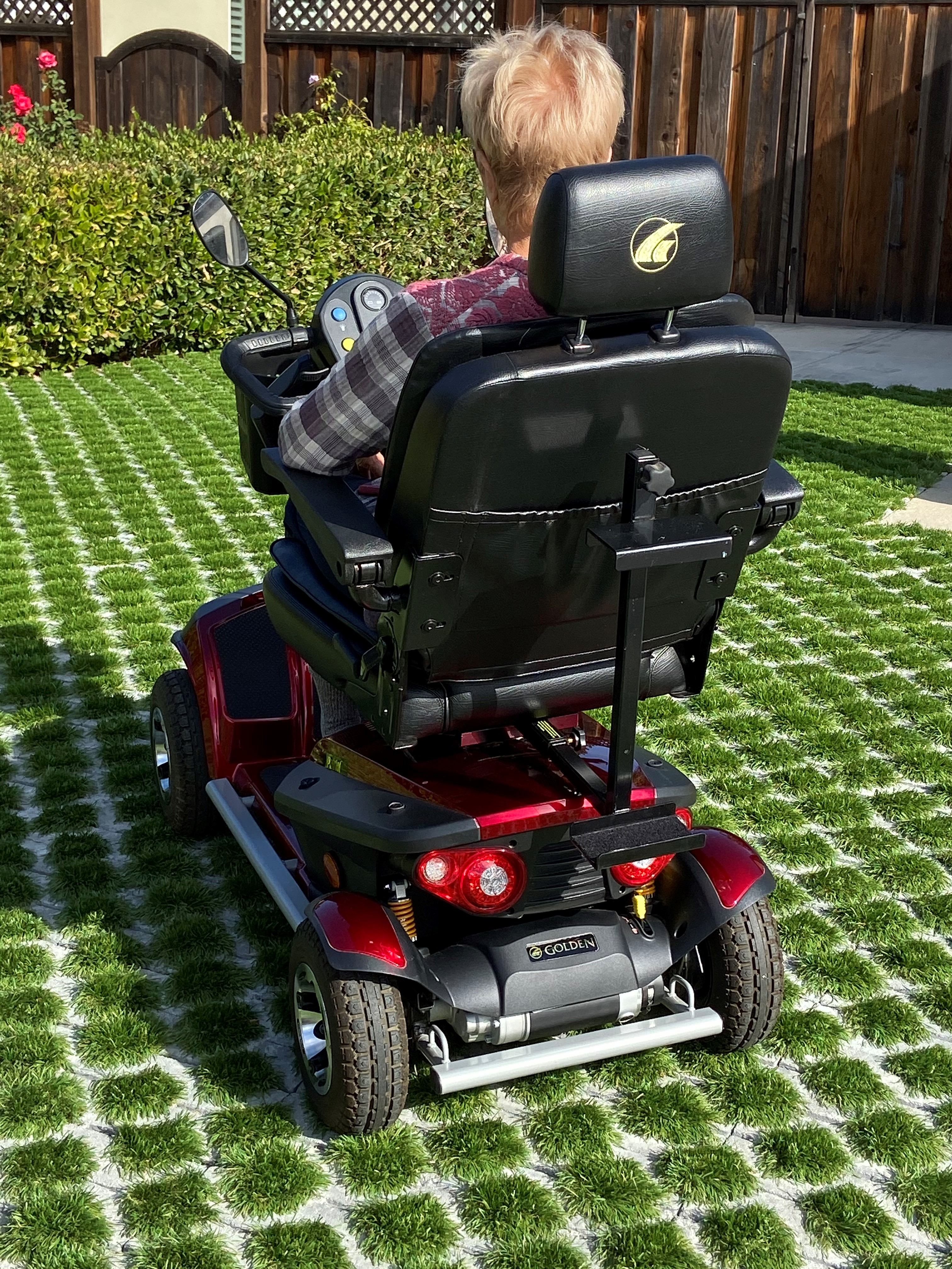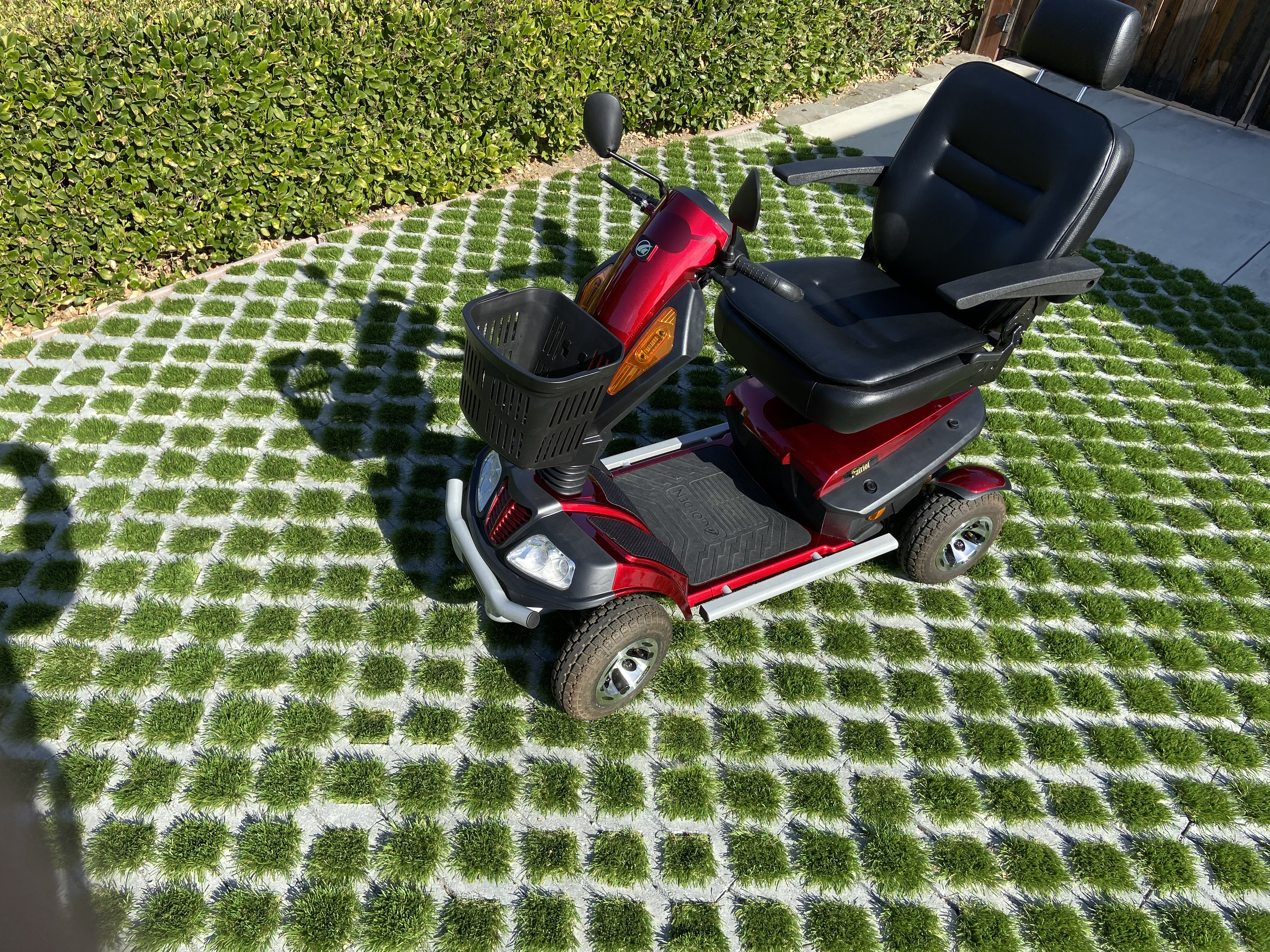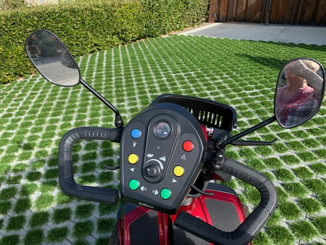 This scooter was purchased by an older man who had a stroke. His right hand was badly affected by the stroke and he didn't feel comfortable driving it. So, it has been kept covered in the garage since then. The battery has held a charge the whole time. We just move it around occasionally from one place to the other in the garage. It is very sturdy and easy to drive. It goes forward and backs up nicely. It is very quiet and smooth out on the road. It can easily go up a sloped driveway in forward or reverse. Because it is easy to maneuver and has a nice turning radius, it can be parked and moved about without any problem.