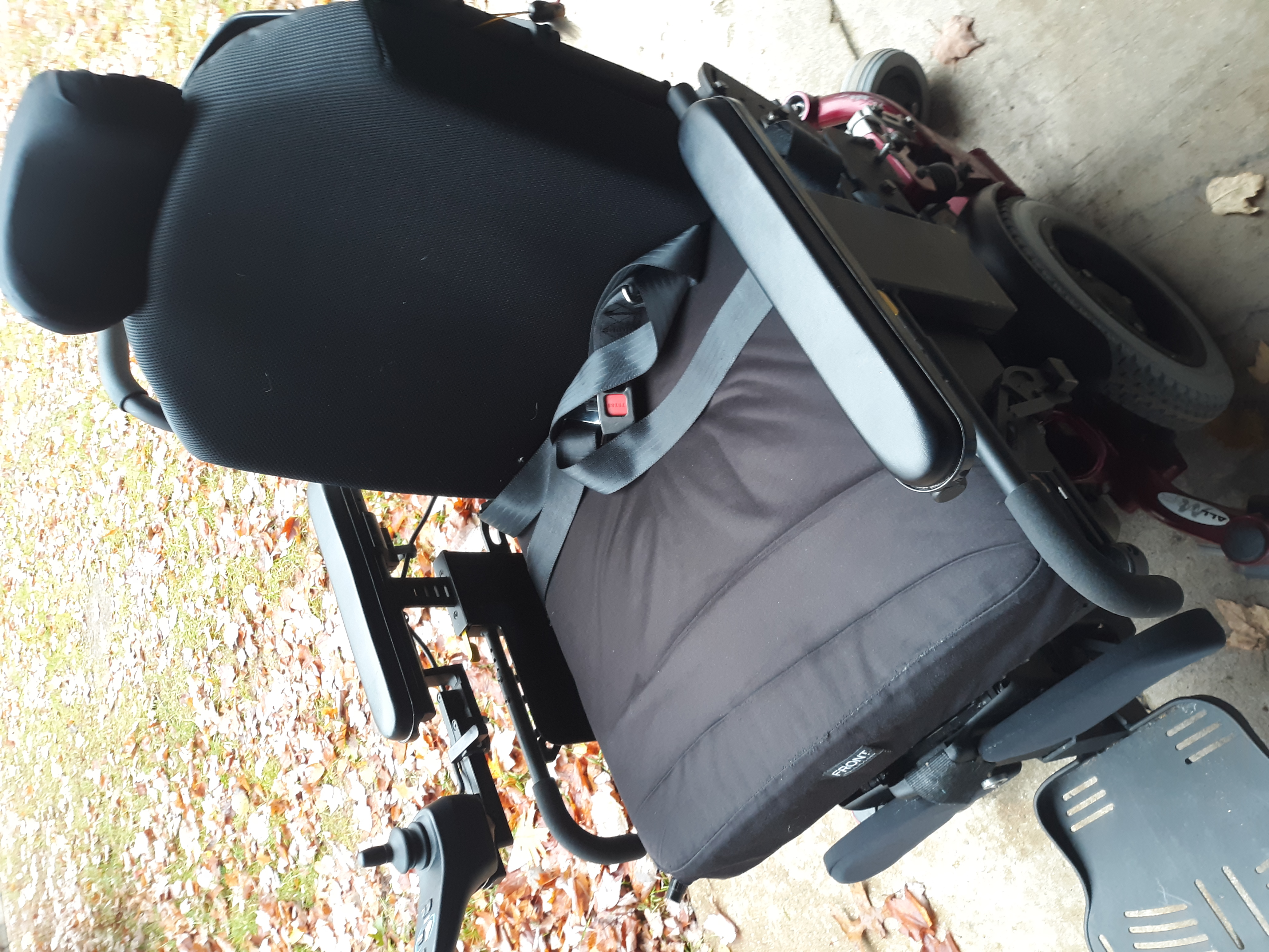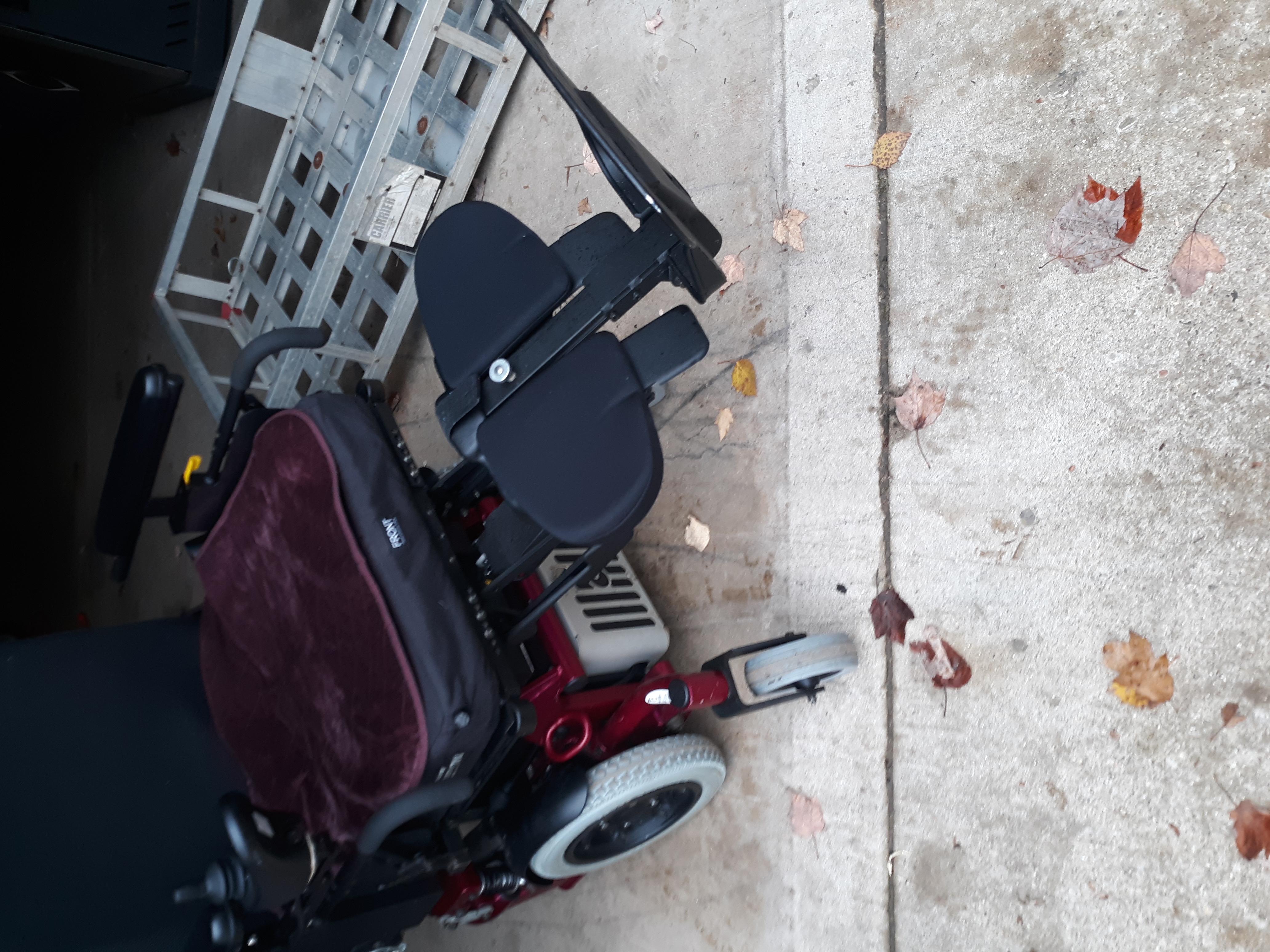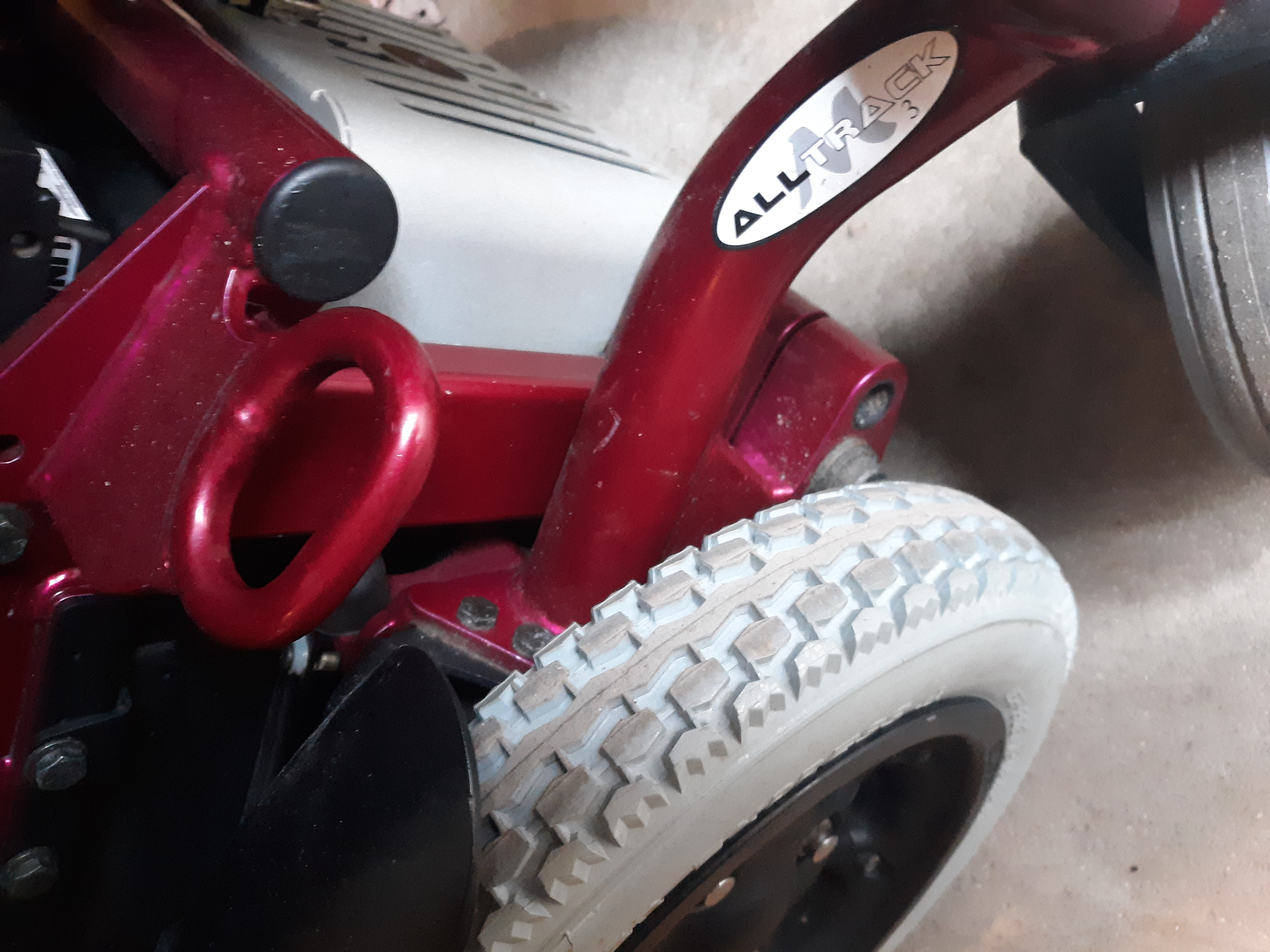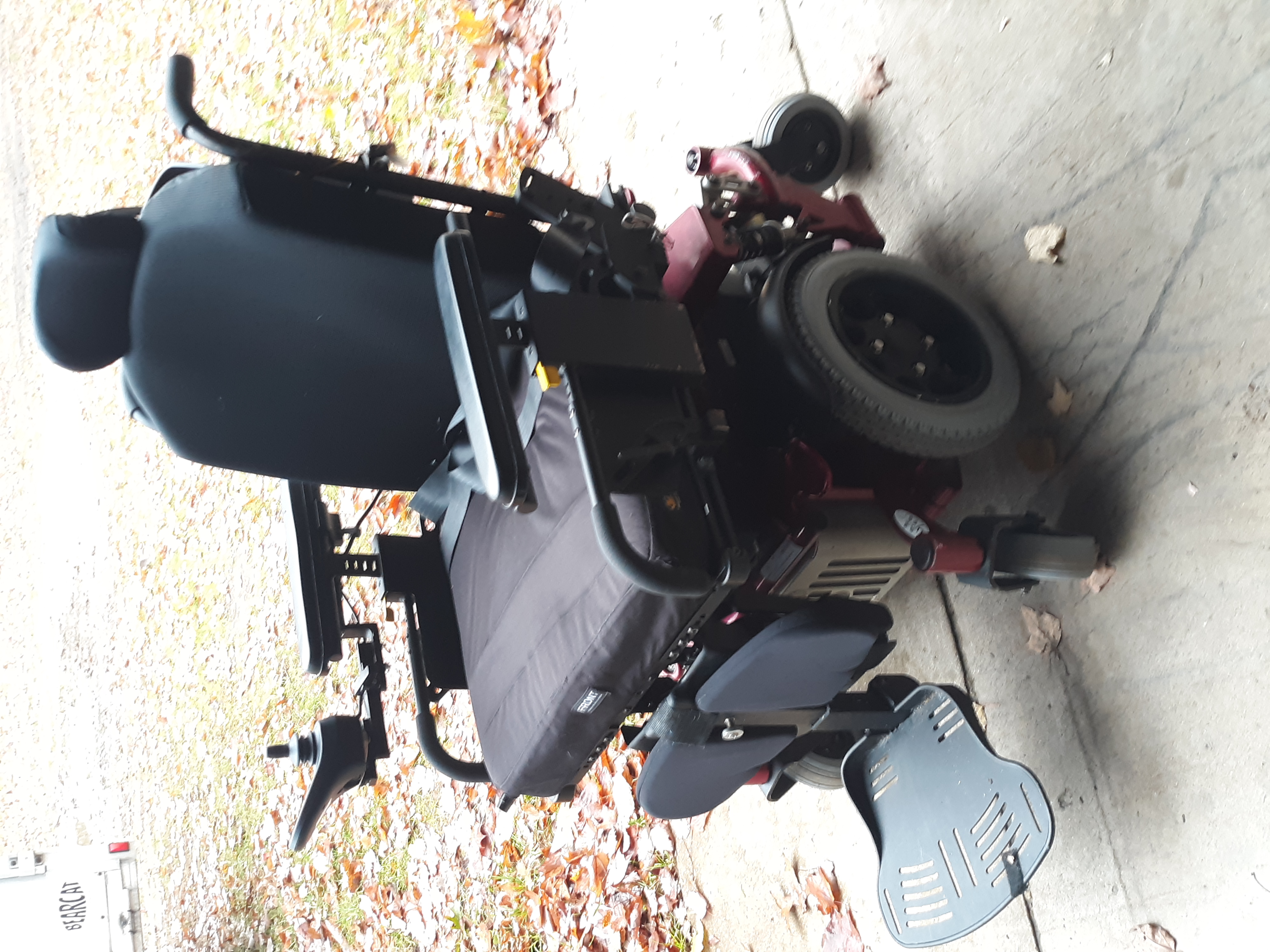 Amy power systems All track M3 heavy duty bariatric wheelchair, candy red, built for indoor/outdoor use. Mid wheel drive power, CG3 dual suspension, 6 wheel independent suspension and seat suspension. Up to 550 lbs. NEW batteries installed, comes with charger. very Good tire condition, excellent maneuverability and turning radius. power elevating leg rest, power elevating and reclining seat. Adjustable swing out joy stick, R-net EL joystick with adjustable speeds, controls leg rest, seat elevation and recline. Adjustable seat, armrest, headrest. High speed German motor. 4 point standard transport brackets, also comes with Verilite evolution adjustable air cushion shown in pics. Chair functions and works great has been very well maintained. I will be offering the transport carrier separate for $75. I will try to answer any questions. I do have PP account. Smoke/pet free home. Pick up Grayling Michigan.