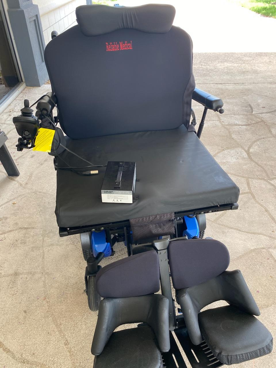 This chair was customized for a patient with 0 mobility. This chair has a 750 pound weight limit and sits up high making transfers easier thsn a standard wheelchair. The wheels are extremely study. Customized motor wheelchair that includes battery. The chair was only used 2 to 3 times because some modifications were needed for the former owner's comfort. Like new!!! Prior owner was bedridden. She was transferred to the chair 2 - 3 times for test rides. 2500 or best offer. The chair has an original value of 8,000. Chair will need to be picked up from rehabilitation facility where it is bring stored in Jersey Village, a suburb of Houston. It definitely requires a truck because it does not break down to move easier. Please feel free to text at any time. I hope we can do business and provide a much needed tool of independence for your love one.