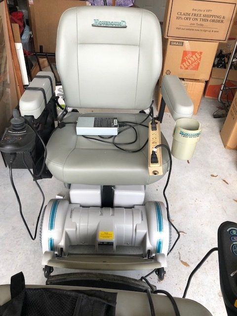 This is a New Hovearound electric wheelchair / scooter and includes a battery charger and bag that hangs on the armrest for storage. We received the wheelchair in the fall of 2019 as was a replacement of our old scooter and then did not need anymore. This wheelchair maneuvers easily and can go inside or outside and turns in a circle. We also have lift used to haul the wheelchair on the back of a vehicle for use in a store, mall, movies, downtown, etc. just drive it on the ramp and electric will lift it off the ground. This is much easier way to haul the wheelchair than taking apart and putting together a scooter. Buyer is responsible to pickup the Hovearound. We will accept cash at time of pickup in Saint Augustine, FL. $1500 price listed is for the Hovearound only. If you also want the vehicle lift, price is negotiable for the lift.