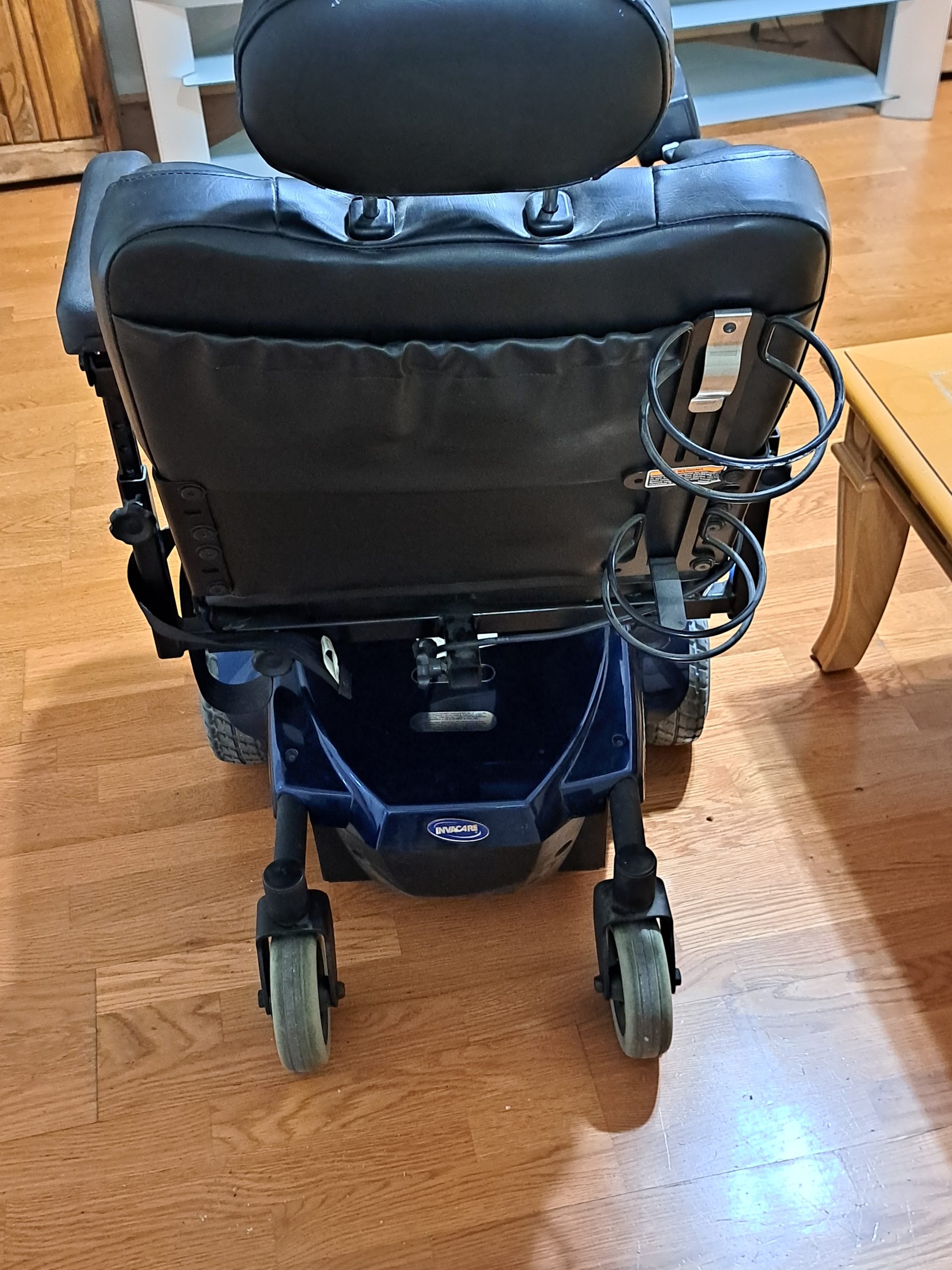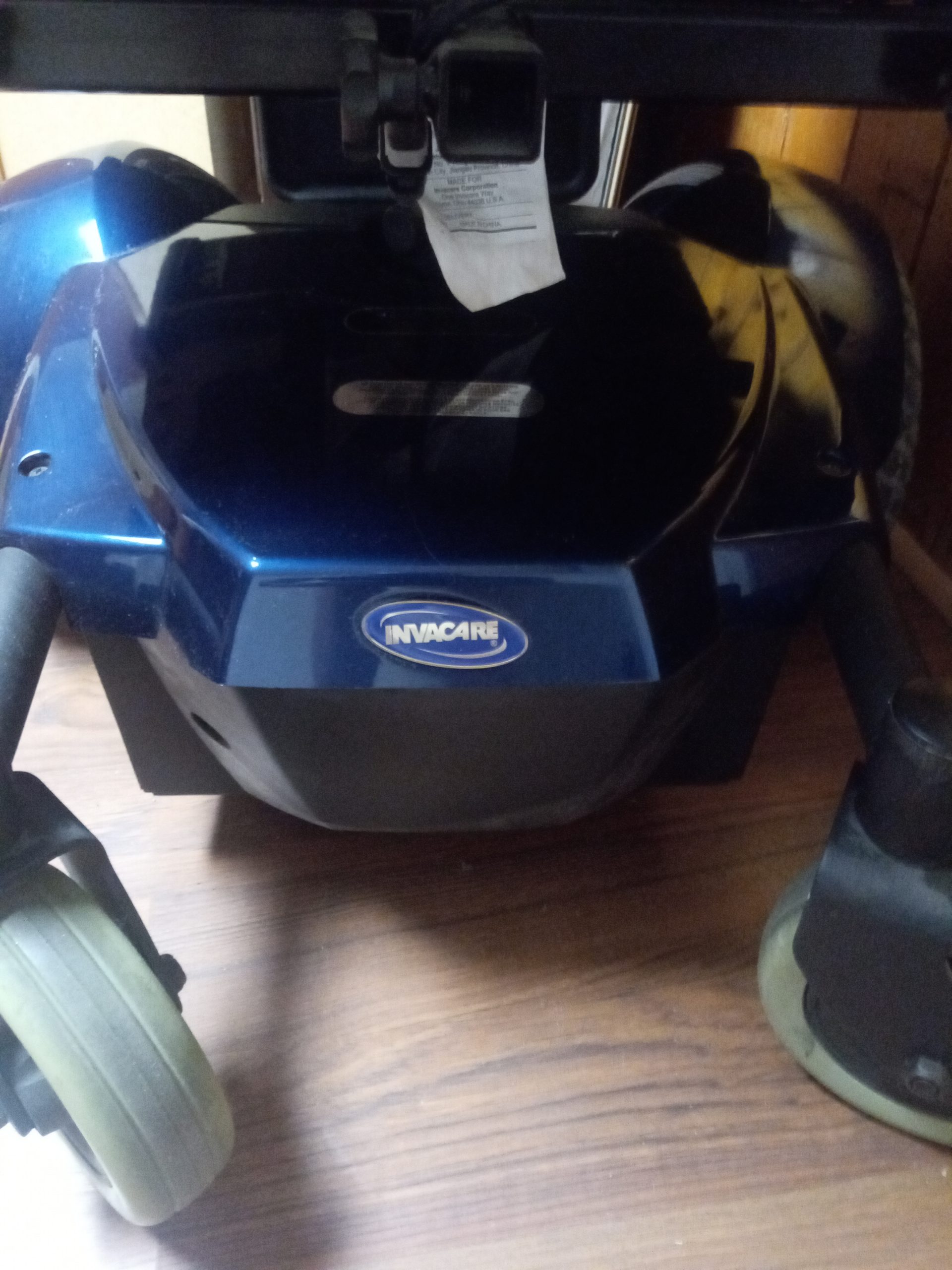 This was purchased for a family member, who passed not long after purchasing the chair. It has been used very little, and has new batteries. it is rated for 300 lbs. There is no damage to the chair at all. It also has the attachment on the back of the chair for an oxygen tank and a pocket for items on the back off the seat.