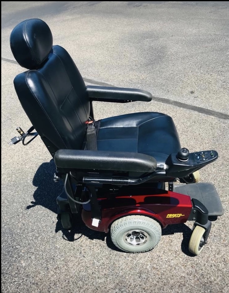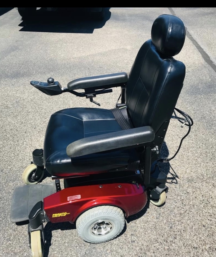 Invacare Pronto M51 Power Wheelchair with SureStep - This Pronto M51 power wheelchair combines a compact size with exceptional maneuverability. It includes SureStep technology to maintain stability while transitioning up and over thresholds up to two inches in height. This chair is made for indoor and outdoor use. Tbe center-wheel drive design keeps 6 wheels on the ground to provide optimum stability. The batteries (a $200 value) were bought new two months ago, and the chair comes with a battery charger. There is a 300 pound limit. This power wheelchair was used only in a nursing home facility setting. It was purchased from the original owner but has not been used because my father’s health has declined. It works great. The chair has a battery range of about 12 miles on a single charge. The owner’s manual is available to the buyer. Shipping is not included in the price of the chair. The chair is located near Memphis, Tennessee.