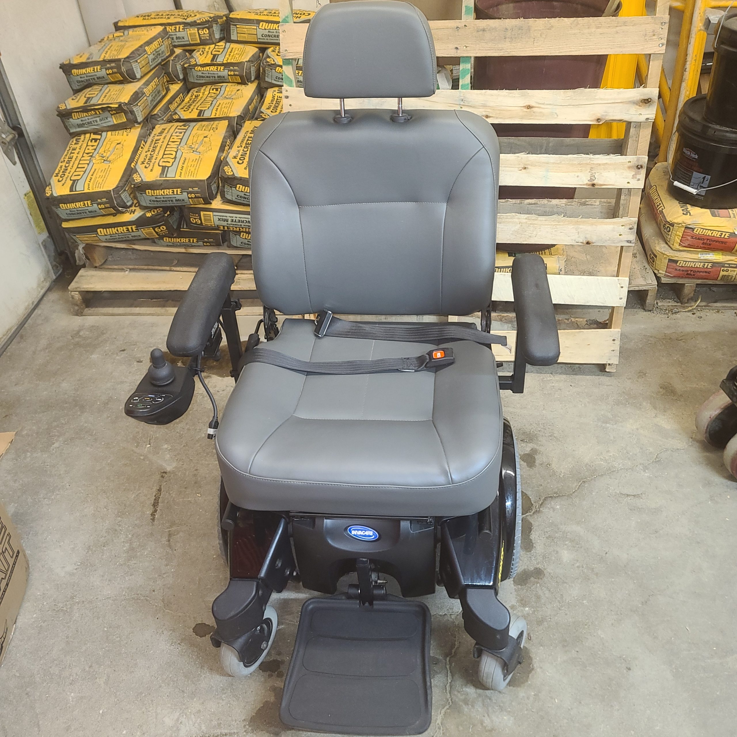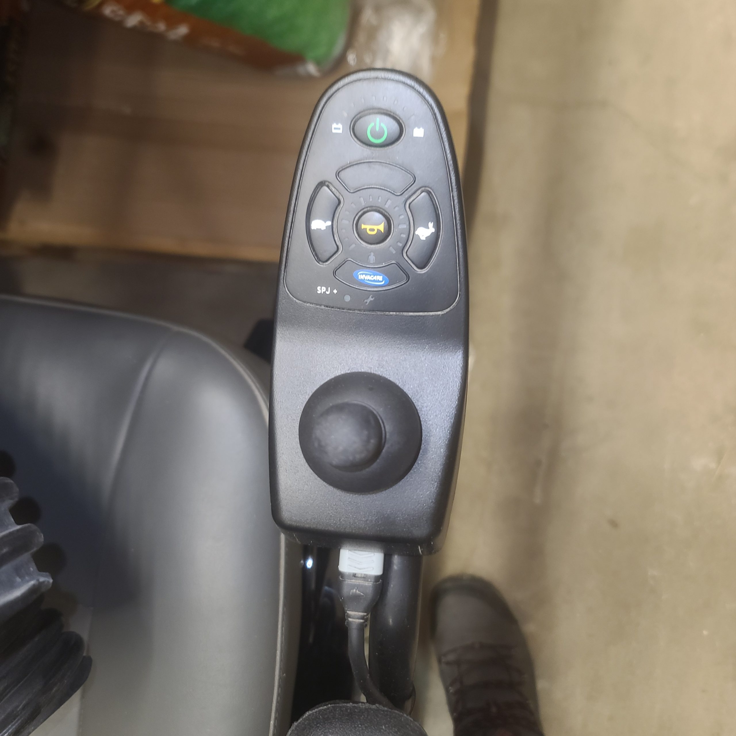 This wheel chair is like new and has only been used 3 times. I do not have lift for my vehicle that has limited my use for this wheel chair. Wheel chair has 300lbs weight limit. The wheel chair is fully adjustable, the head rest adjusts, back tilts, arm rests tilt and raise. It has a single large adjustable foot plate and a seat belt. Speed is adjustable by push buttons (speed range is adjustable by computer, currently set up for fastest range). Steering is controlled by a joy stick. Control pad does have a horn button.