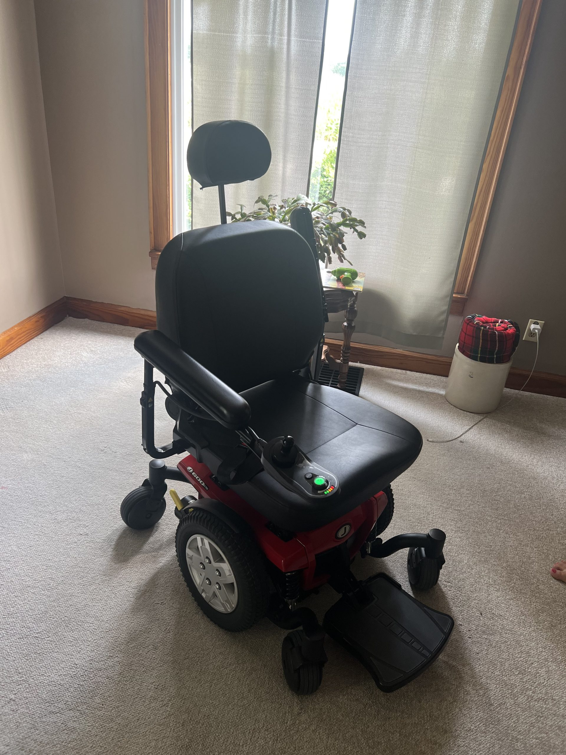 Bought this wheelchair in August of 2022 for my grandfather. It has been used about 3-4 times for about 10 minutes each time! It looks and runs perfectly! This is a Jazzy 600 ES with a large seat and has a weight capacity of 300 pounds. It’s a beautiful red color. Has no scratches or marks on it! It had a battery charging pack. My grandfather is just not able to use it and now wants a scooter instead. If your looking for a like new electric wheelchair this one is for you! Here are the details: