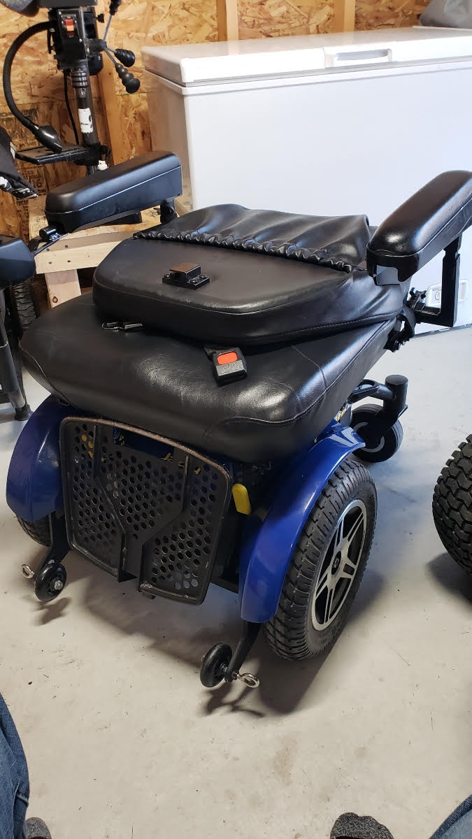 JAZZY ELITE HD - Is in EXCELLENT condition, and has two brand new batteries that were purchased in March 2021. A new battery charger is also included. The JAZZY ELITE HD is Blue with a black seat and headrest. The wheelchair has 4 tie-down anchor brackets to attach to a lift, a boom lift, or to a vehicle floor. The ZEUS 260 comes with a trapeze style frame and strap mechanism with secure adjustable attachments to lift the chair.
