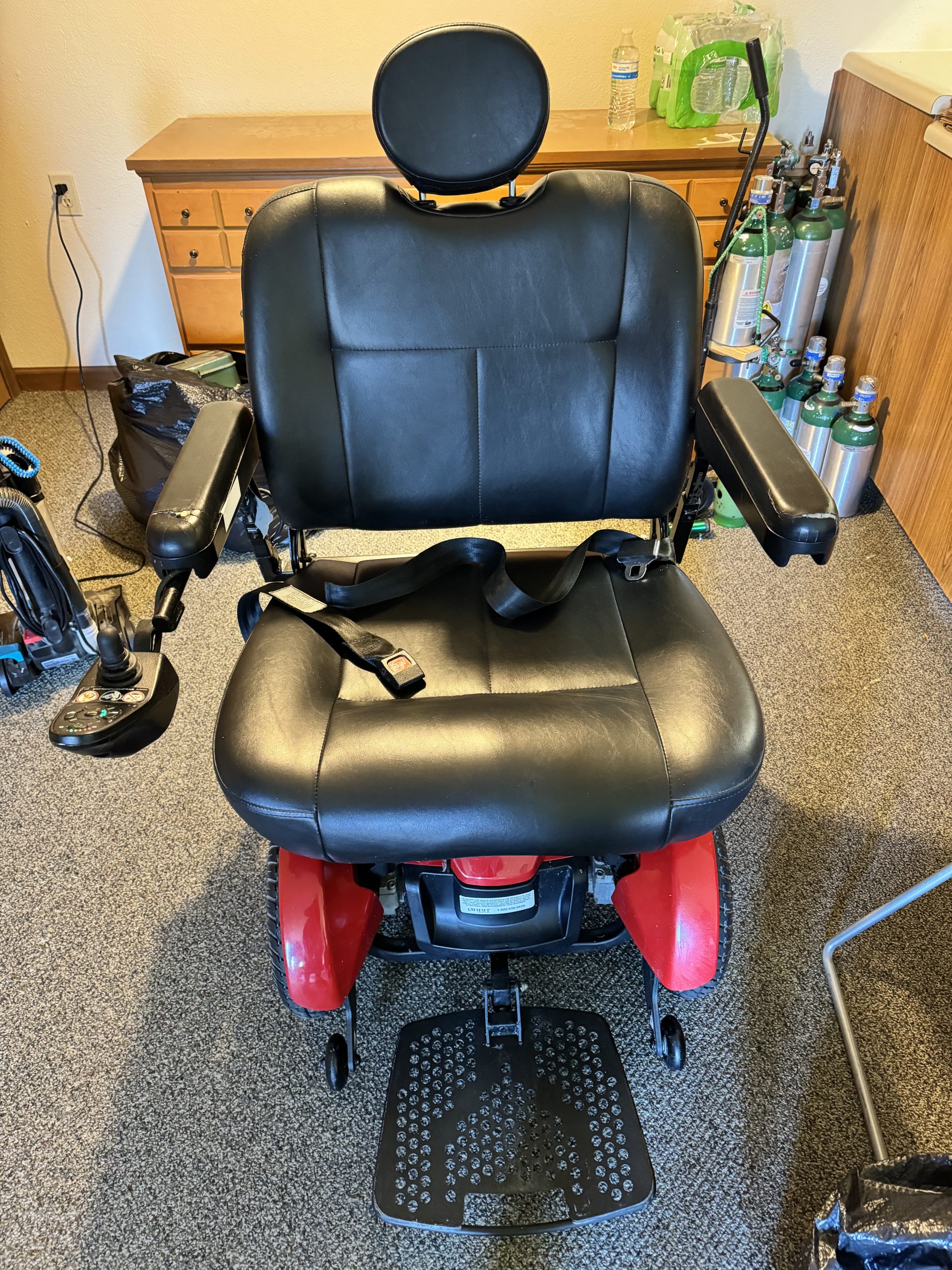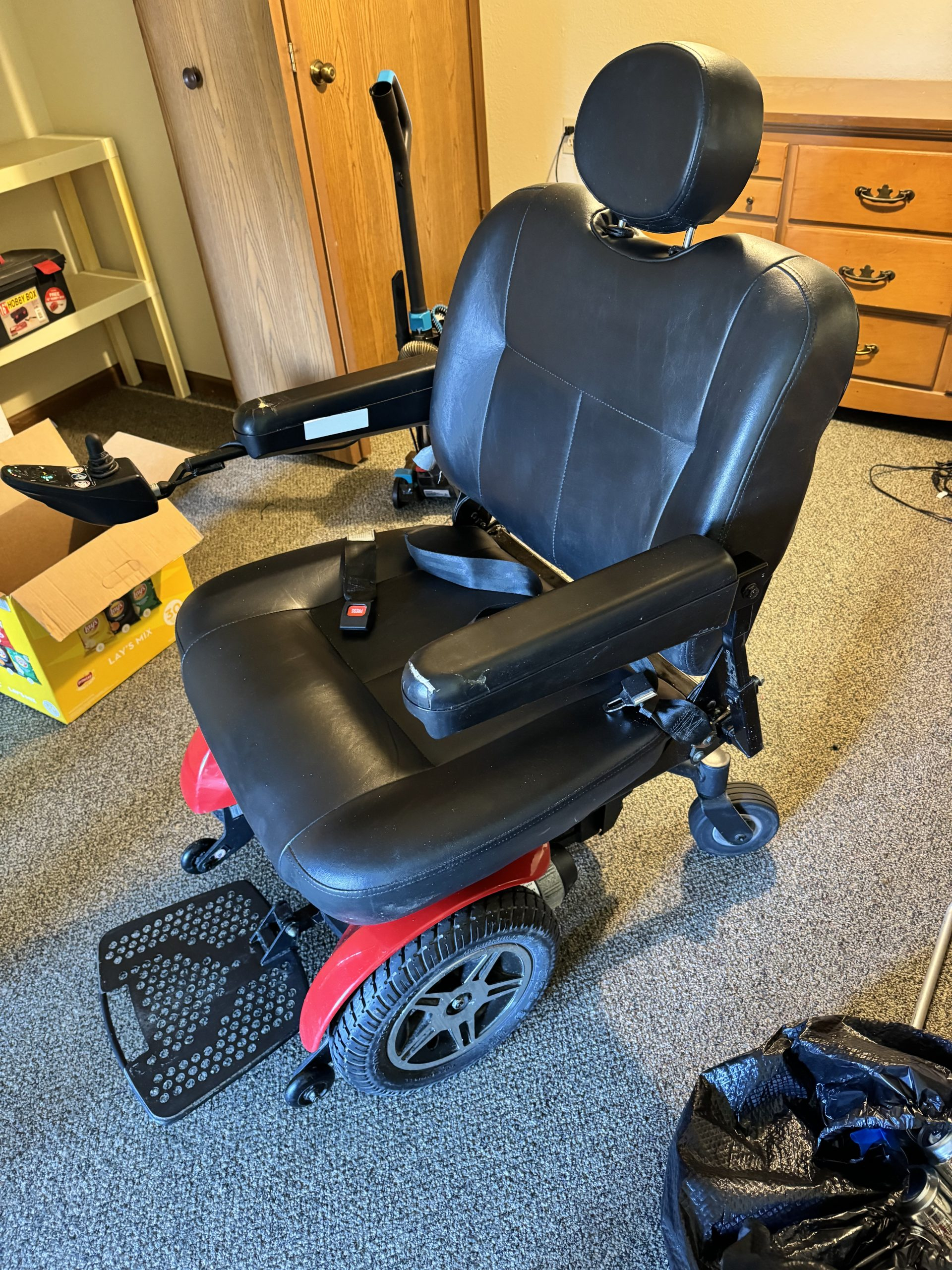 Used electric mobility scooter. Jazzy Elite HD (higher weight limit than the regular elite - 450 lbs). There are a few rips in the fabric of the arms but the seat part is in good condition. Comes with the charger. Holds a charge for a long time. Does well over different types of terrain outside. Speed can be adjusted for slower or faster cruising (top speed 4 mph). My uncle had this as a big man who was not able to walk due to his size and hip pain and this helped him to be mobile and able to do things and get around. The seat is comfortable. The turning radius is pretty impressive and is able to navigate tight corners. Located in the Battle Creek, Michigan area.