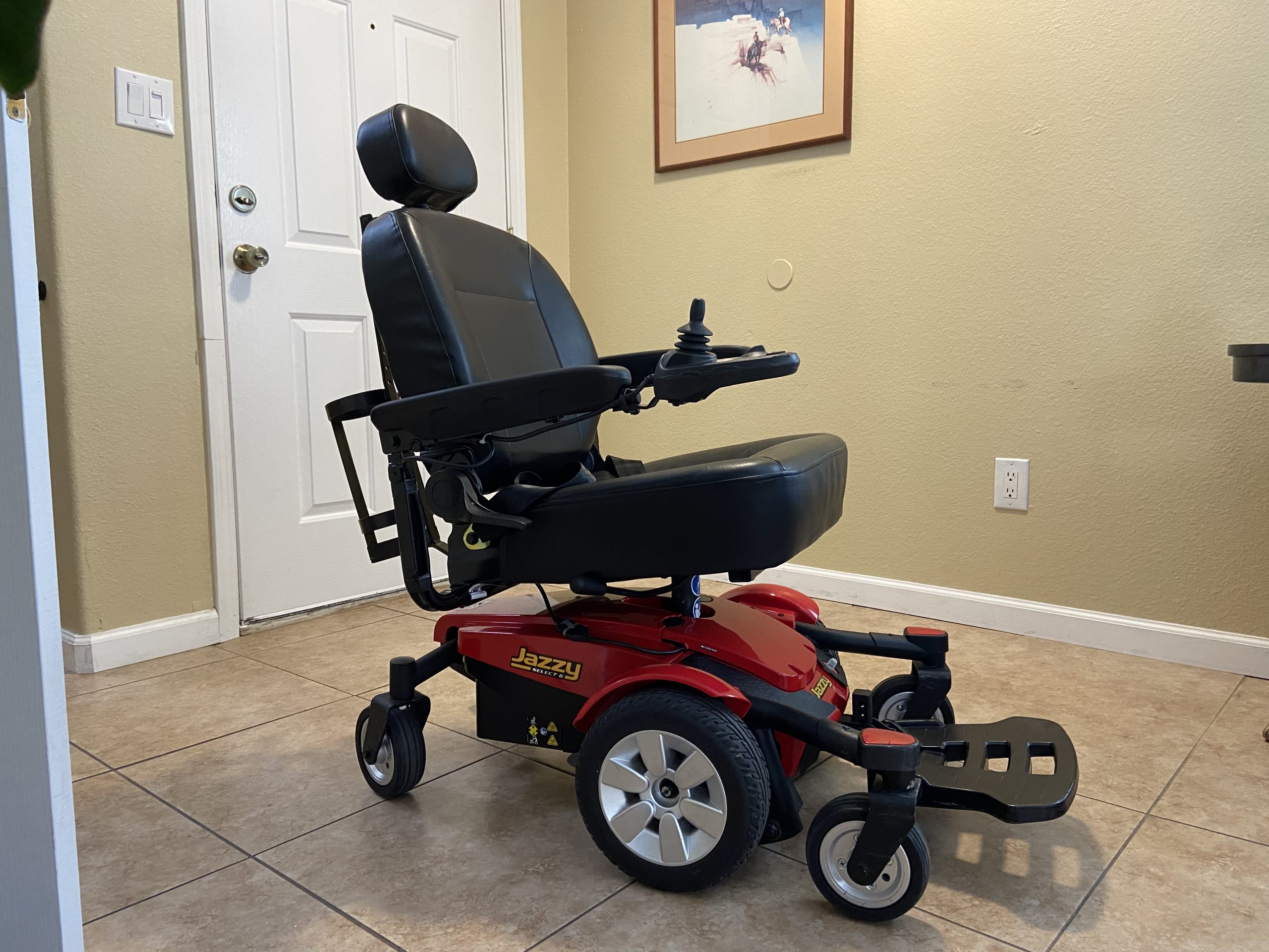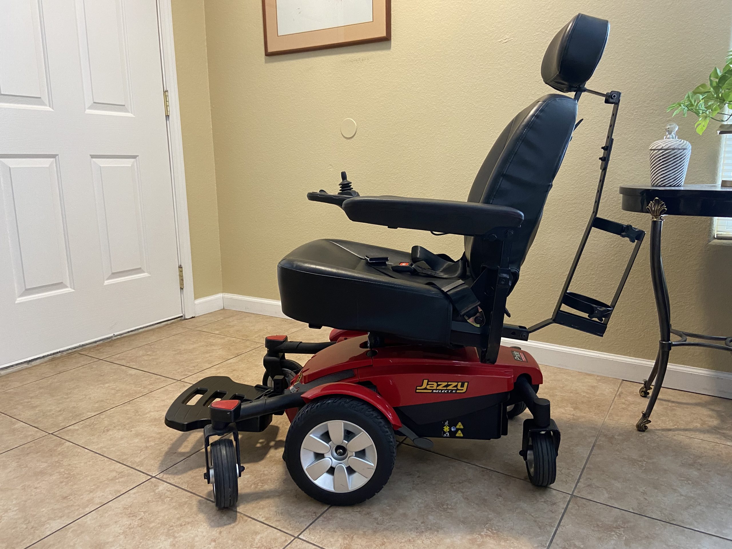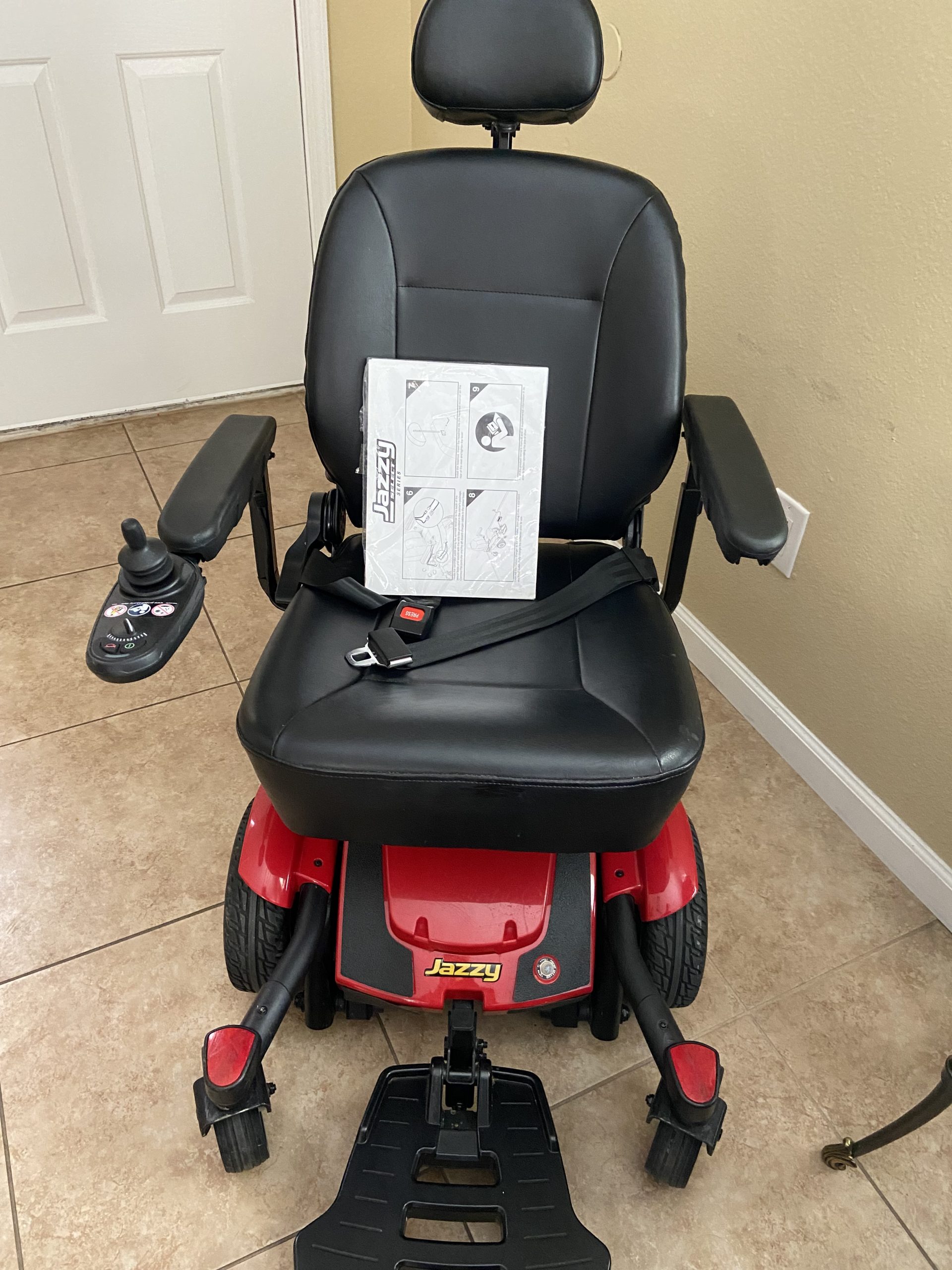 - Practically Like NEW! This 2016 model, sporty design JAZZY SELECT 6 Electric Wheelchair is comfortable and dependable!!! Hardly ever been used and stored indoors the entire time. With In-Line Joystick Controller to get you around easy!! Foot Plat Form is both a Flip-Up and Height Adjustable Platform!! Also, has Anti-Flip Wheel Assemblies and Oxygen Tank Frame which is conveniently mounted behind the seat!! These are both optional accessories that are included!!! Comes with the Batteries, Battery Charger and Owner’s Manual!!! We purchased the Jazzy Select 6 Electric Wheelchair for $3,500 brand new before taxes!!!! A Wonderful Wheelchair that allows you to pull up close to tables, counters and other work surfaces to accomplish daily activities and live Independently!!! I am selling it for $1,150 or Best Offer!!!! Absolutely Amazing Electric Wheelchair!!! A Must Have!!!! Upholstery in Excellent Condition!!!! Very Nice Black Leather!!! Convenient Pocket behind the seat!!!! Looking Forward to Hearing From You!!! Please contact us Now to Purchase the best Electric Wheelchair Available!!