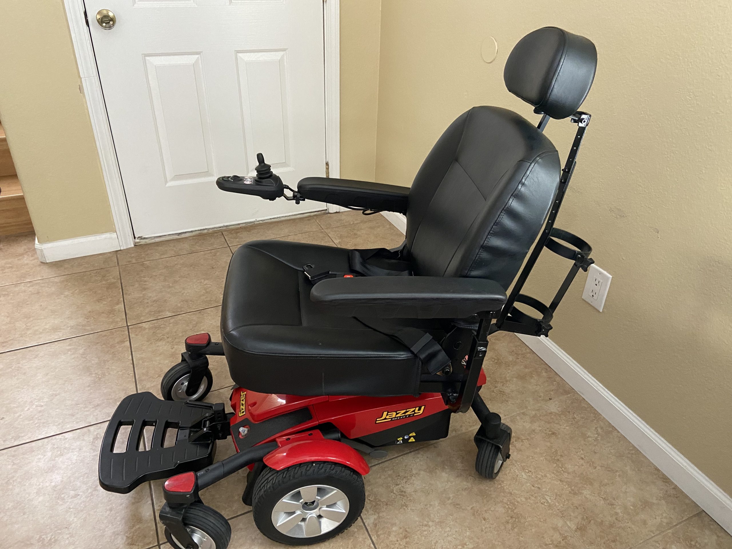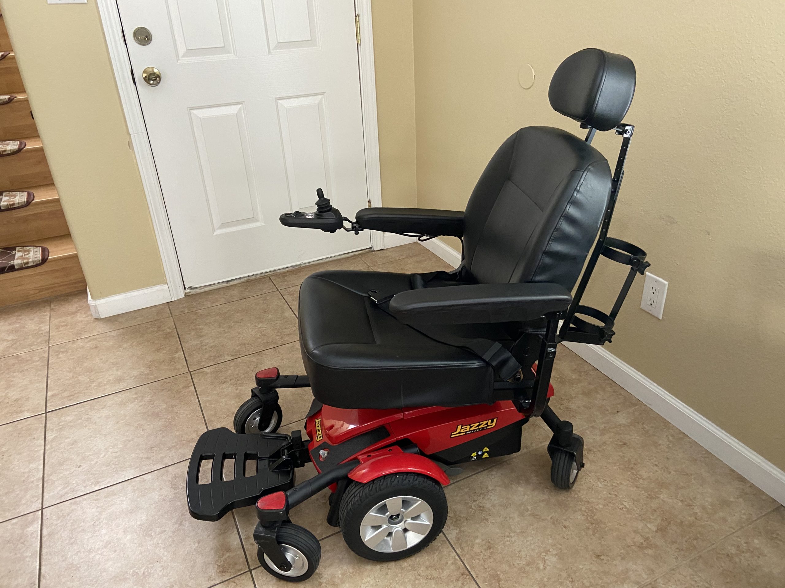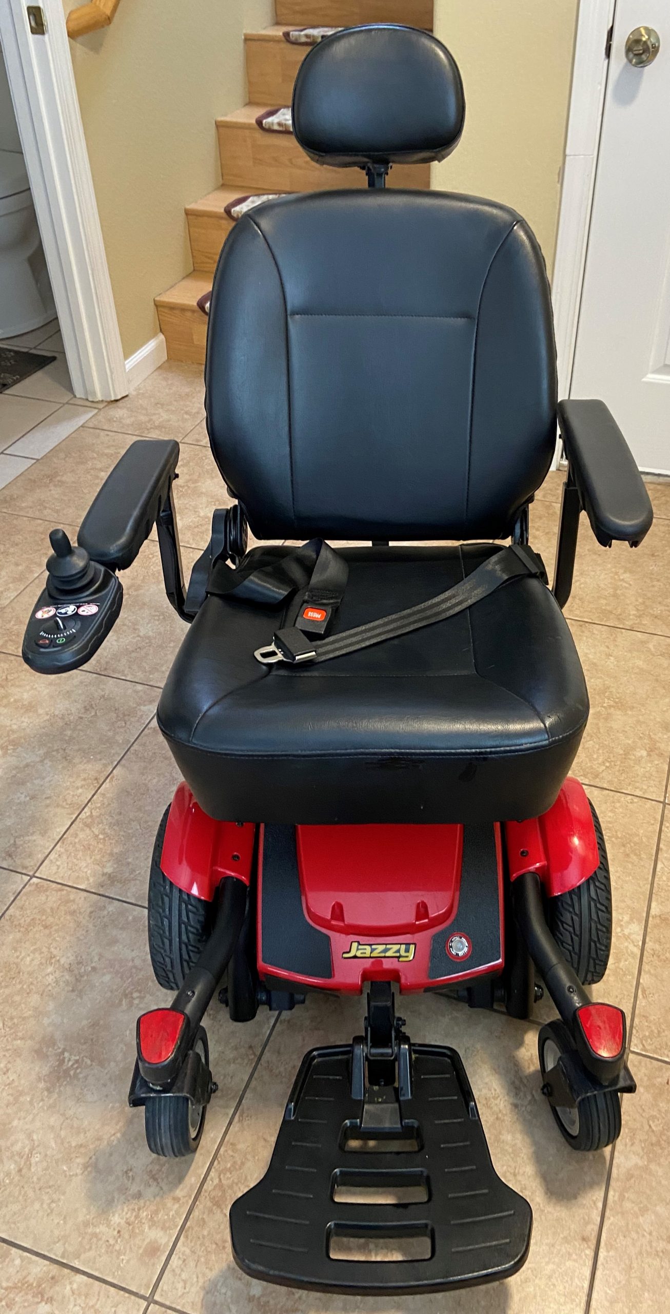 - Practically Like NEW! This 2016 model, sporty design JAZZY SELECT 6 Electric Wheelchair is comfortable and dependable!!! Hardly ever been used and stored indoors the entire time. With In-Line Joystick Controller to get you around easy!! Foot Plat Form is both a Flip-Up and Height Adjustable Platform!! Also, has Anti-Flip Wheel Assemblies and Oxygen Tank Frame which is conveniently mounted behind the seat!! These are both optional accessories that are included!!! Comes with the Batteries, Battery Charger and Owner’s Manual!!! We purchased the Jazzy Select 6 Electric Wheelchair for $3,500 brand new before taxes!!!! A Wonderful Wheelchair that allows you to pull up close to tables, counters and other work surfaces to accomplish daily activities and live Independently!!! I am selling it for $1,150 or Best Offer!!!! Absolutely Amazing Electric Wheelchair!!! A Must Have!!!! Upholstery in Excellent Condition!!!! Very Nice Black Leather!!! Convenient Pocket behind the seat!!!! Looking Forward to Hearing From You!!! Please contact us Now to Purchase the best Electric Wheelchair Available!!